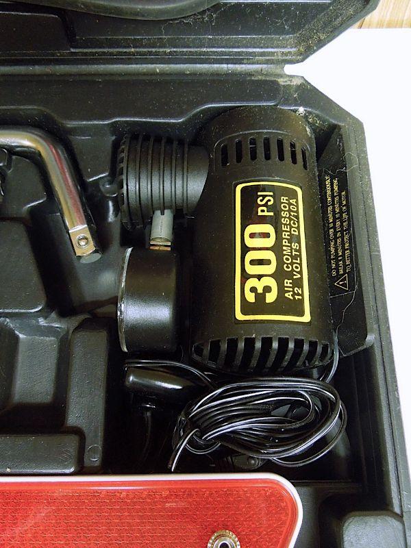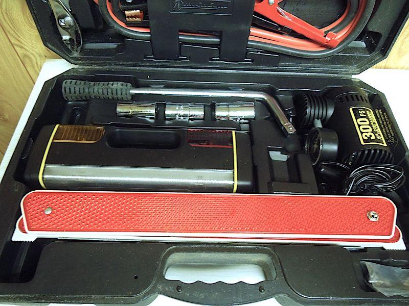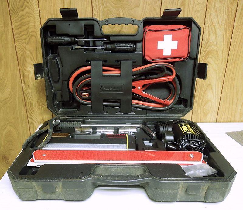 Michelin emergency roadside kit contains firstaid kit, jumper cables, 300 psi inflater, reflective strips and more. Also you will get a GE 40 channel 2 way CB radio (untested) in case.