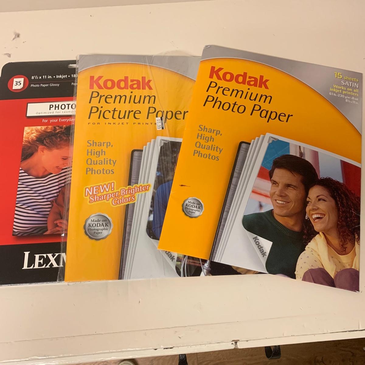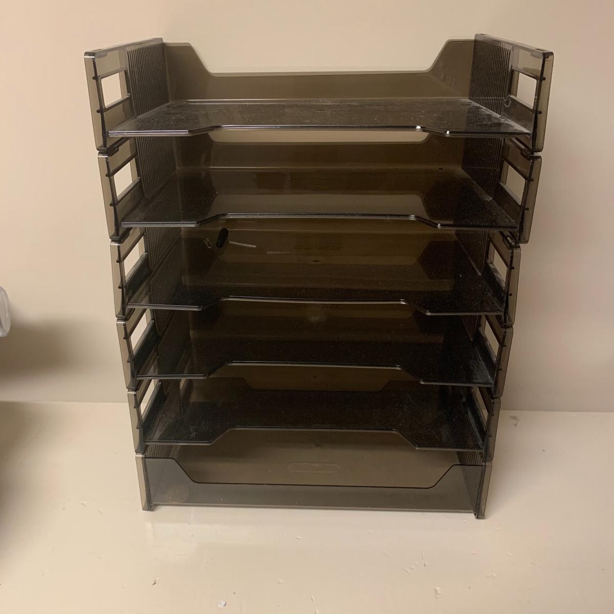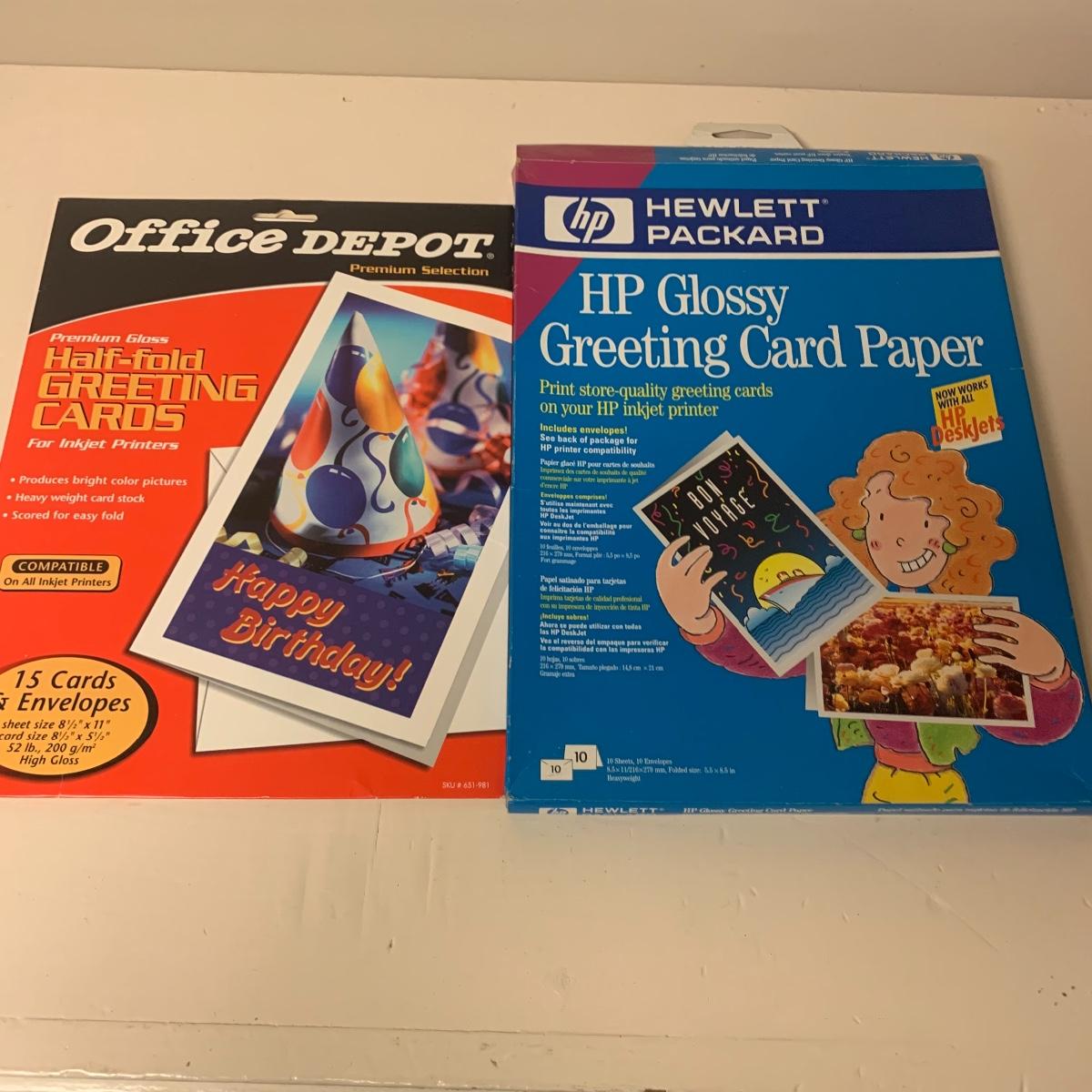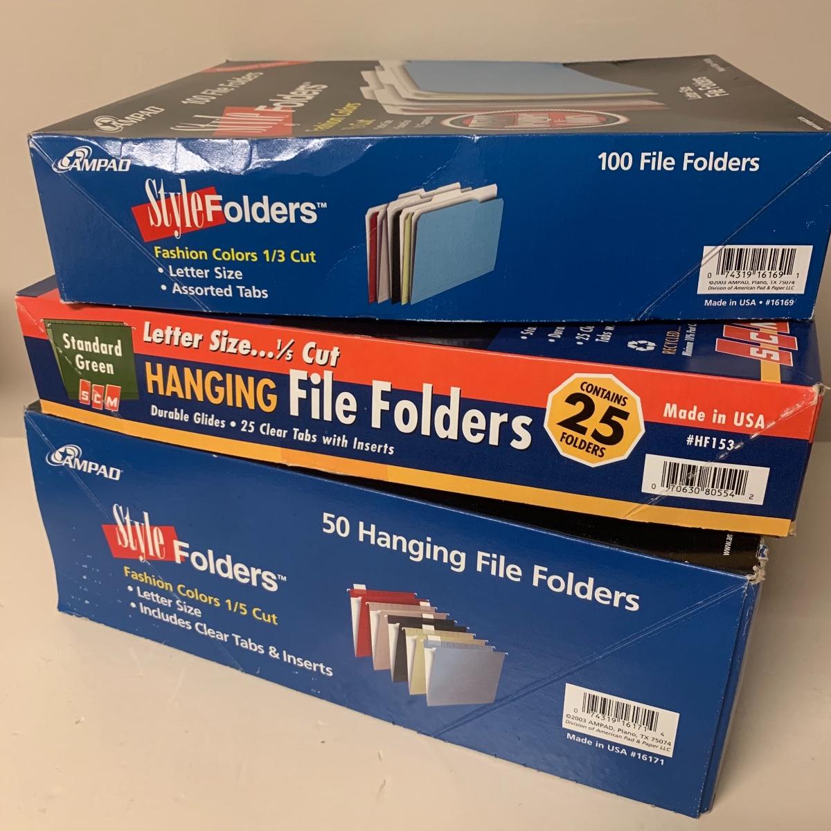 This lot includes desk organizers, scissors, dictionaries, cards and envelopes, photo paper, carbon paper, calculators, file folders, a clock, a power strip and more. The lot also includes a Texas Instruments TI-5045II calculator. Cannot confirm the Texas Instruments calculator works. The clock appears to be working. The dictionaries included in the lot are The Concise American Heritage Dictionary and a two volume set of the Funk & Wagnalls Standard Dictionary A-Z.