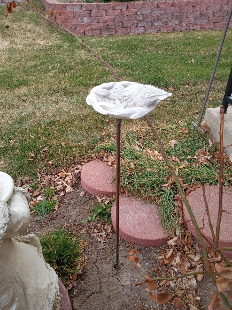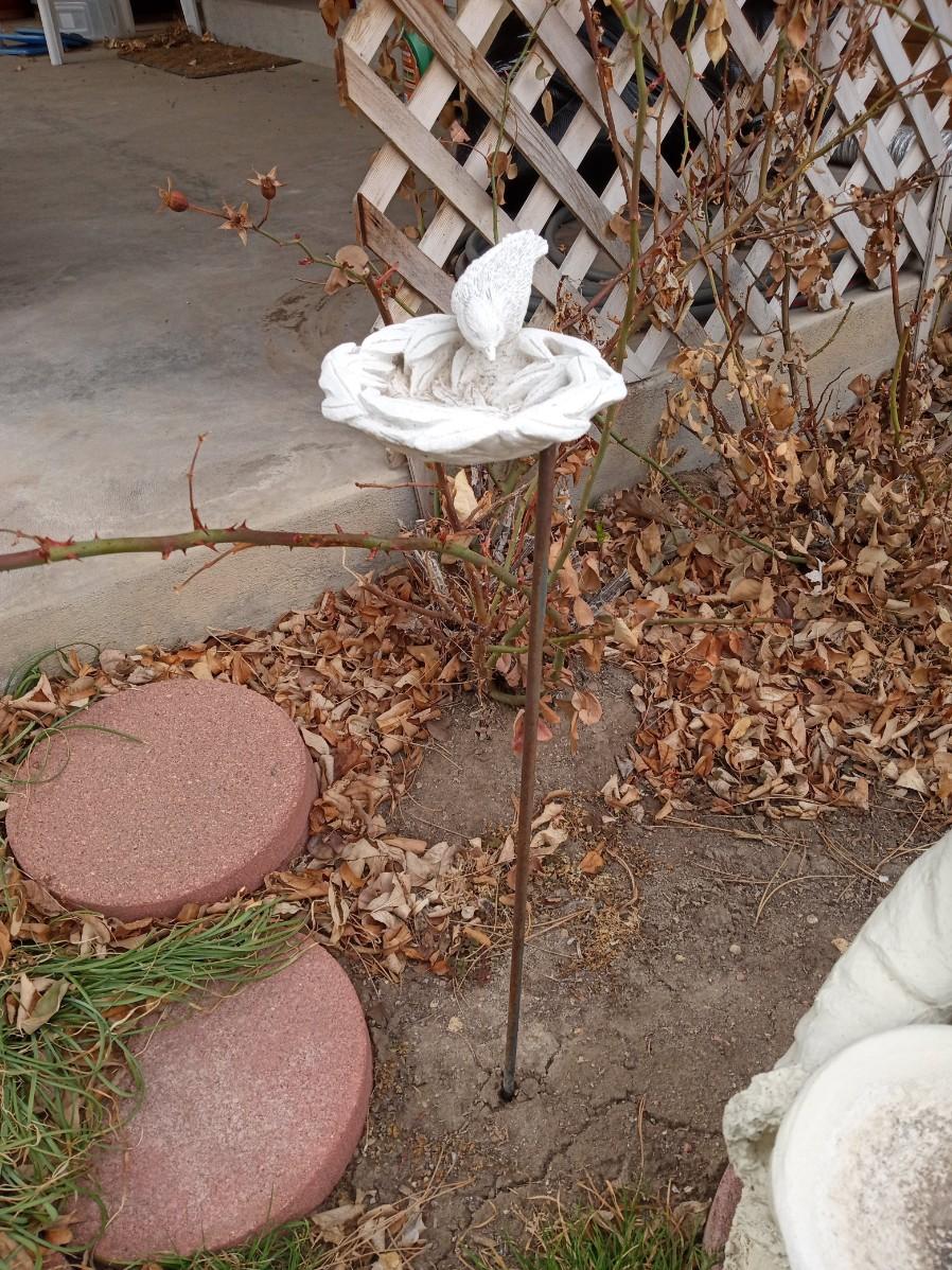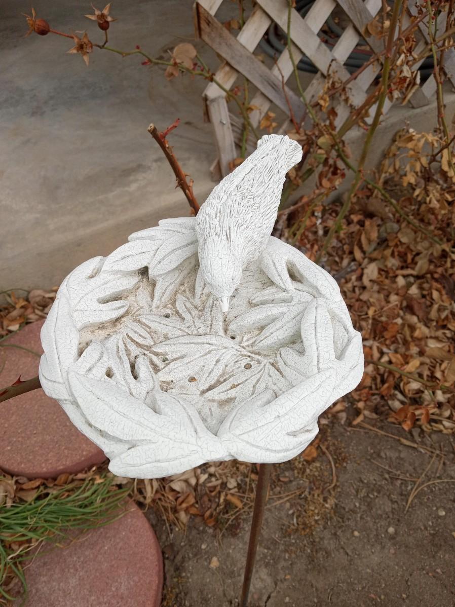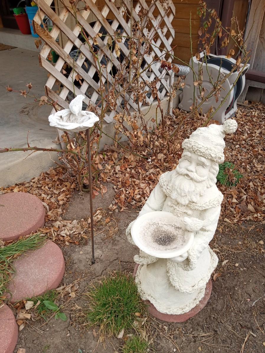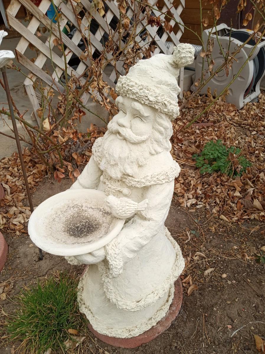 LOT 222 SANTA BIRD FEEDER AND A SMALL BIRDBATH