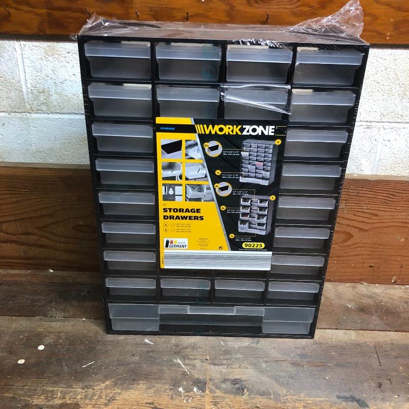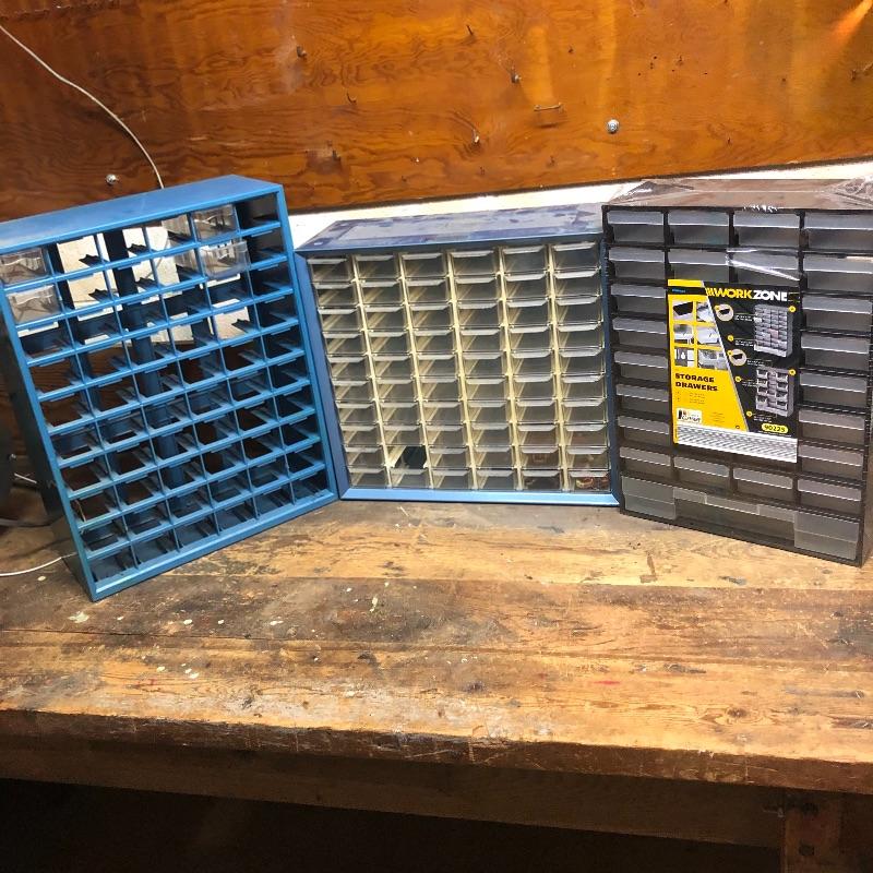 A great way to store all your screws & bolts or crafting items with three storage bins. One bin is metal and the other two are plastic and one is missing most of the plastic slide out trays. Largest storage bin measures 6” x 14.5” x 8”. Local Pickup Only