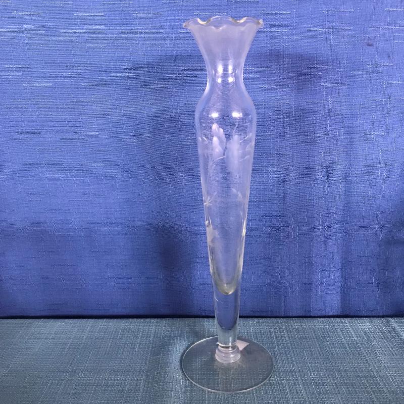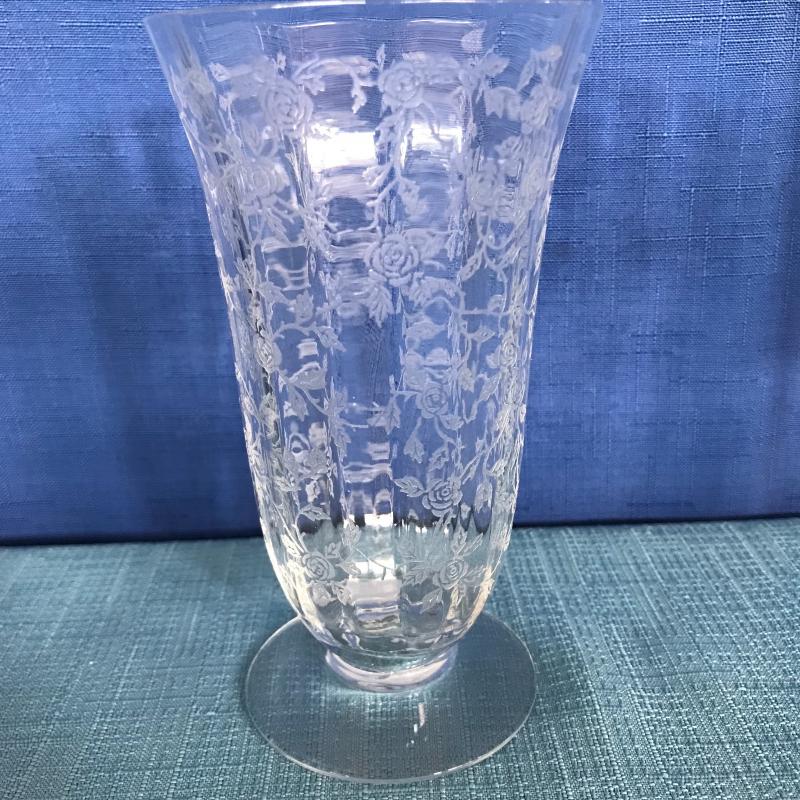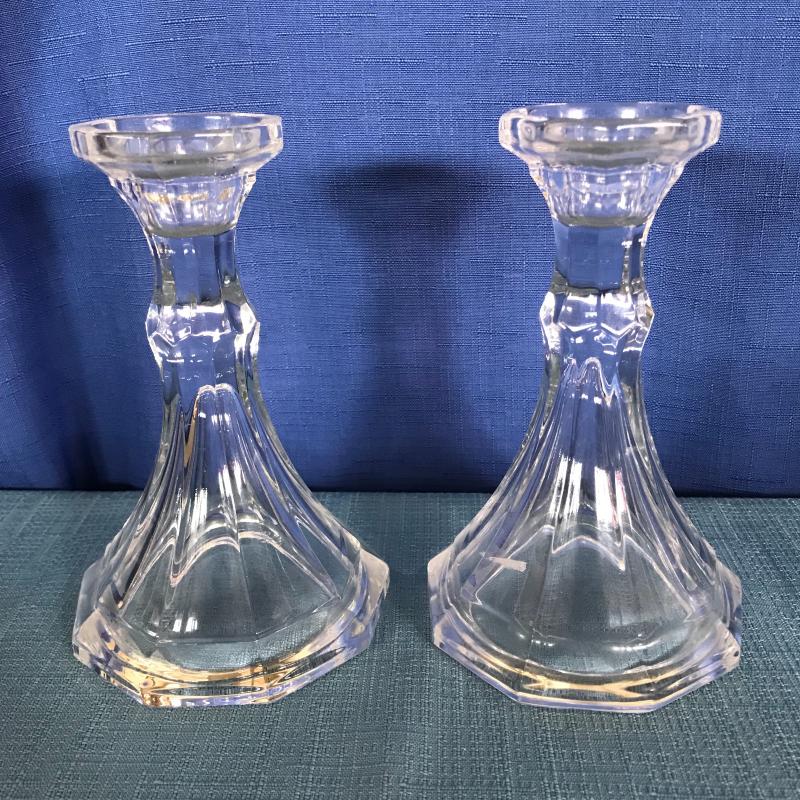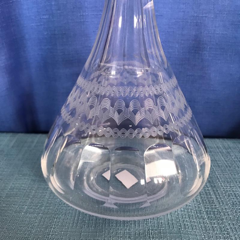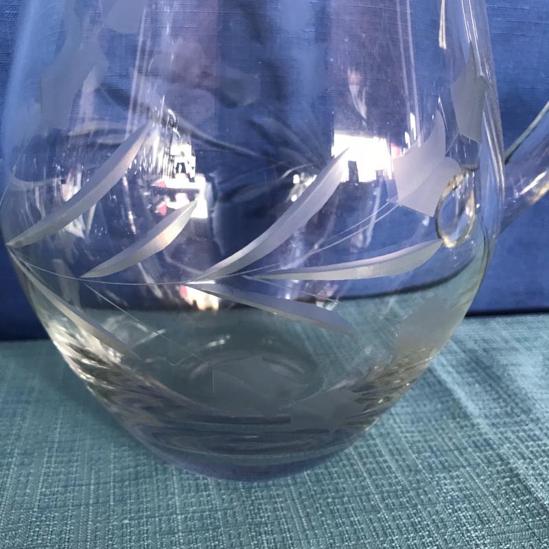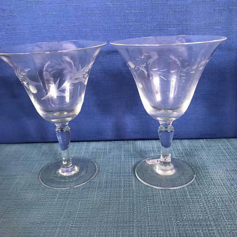 Lot includes pitcher (approx. 9”h), pair of candlesticks, decanter (with no top), vase, pair of goblet-like glasses, pair of cordial glasses, and single glass. Most are etched. See pics. No shipping available. Local pickup only in Maggie Valley, NC.
