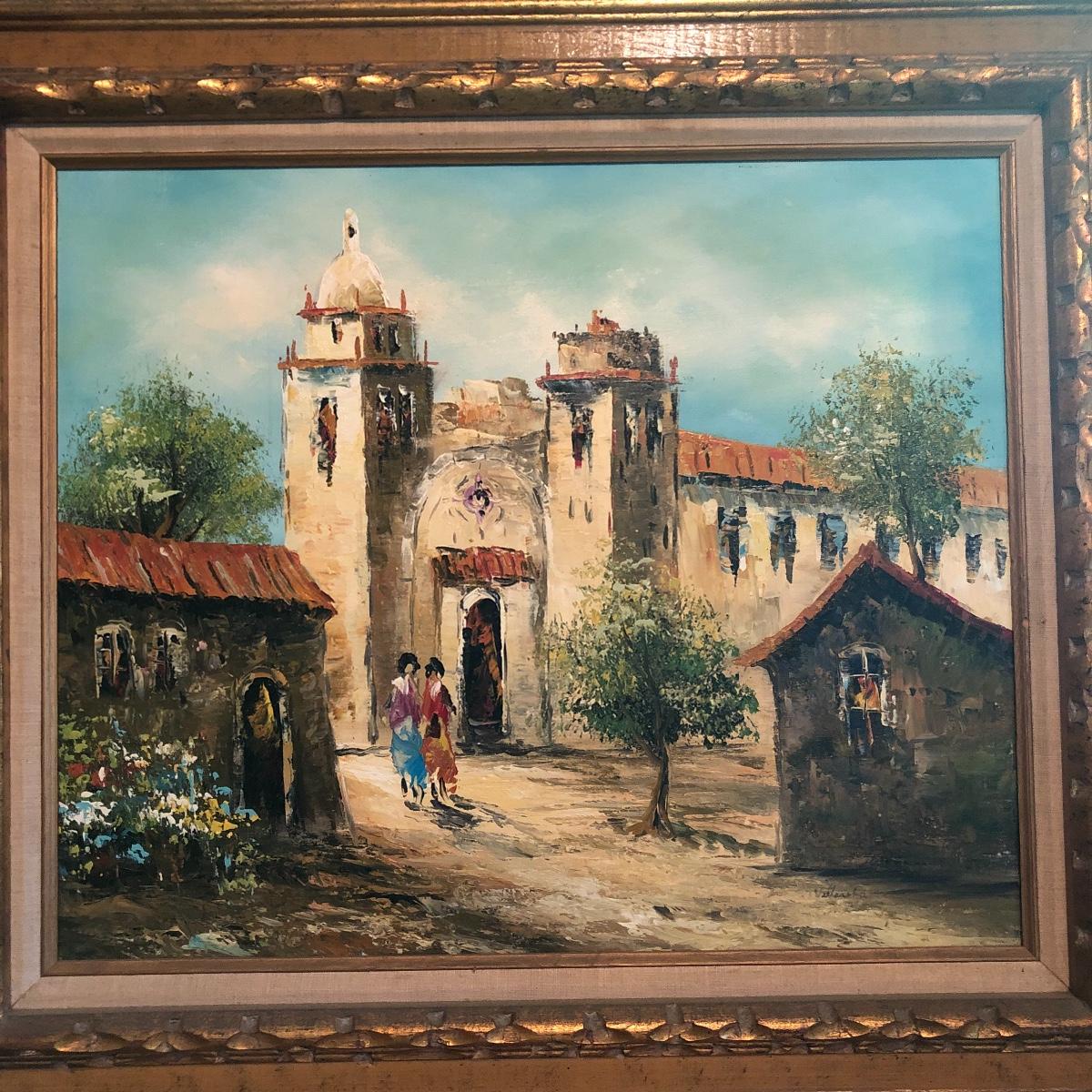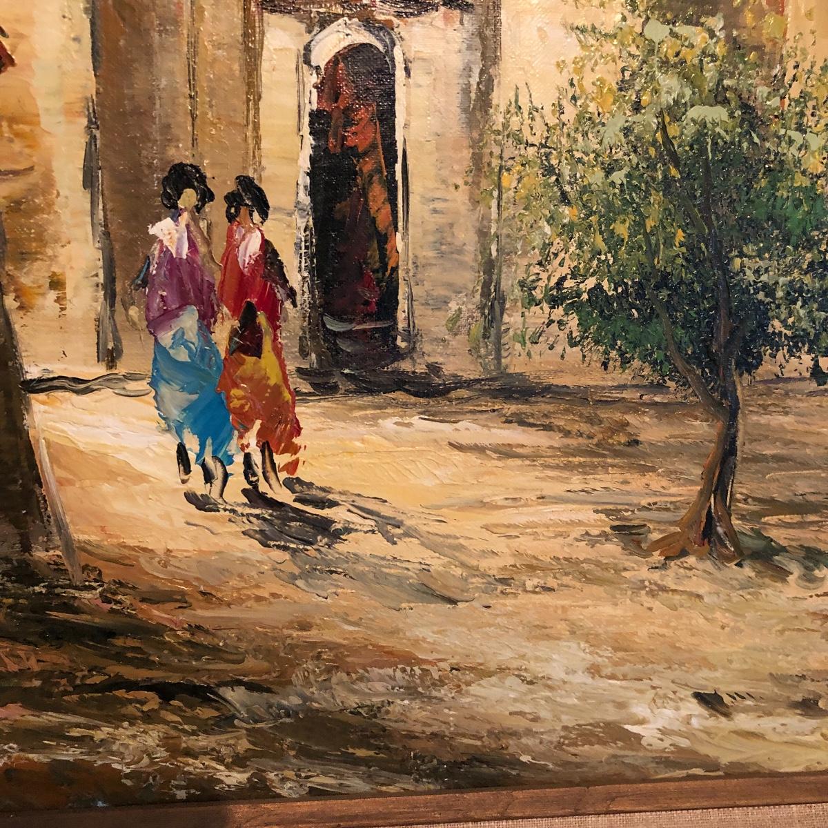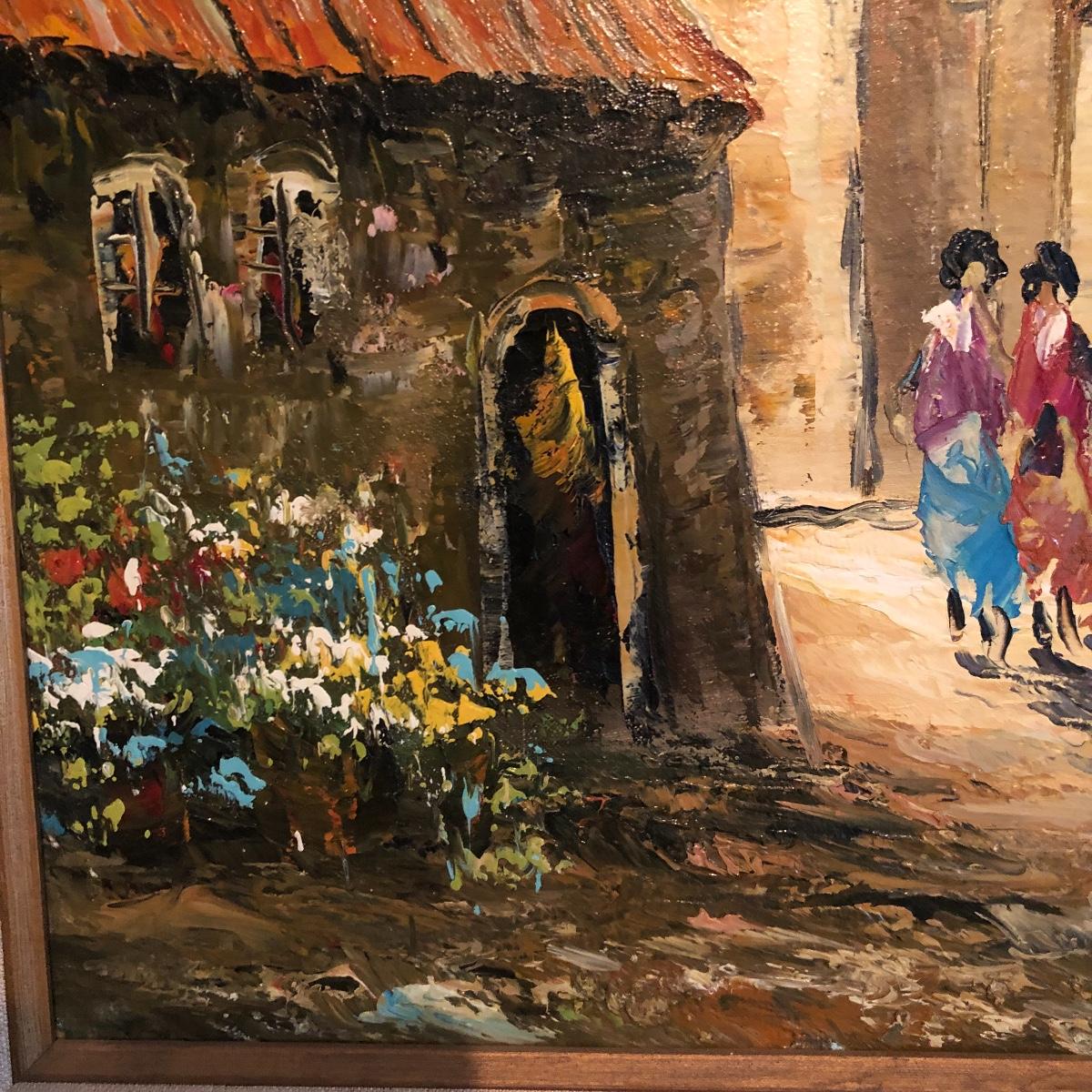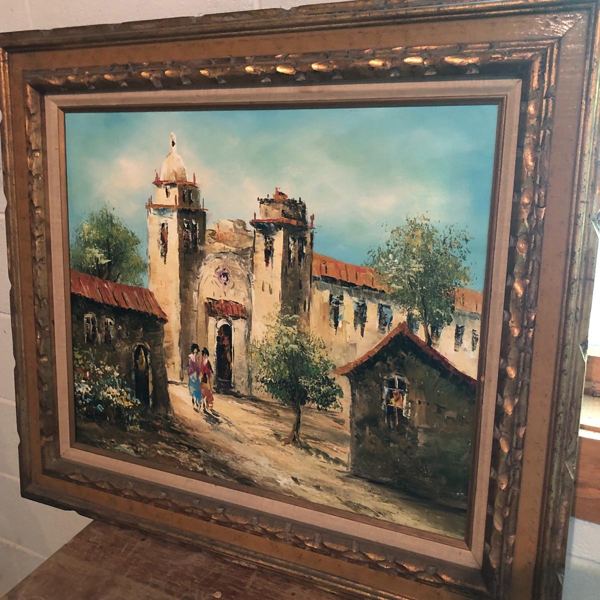 Adorn your wall with this oil painting! This gorgeous piece of art has a signature that appears to be “Villanova.” The painting measures 32.5” x 28”. The frame is solid wood and quite ornate. Shipping Available. Shipping art can be expensive; please call UPS for a quote.