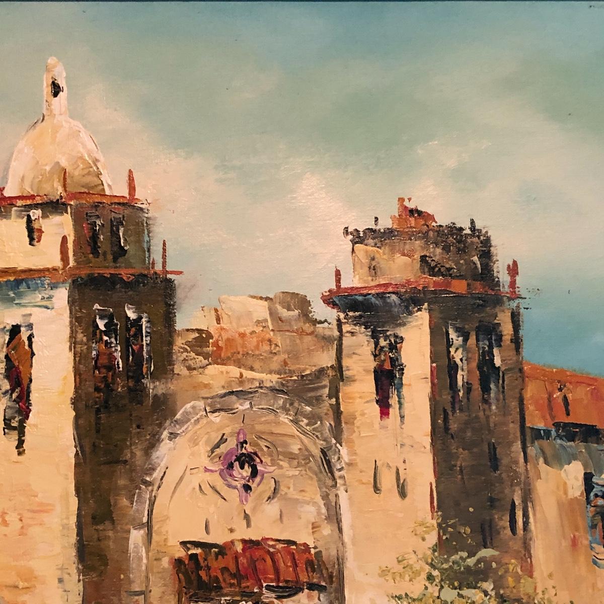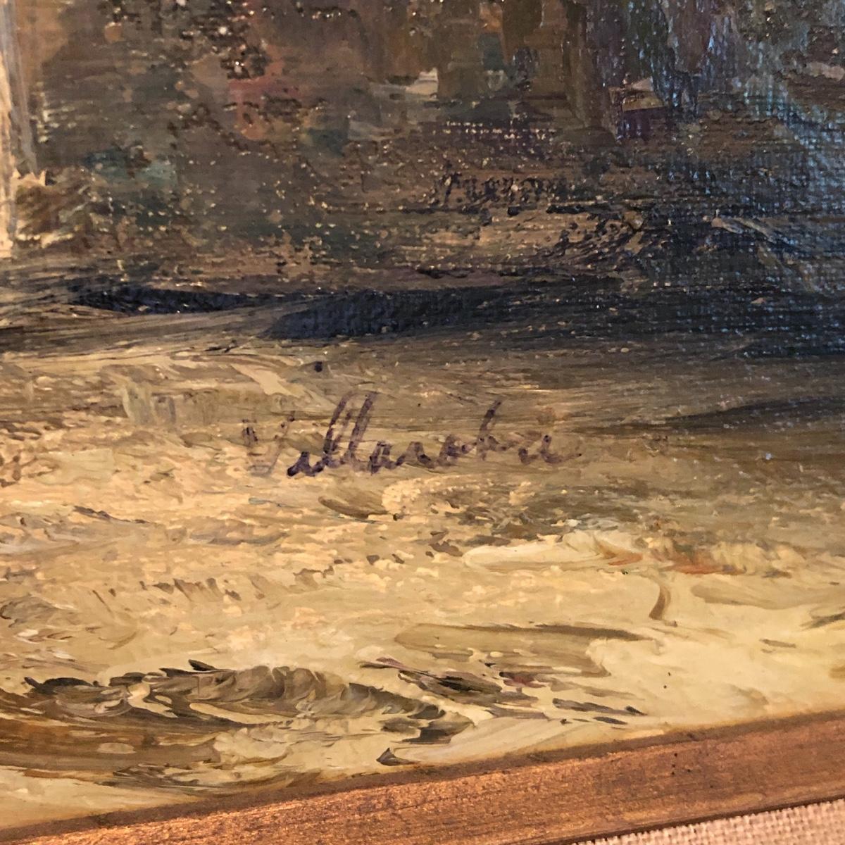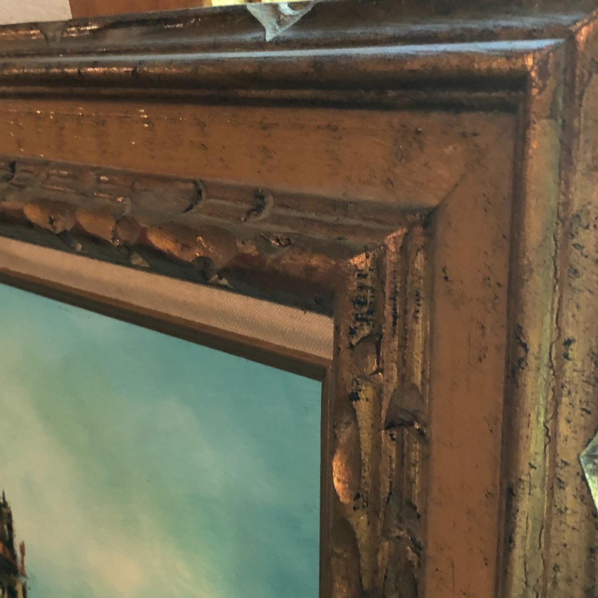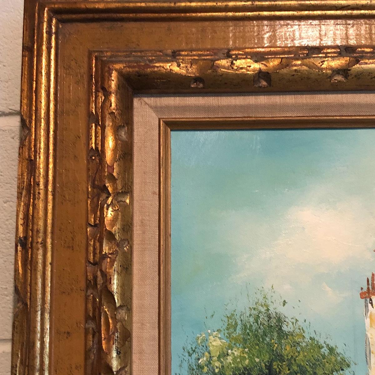 Adorn your wall with this oil painting! This gorgeous piece of art has a signature that appears to be “Villanova.” The painting measures 32.5” x 28”. The frame is solid wood and quite ornate. Shipping Available. Shipping art can be expensive; please call UPS for a quote.