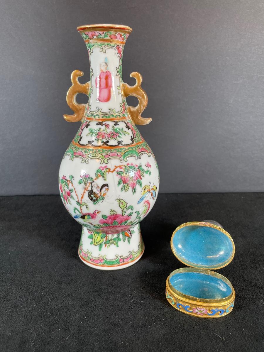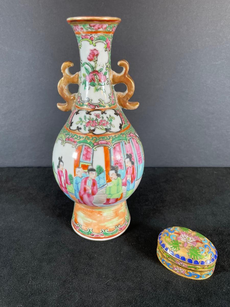 Lot 222. Vintage Asian Porcelain Vase and Cloisonne Box