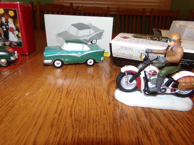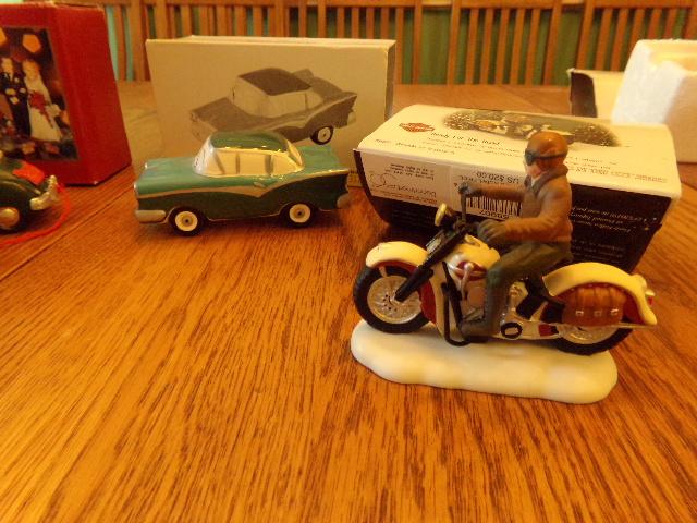 HARLEY DAVIDSON MOTORCYCLE, MARRIED COUPLE, SNOW VILLAGE FORD MUSTANG & MORE