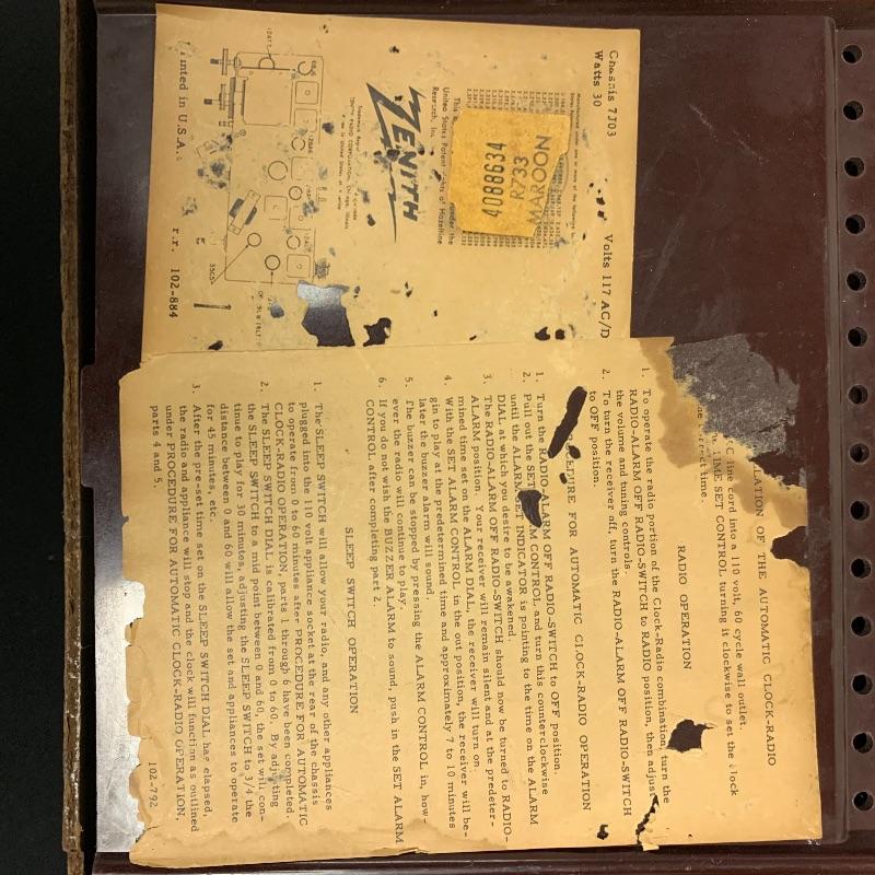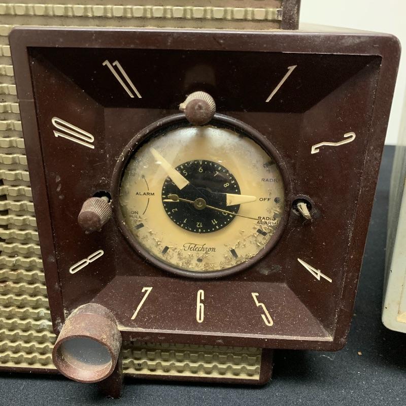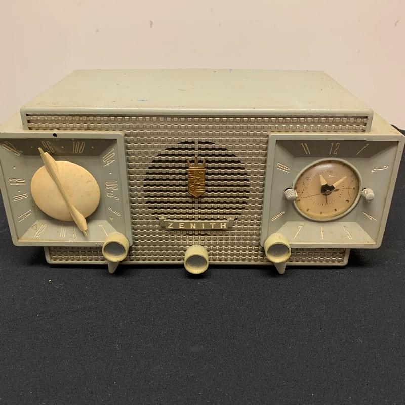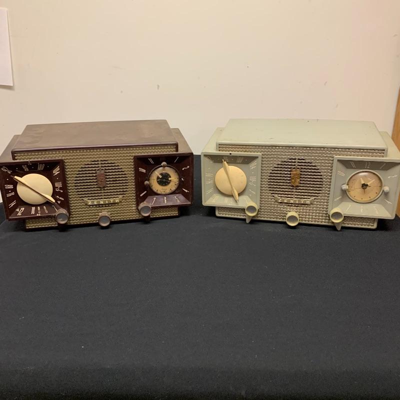 Two Zenith clock radios model L520. Two brown and one gray. These units did not power on when tested. An original Zenith owners manual is included in this lot.