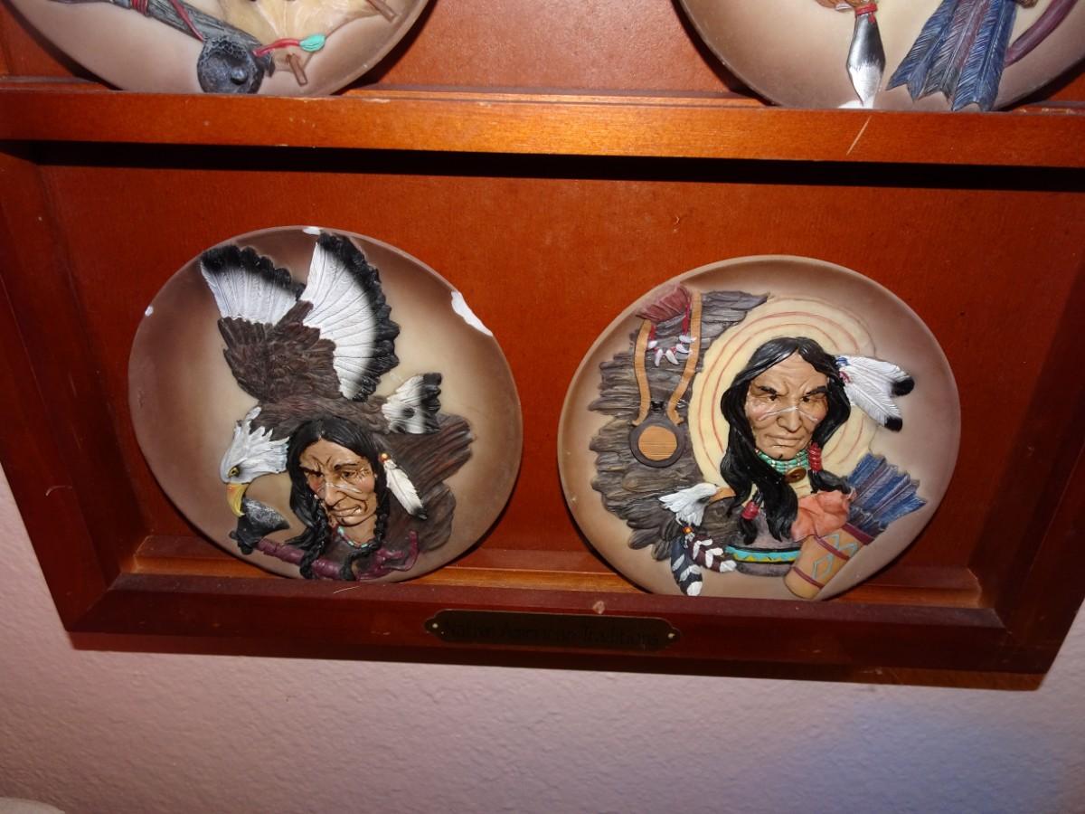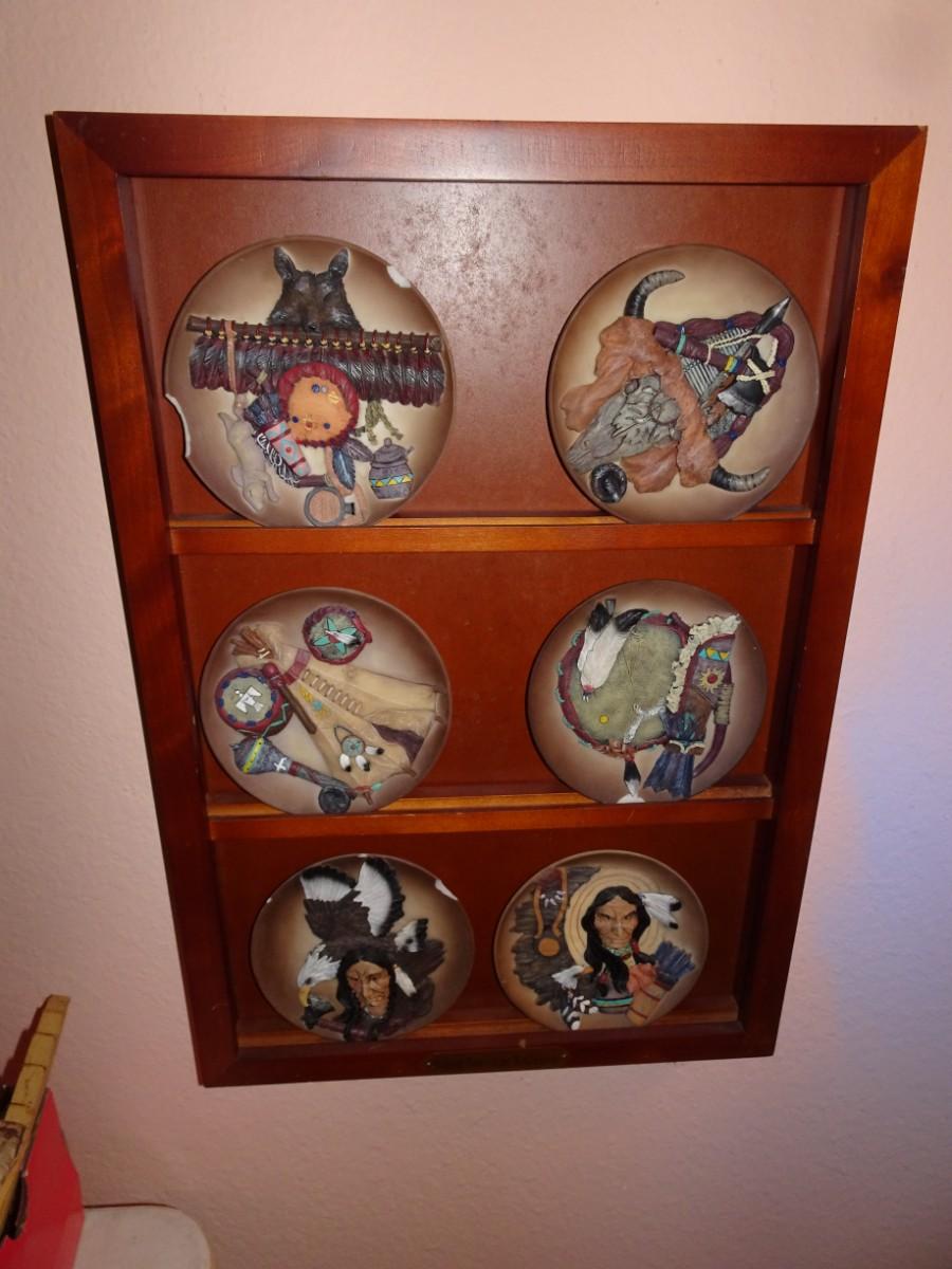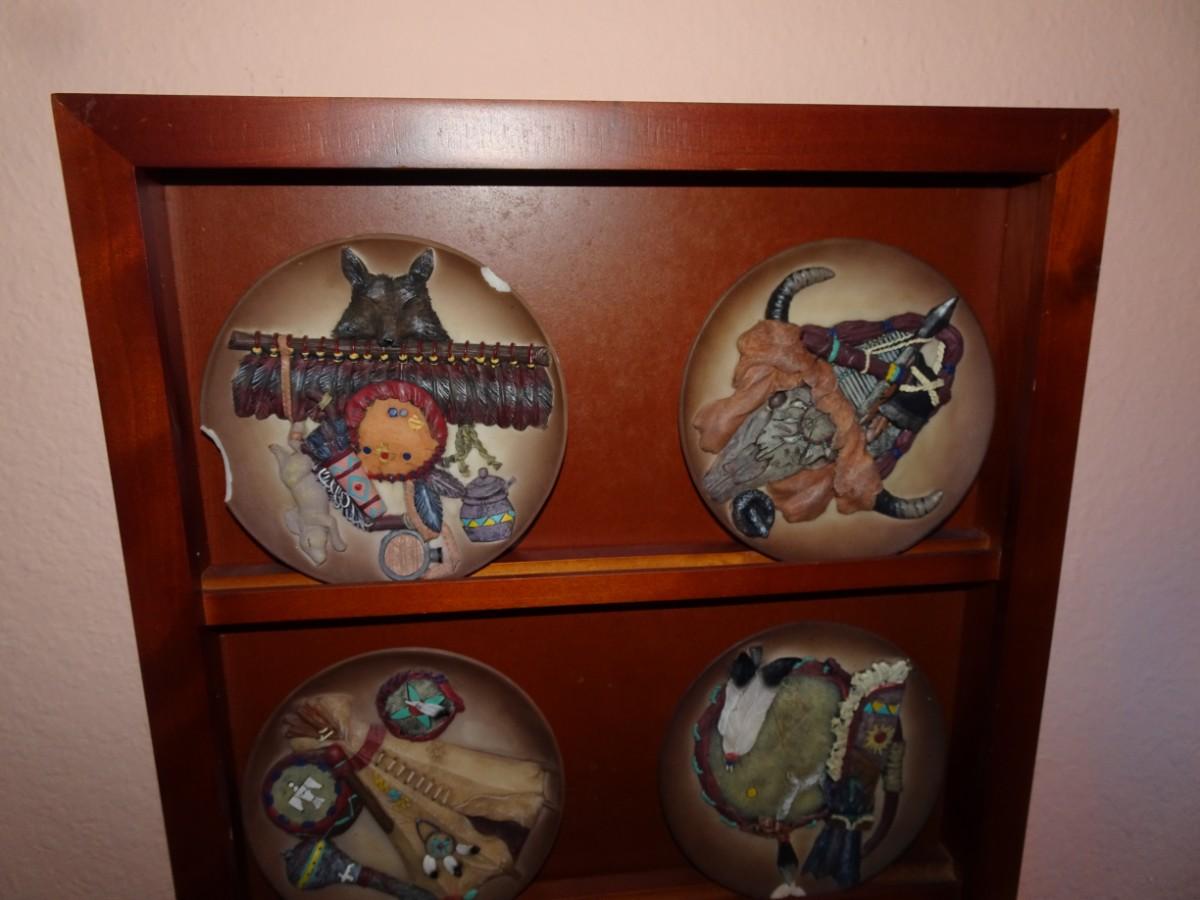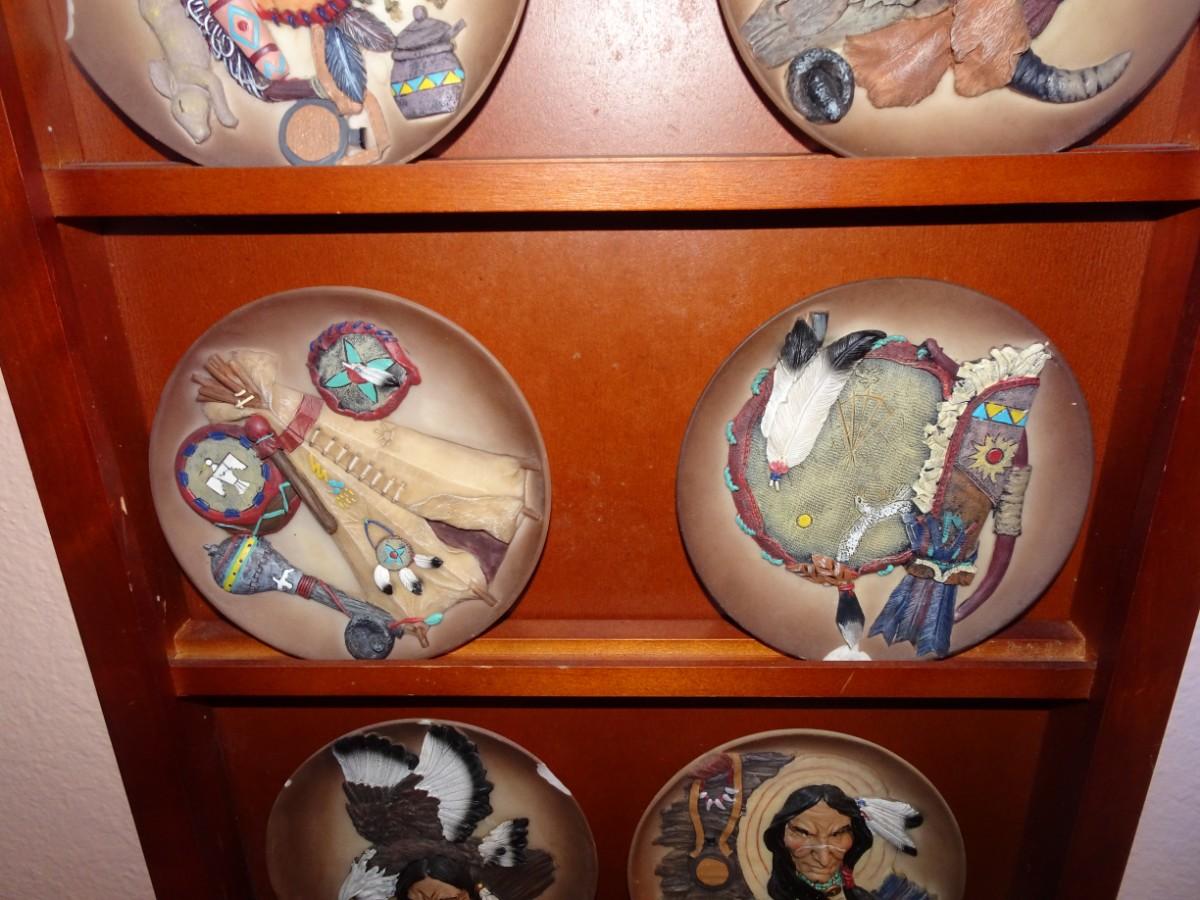 LOT 223. NATIVE AMERICAN INSPIRED PLATES ON WALL RACK