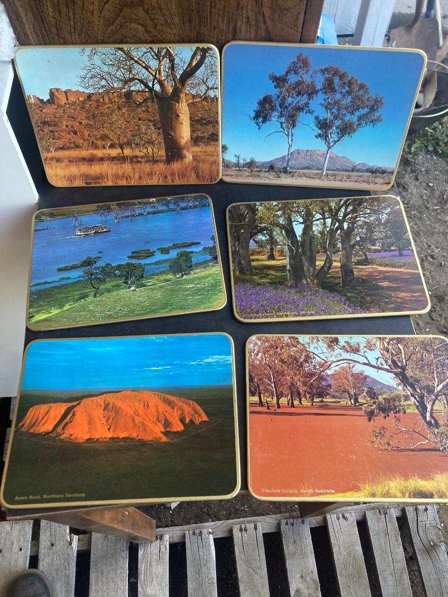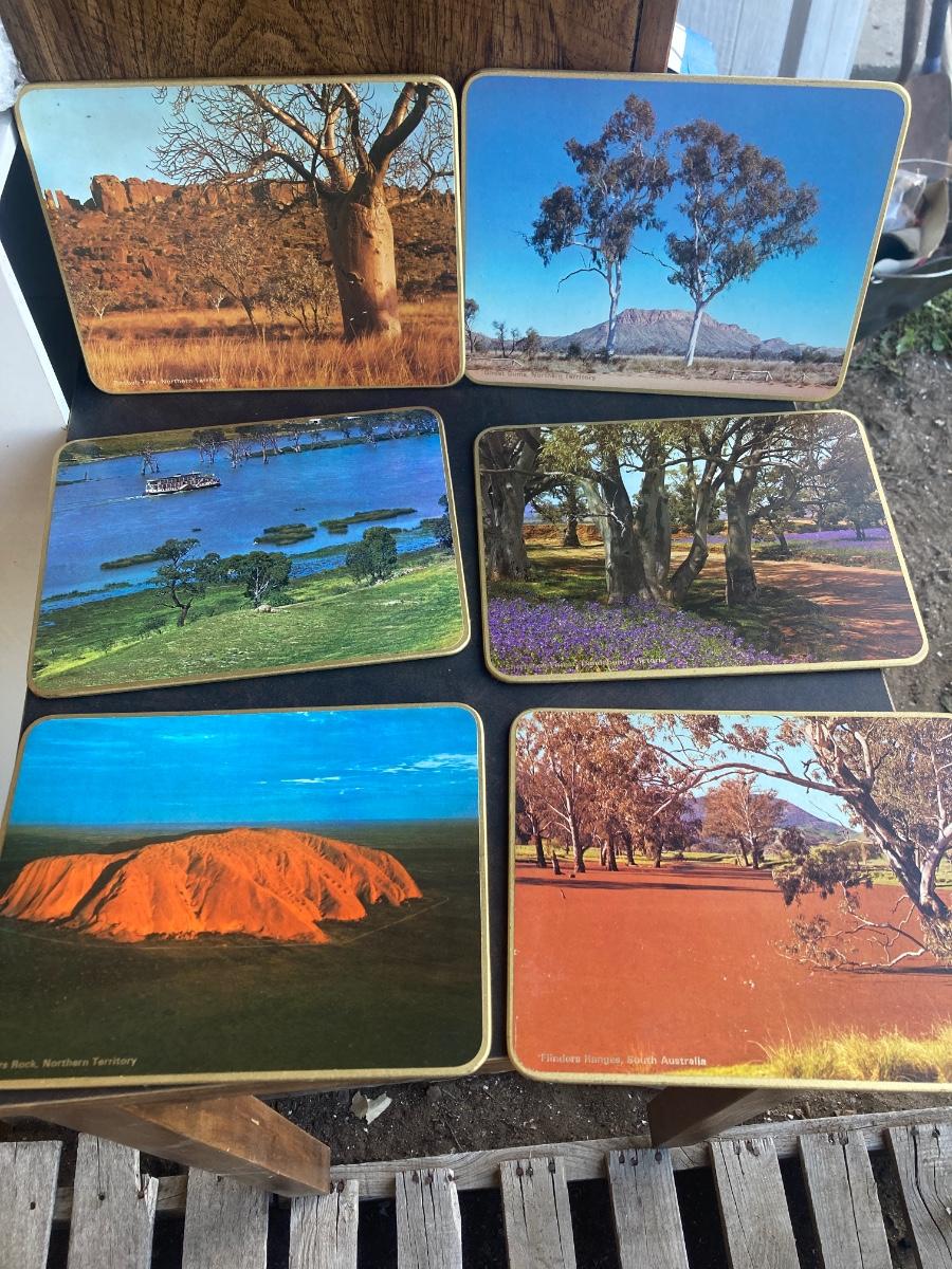 LOT 223 VINTAGE PICTURES ON CORK BOARD LIKE COASTER MATERIAL