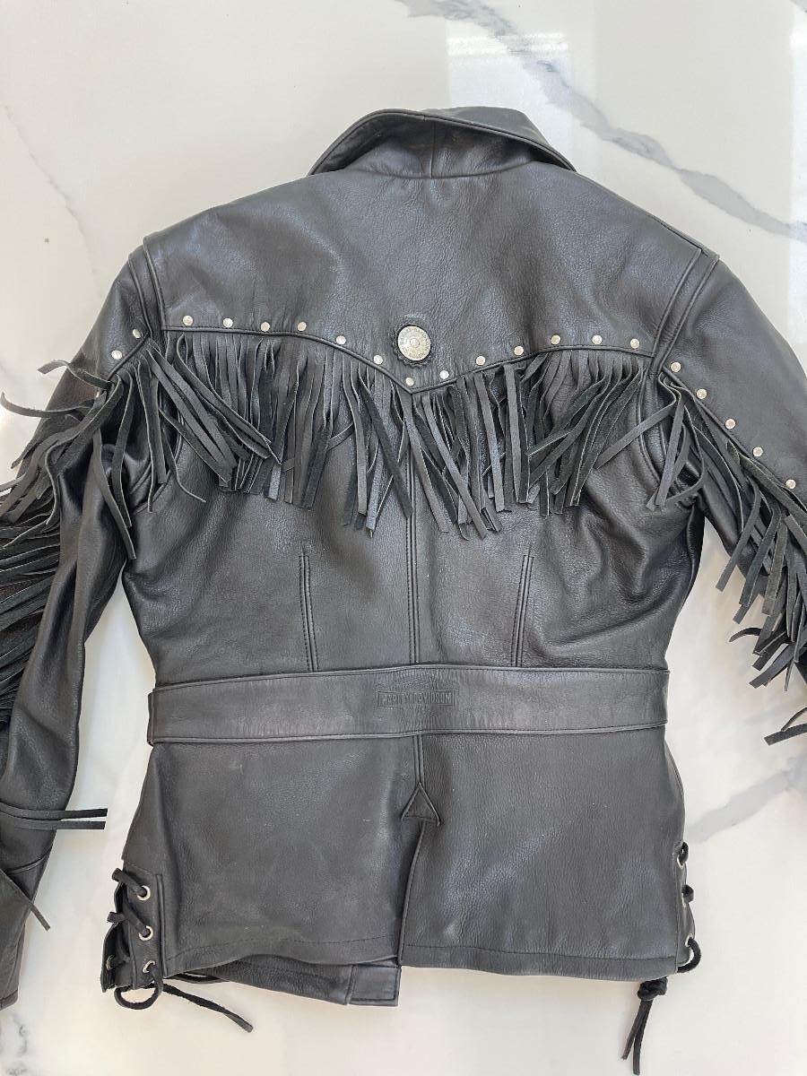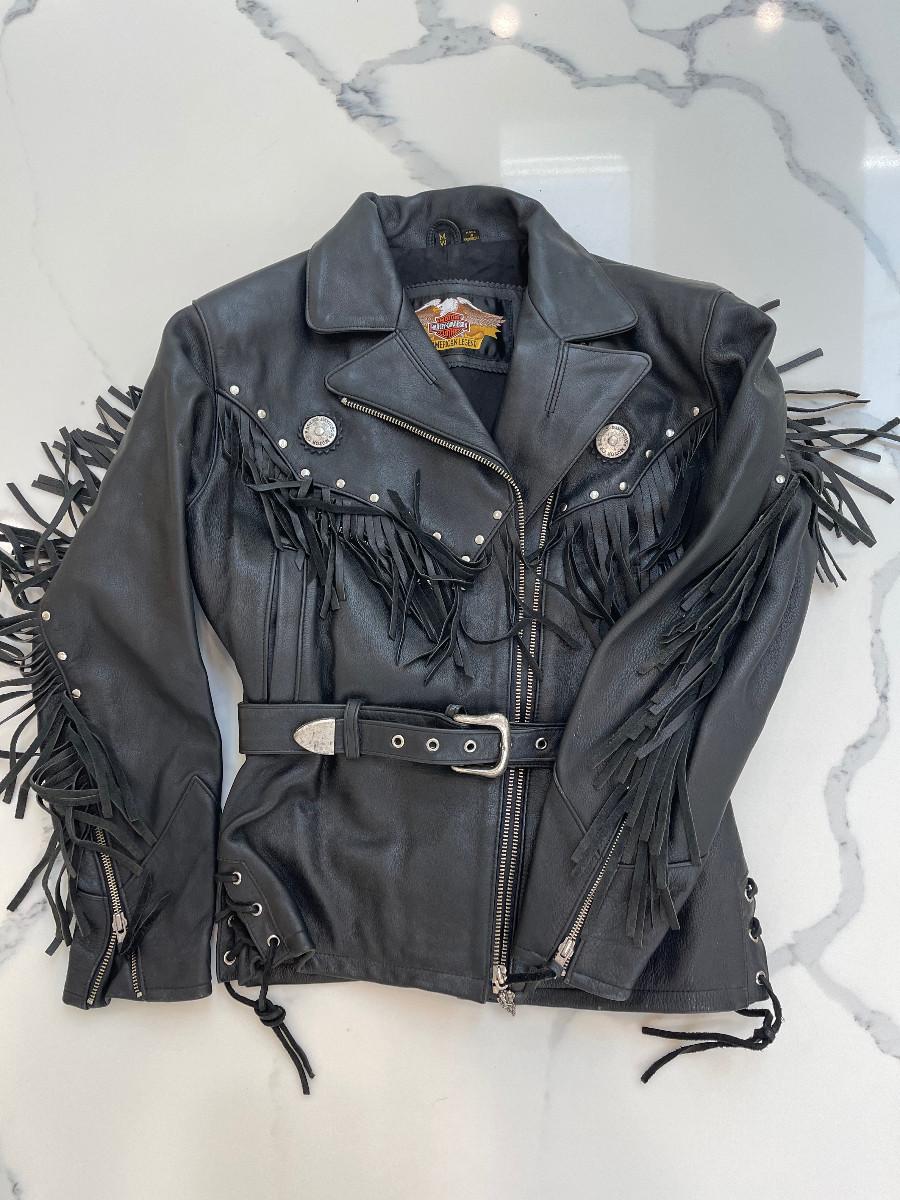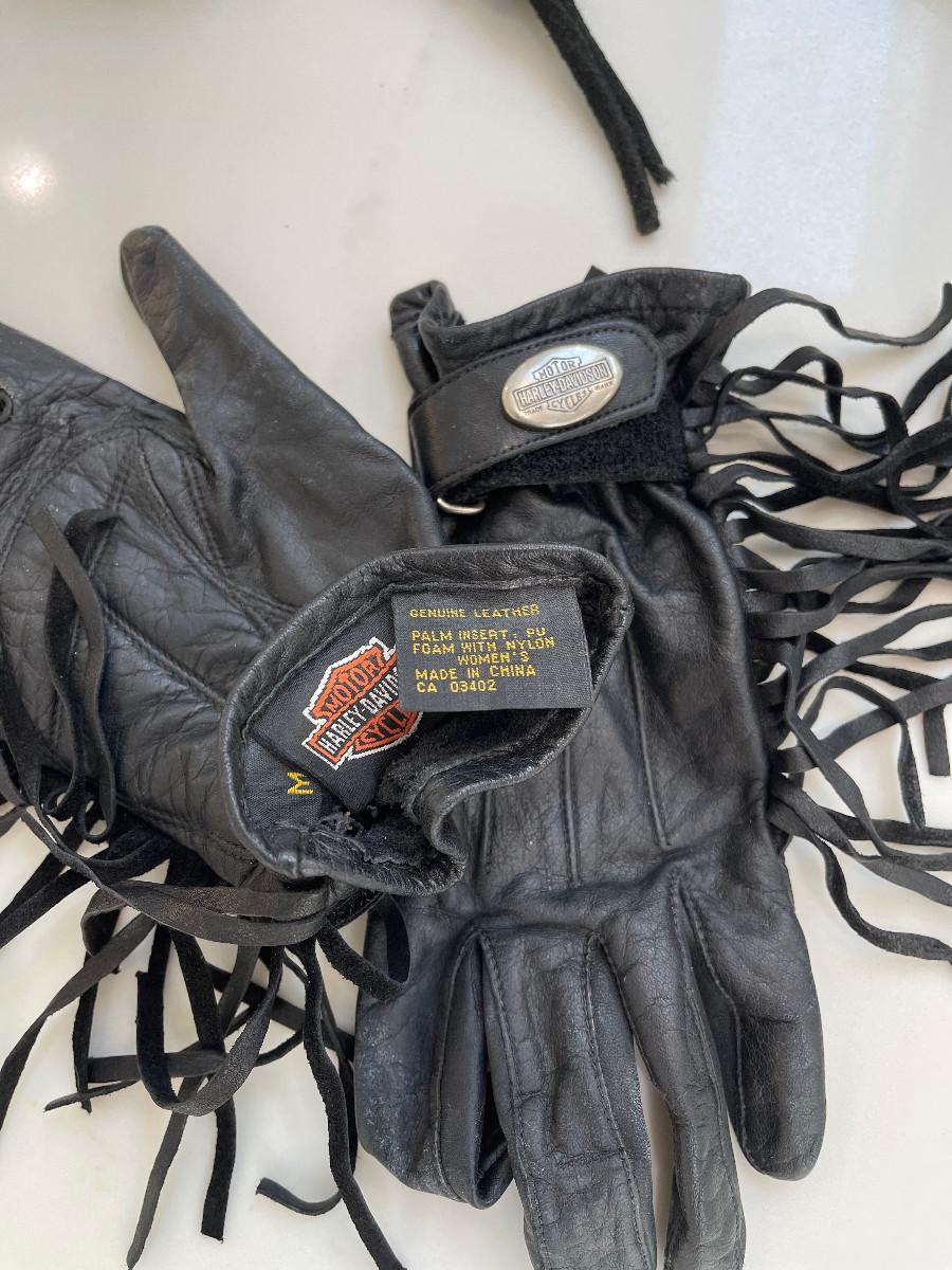 Authentic Harley-Davidson Ladies Jacket (size M) and Leather Gloves. There is also a Leather Backpack Purse.