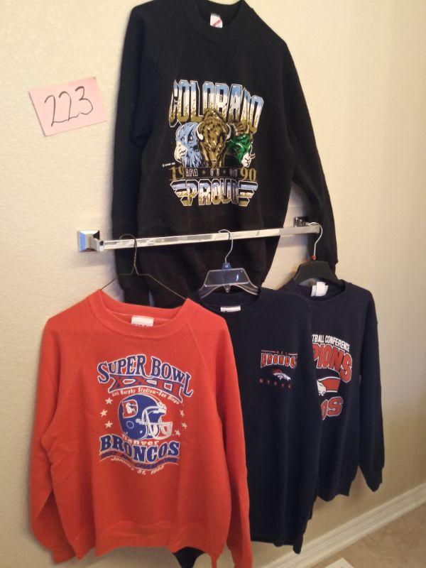 1 CU BUFFS SWEATSHIRT THE REST ARE BRONCO ALL ARE LARGE EXCEPT FOR 1 (NOT PICTURED) IT'S XXL