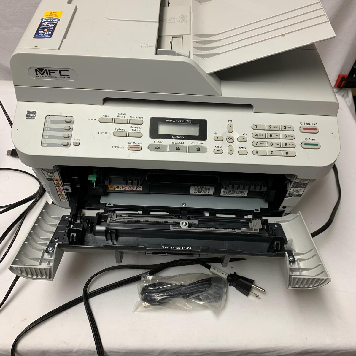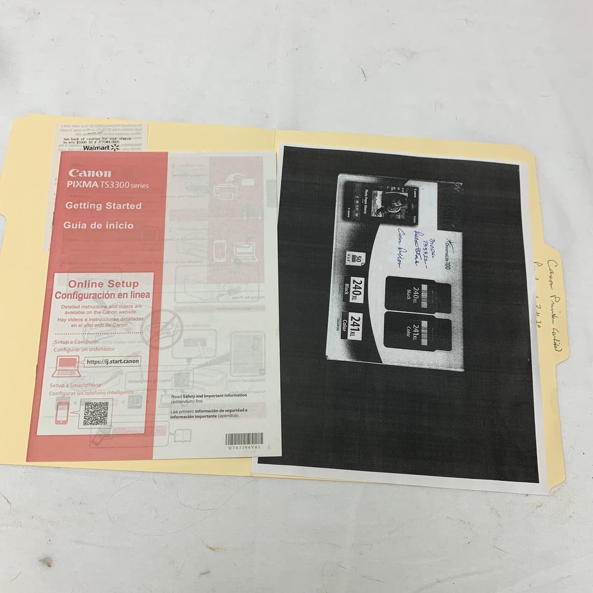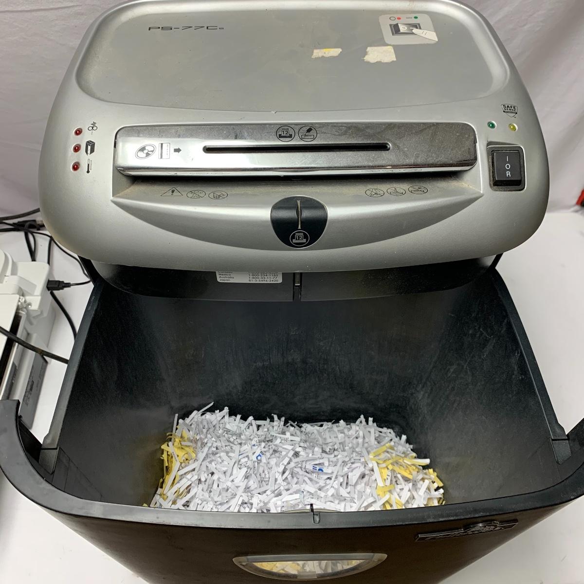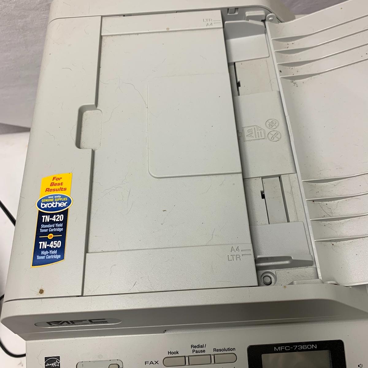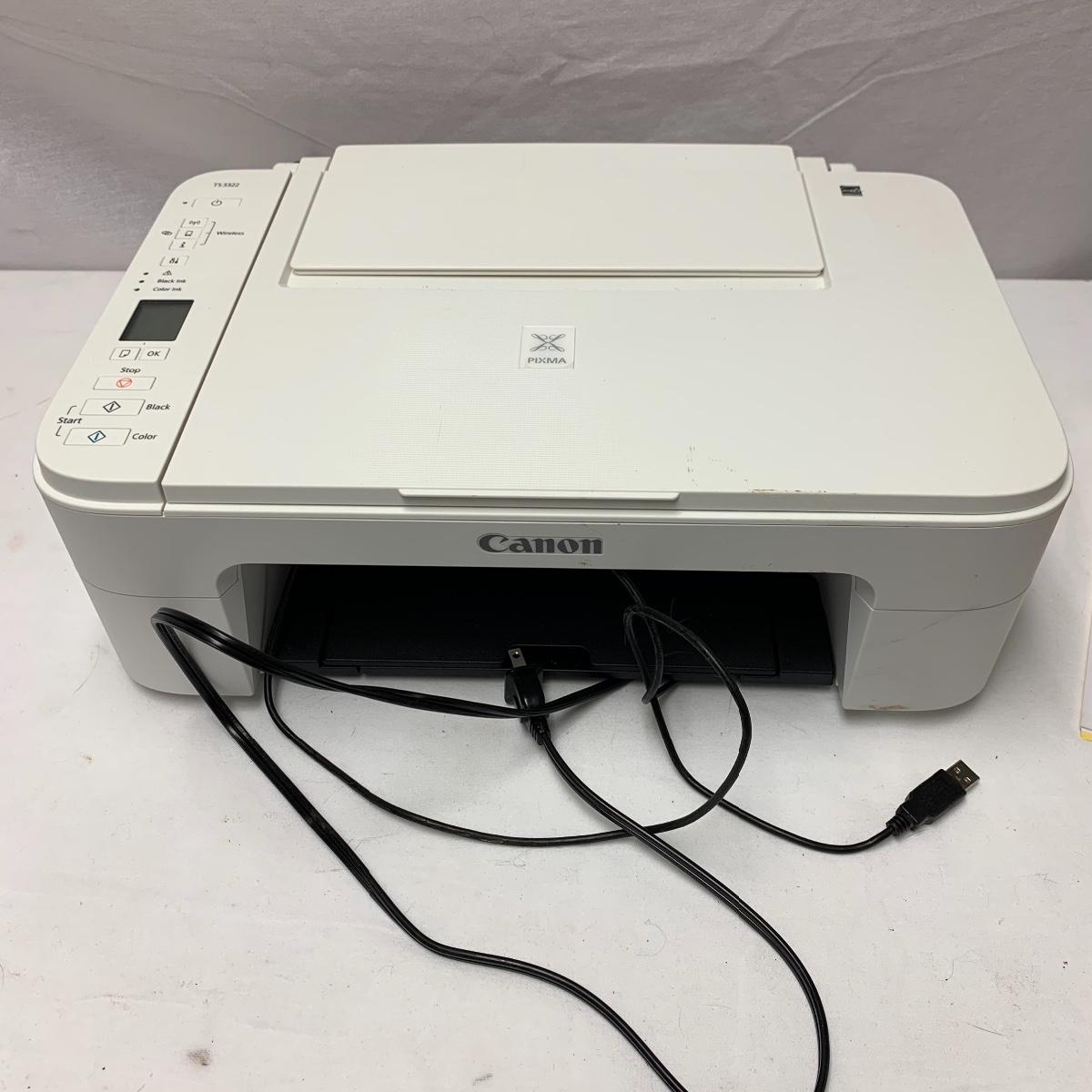 This lot includes a Brother Multi-Function Center, a Canon Pixma Printer, and a Fellowes Paper Shredder. The Brother Multi-Function Center is model MFC-7360N. It has fax, scan, copy, and print functions. The Canon Pixma printer is model TS3322. It is a wireless printer. It comes with an instruction manual, printer paper, and a little packet of Pixma photo paper. The paper shredder is a Fellowes PS-77Cs shredder with Safe Sense Technology. It shreds discs, credit cards, and has a 12-page shredding capacity. The shredder was tested and functions. The printers were plugged in and both power on. Local pickup only.