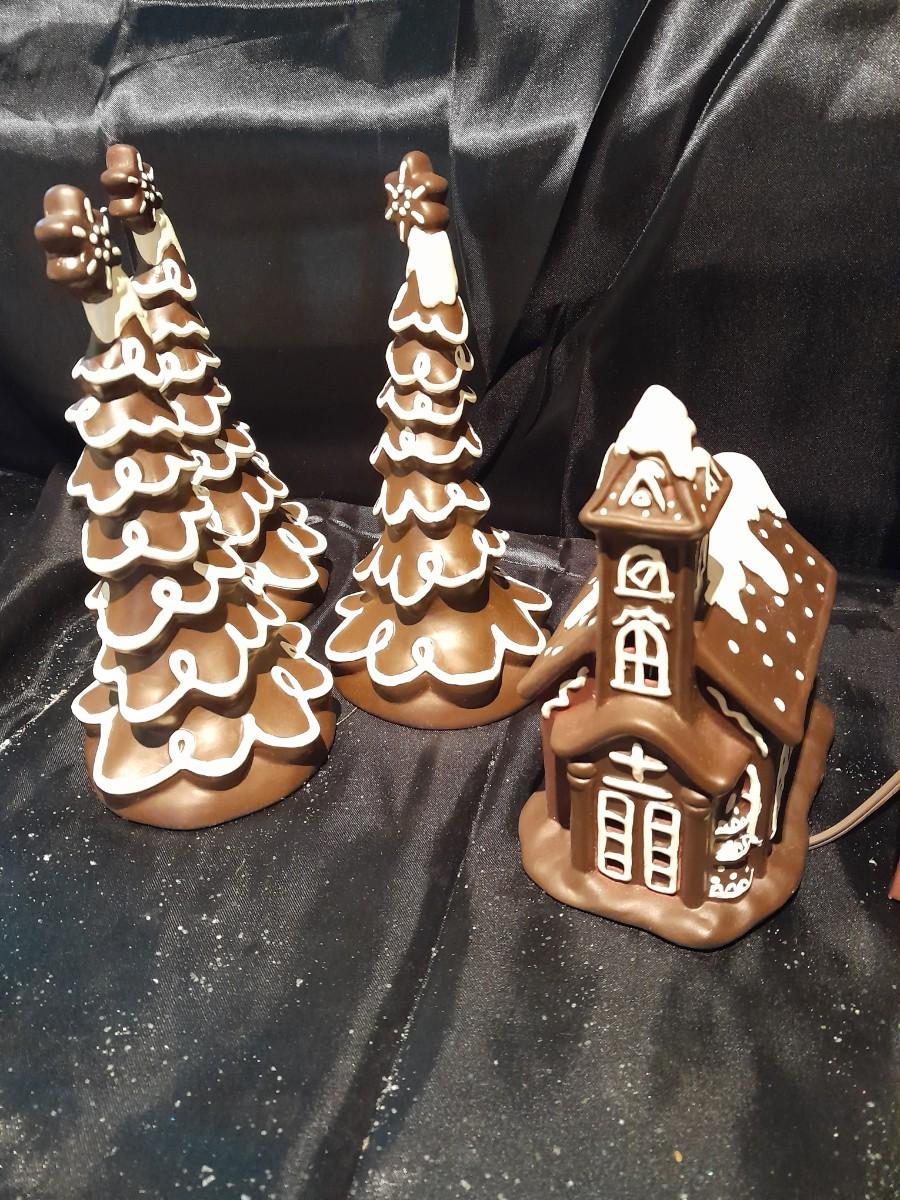CERAMIC CHOCOLATE CHURCH, GINGERBREAD HOUSE AND MORE