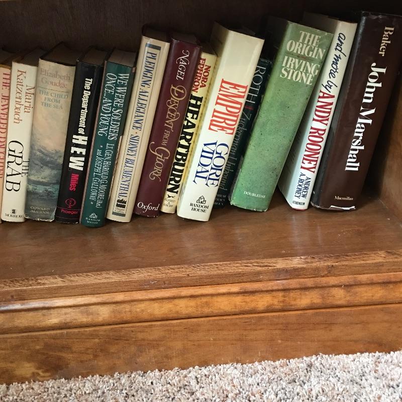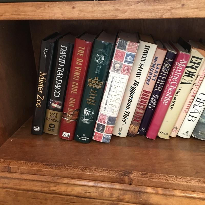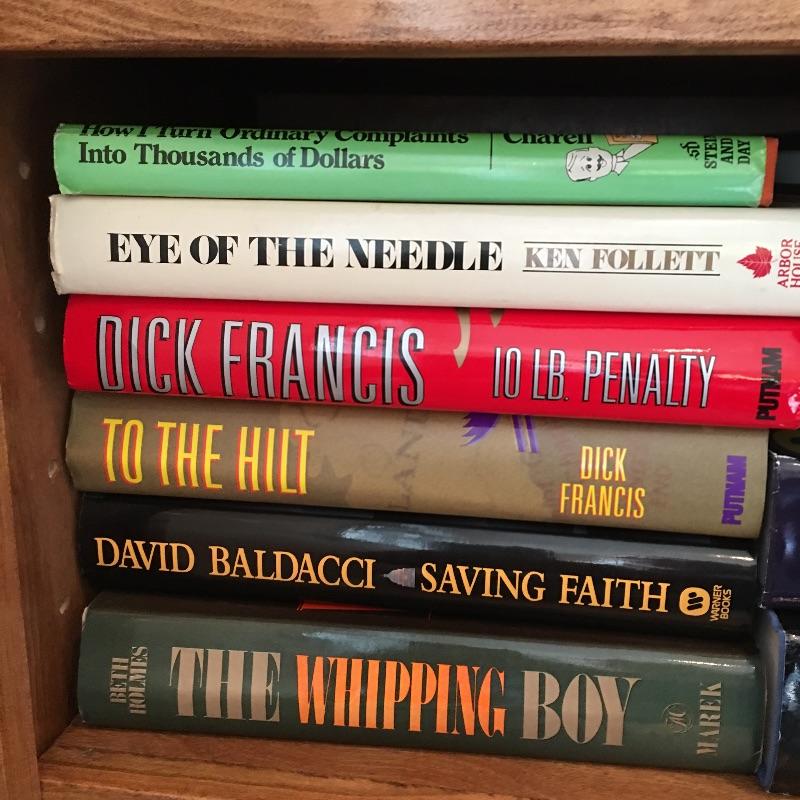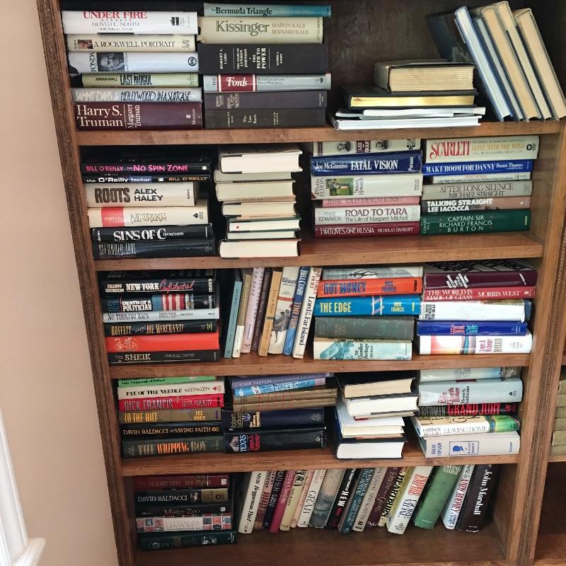 Large selection of books including books by Dick Francis, Ken Follett, David Baldacci, James Michener, Alex Haley, and many more. Also magazines and a book on 9/11. This great assortment of books will keep you busy for the foreseeable future. Bookcase not included.