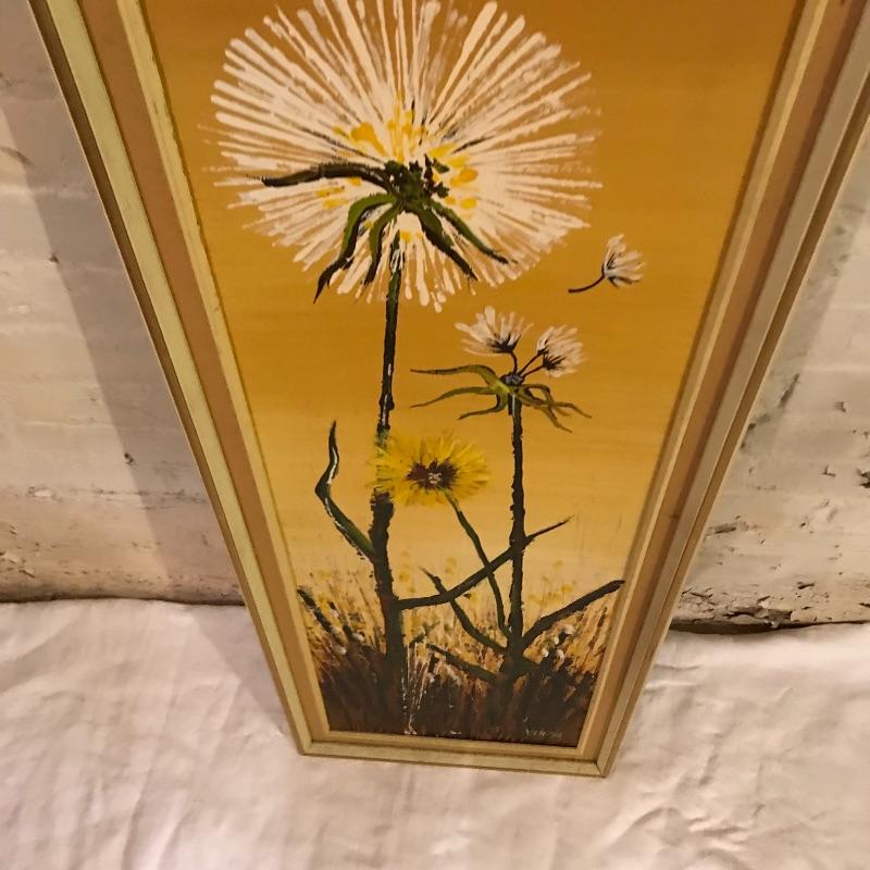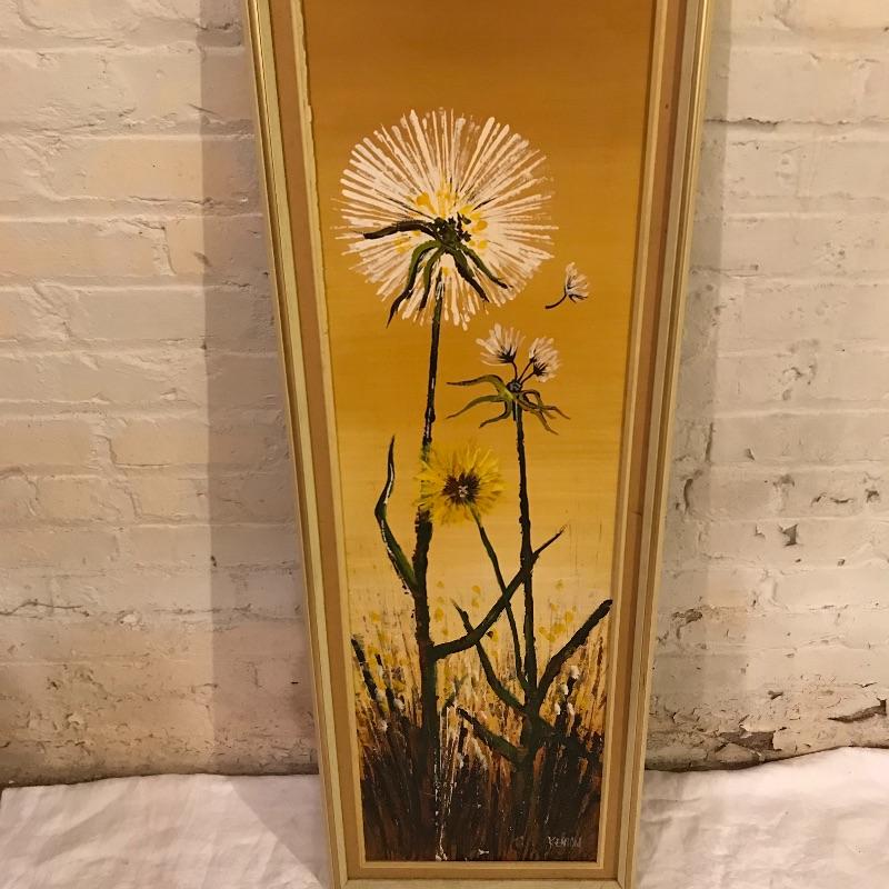This funky 70s-style dandelion oil painting is just waiting to be hung in your hipster house. Approx. 43” x 15”, it is signed by the artist “Kenton.” Local pickup only.