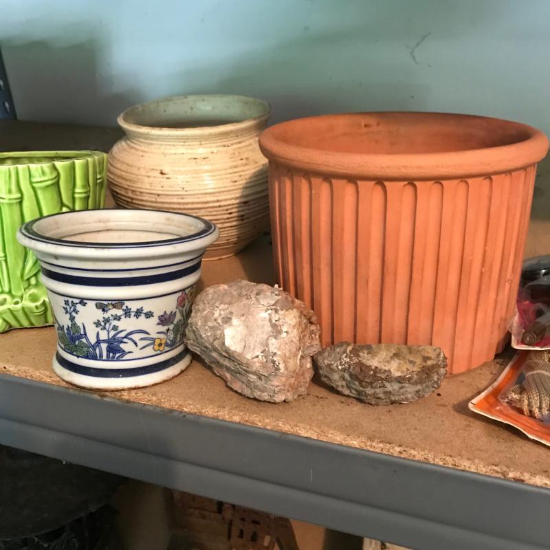 Lots of different flower pots for your gardening enjoyment. Use in your home or patio. Lot also includes candle holders, glass blocks, house numbers and mica rocks. See pic. No shipping. Local pick up only.