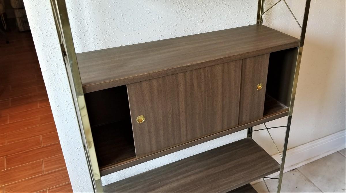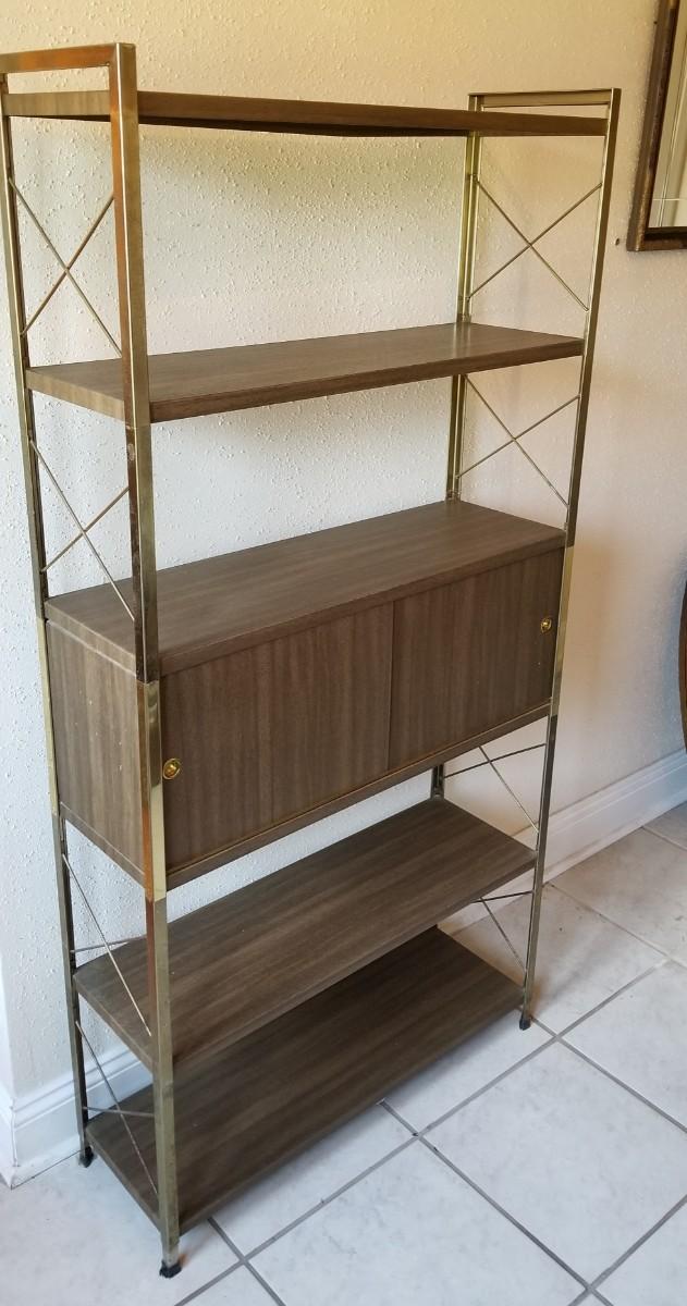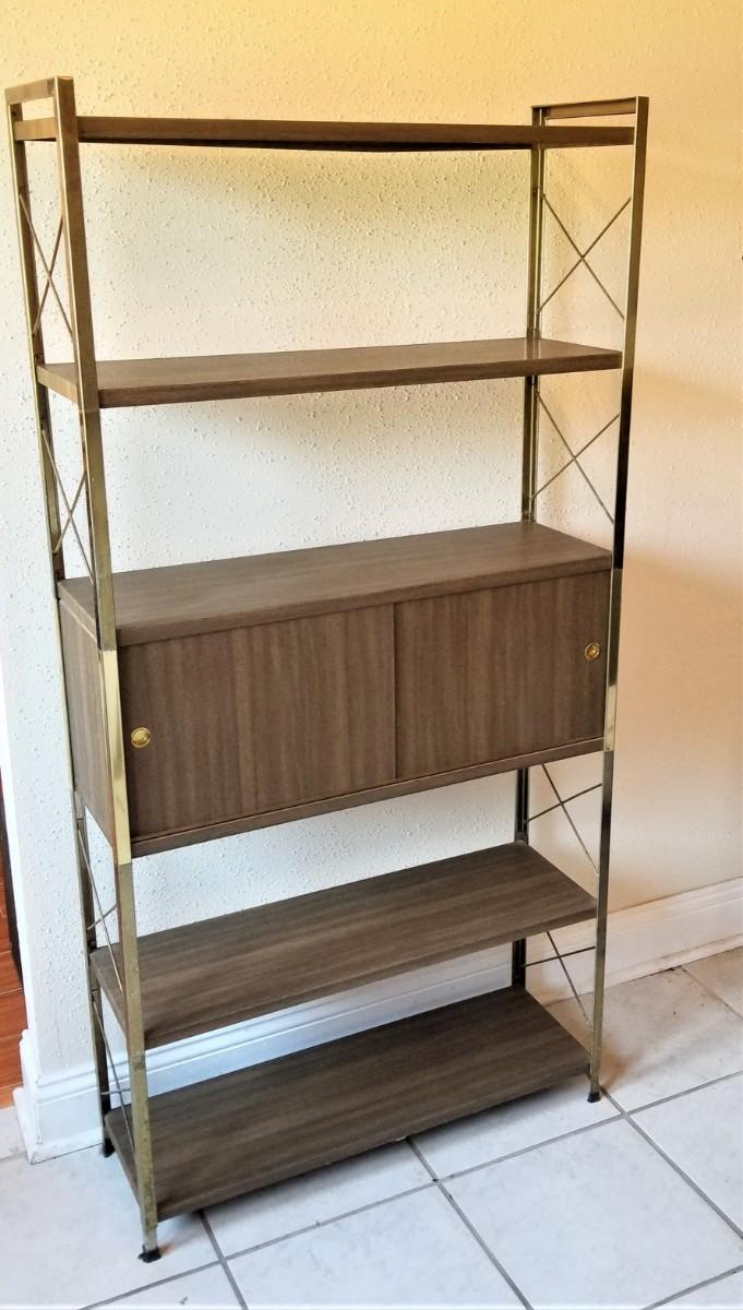 Lot #223  Mid Century Modern Metal Bookcase - Sliding Doors