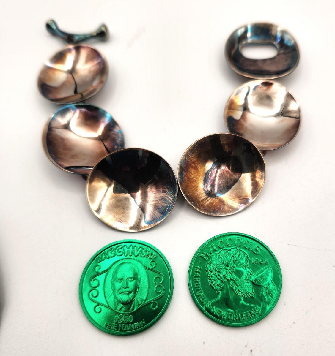 Lot #223 RIM Studios Sterling Bracelet - worn to Bacchus Ball when Pete was King - w/rare doubloons