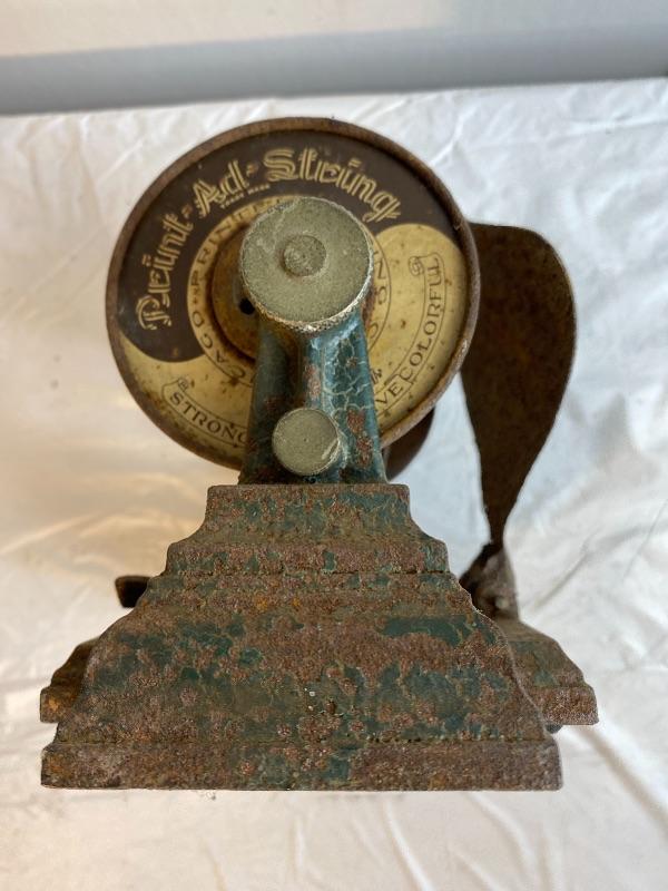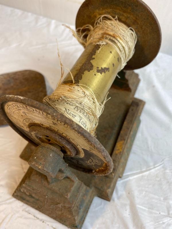 Lot 223 s Vintage Cast Iron Print Ad String Spool Chicago Printed Steampunk Industrial Repurpose