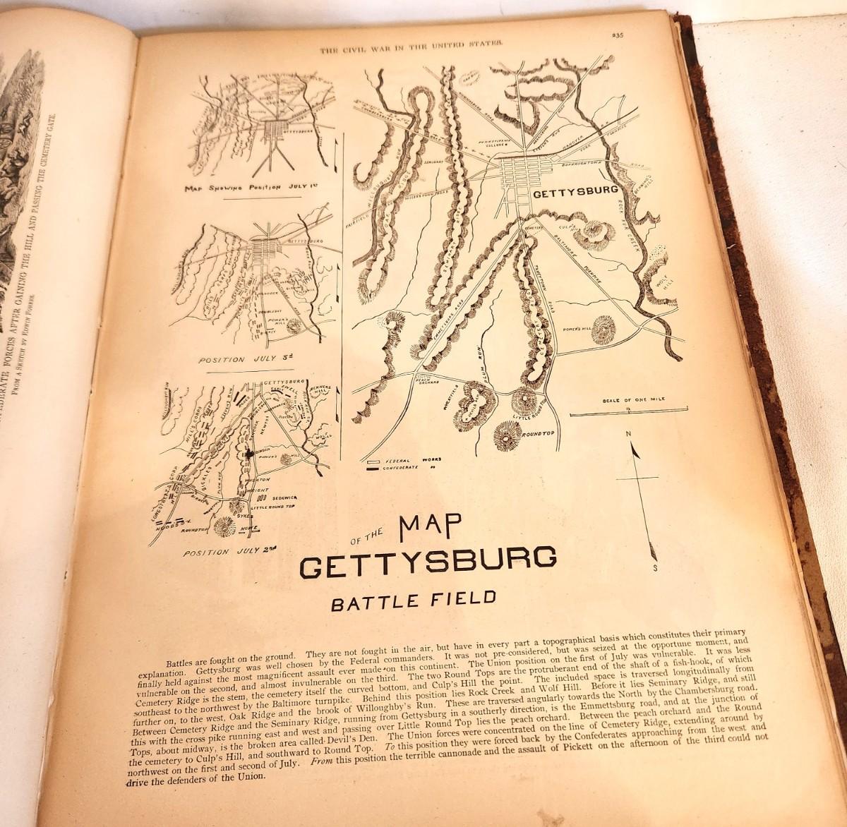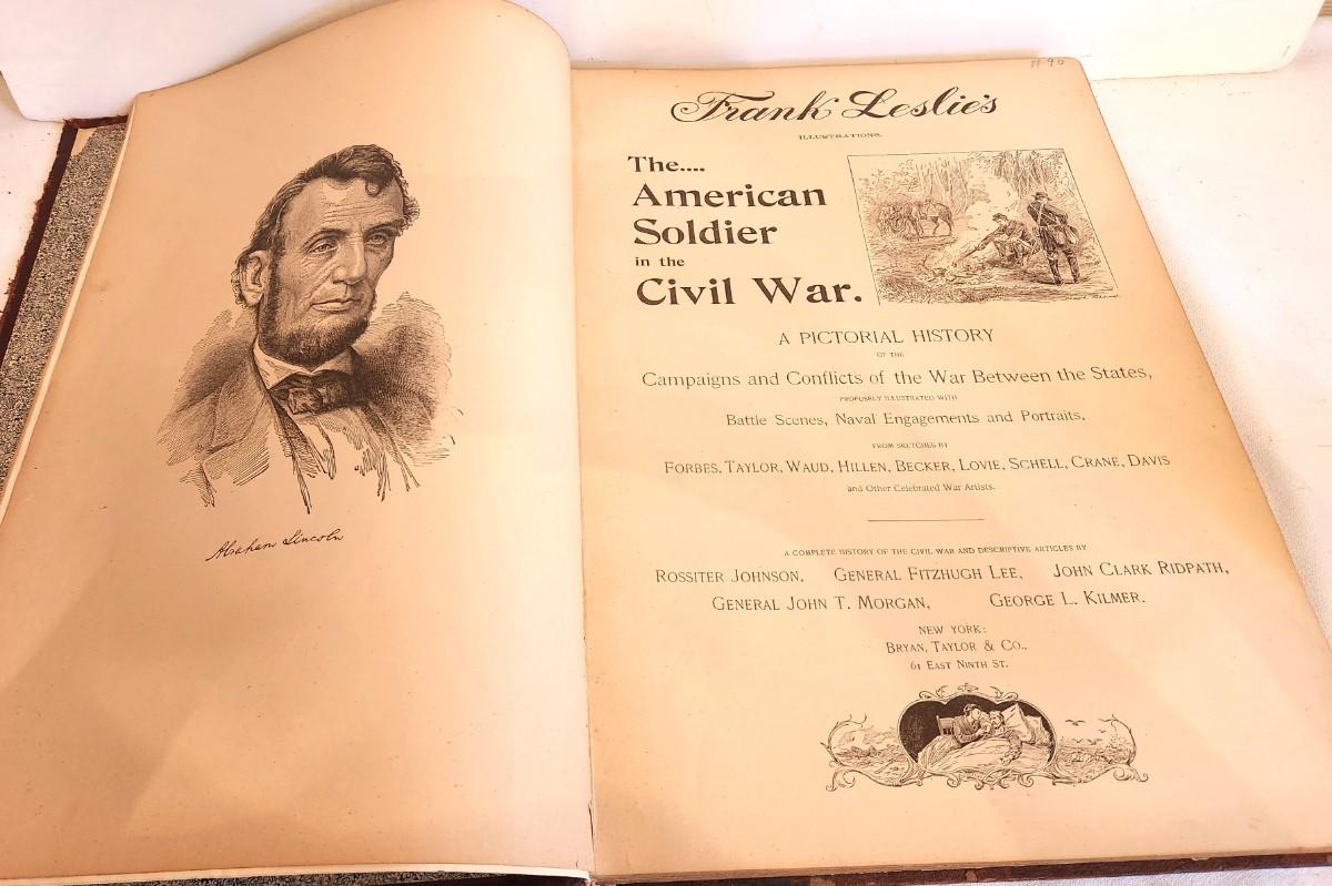 Frank Leslie's The American Soldier in the Civil War - 536 pages, published in 1895. Oversized hardcover, 12" x 17". Full of battle descriptions, maps, illustrations. As you can imagine, it leans HEAVILY to the Union side of things (unlike the period right after the War when both sides agreed to present unbiased accounts of the conflict). They let a couple of Confederate contribute to this tome, such as Fitzhugh Lee, but the truth is that the Southern side of things is practically non-existent in this book. You've been warned. However, it's still a very interesting book, and was produced on a subscription basis, which means not many copies were printed.