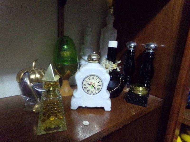 LOT 224  VARIOUS COLLECTABLE AVON BOTTLES (S/P SHAKERS, CLOCK,ETC)