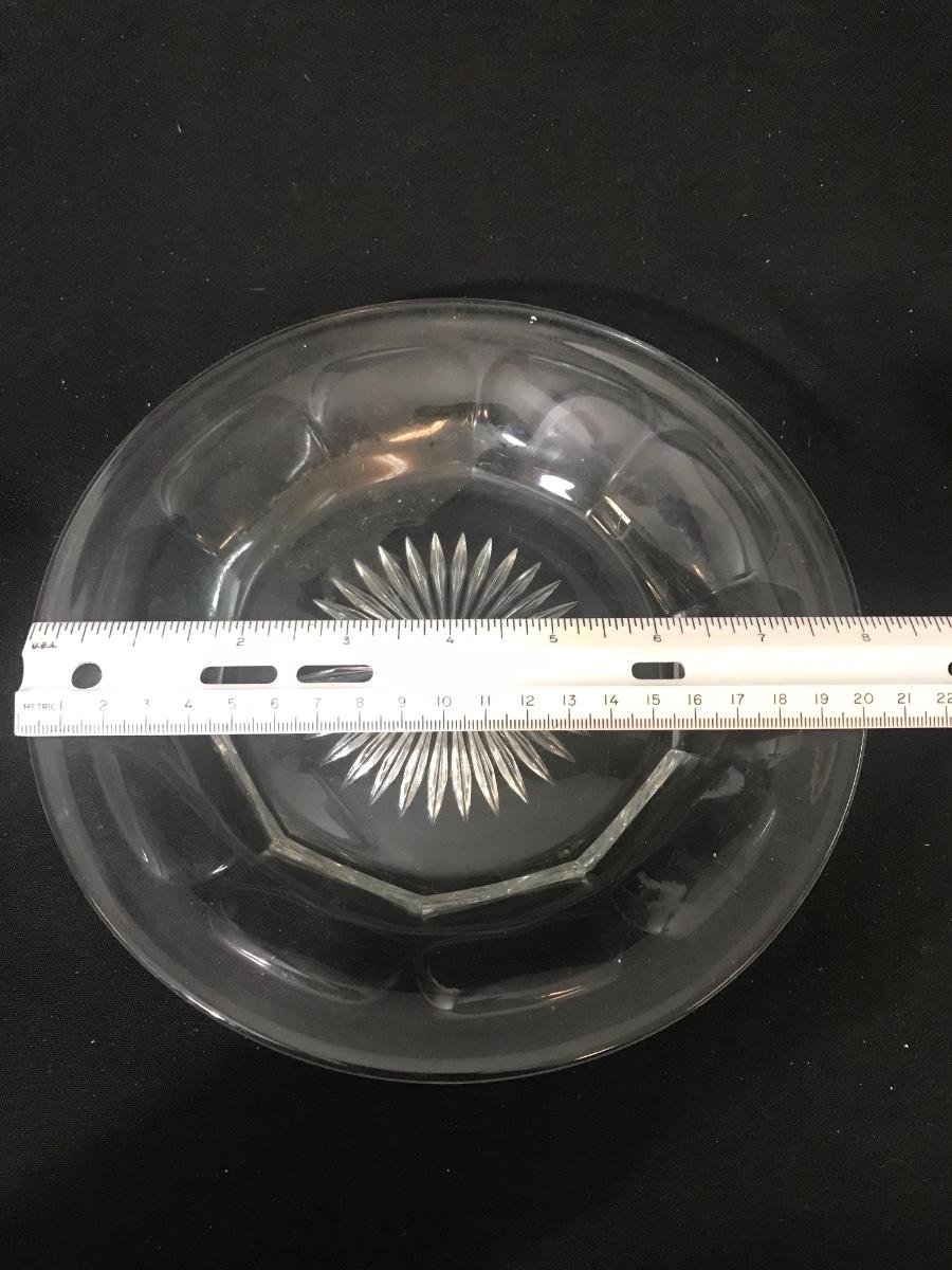 Vintage Heisey Glass Plates & Bowls. Please see all pictures as they are the best representation of the items. The pictures show condition, measurements if taken, and what is included in the lot. Due to the large amount that we photograph and the time frame, we are not always able to take measurements. All items unless noted, are pre-owned and have been used. Please bring packing materials for your items. If you purchased furniture, you must bring help. We do not allow one person to carry large furniture out on their own. Bring help, tools and a truck for your personal safety. Company policy. Thank you.