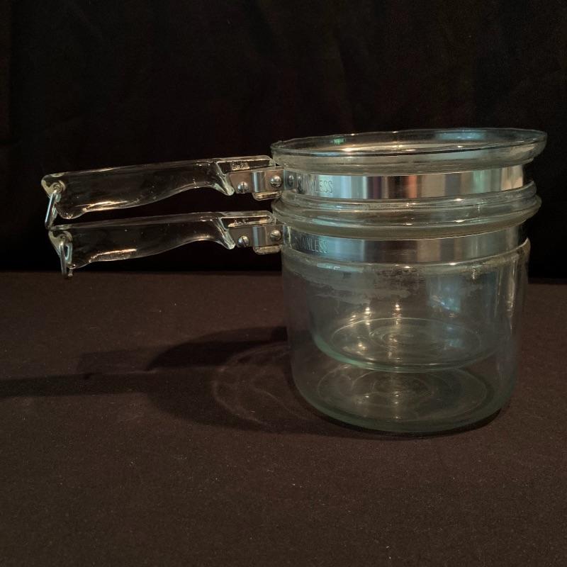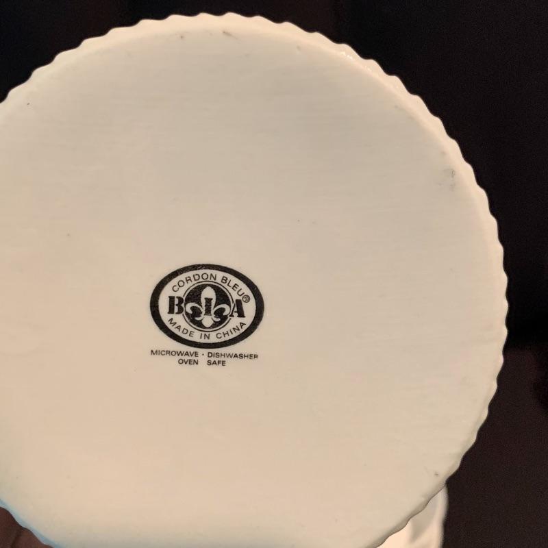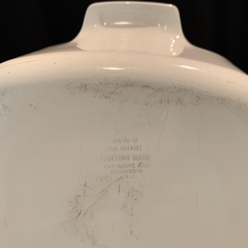This lot includes a vintage L’Echalote La Sauge Spice of Life Corning Ware casserole dish with a Pyrex lid, a 1 1/2 quart Corning Ware Cornflower casserole dish with a Pyrex lid, and a smaller Corning Ware Cookmates PP-43 baking dish. There are also four 500mL round Corning Ware dishes with one lid for using in the microwave or refrigerator. There is one round porcelain BIA Cordon Bleu soufflé dish and a smaller unlabeled oval shaped dish. Also included are three Royal Falcon Ironstone bowls (two smaller and one slightly bigger), three small ARC France glass bowls, a Fire King Sunbeam mixing bowl with a spout, a Carr China Co. white ceramic pitcher, a small porcelain Royal Worcester cup, and a Pyrex double boiler. Local pickup only.