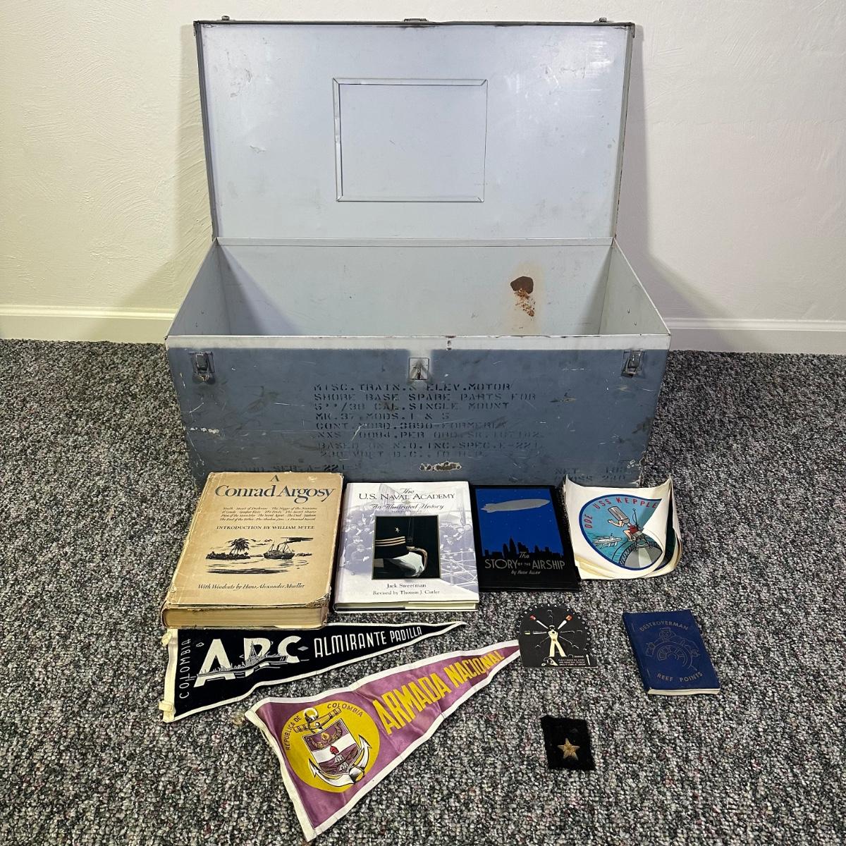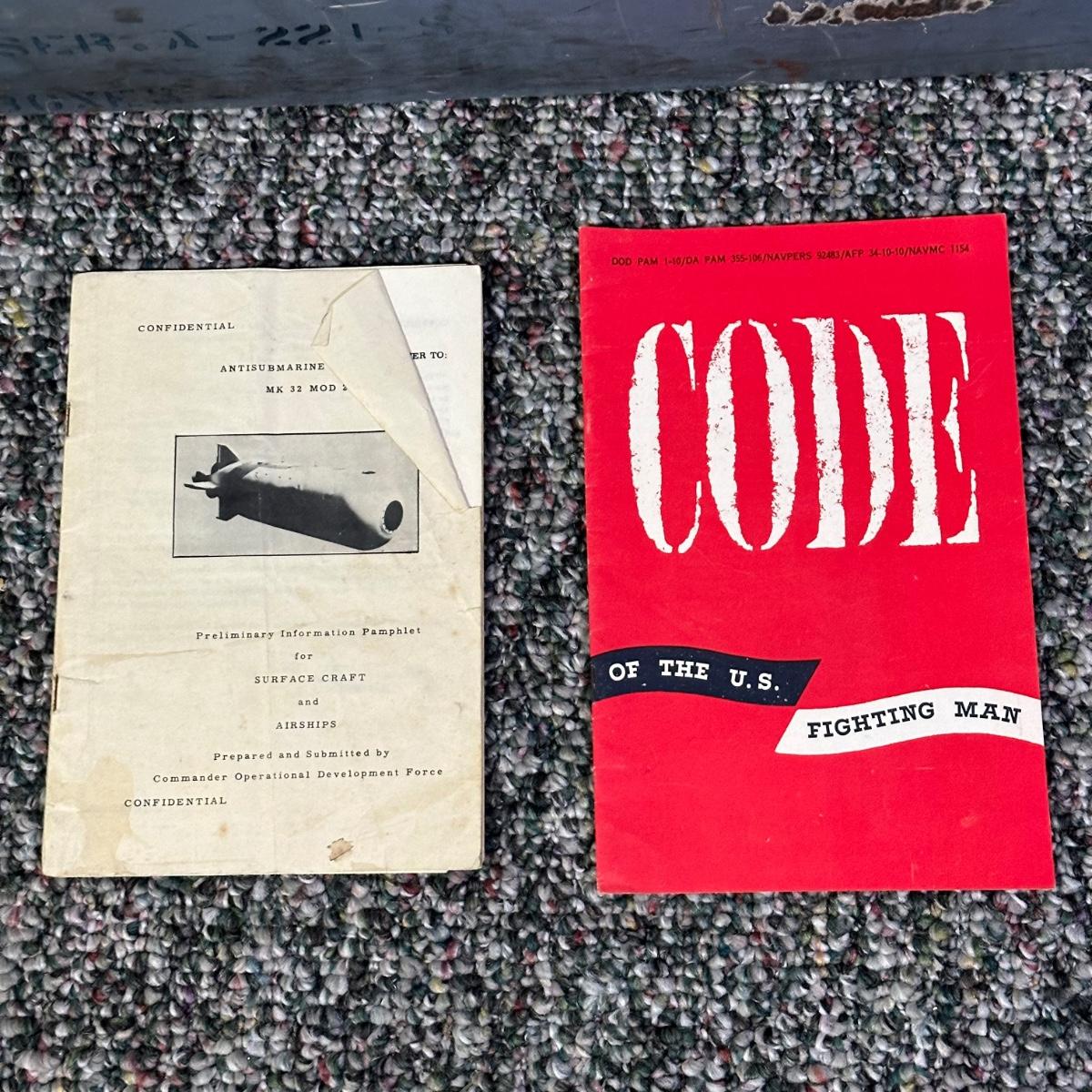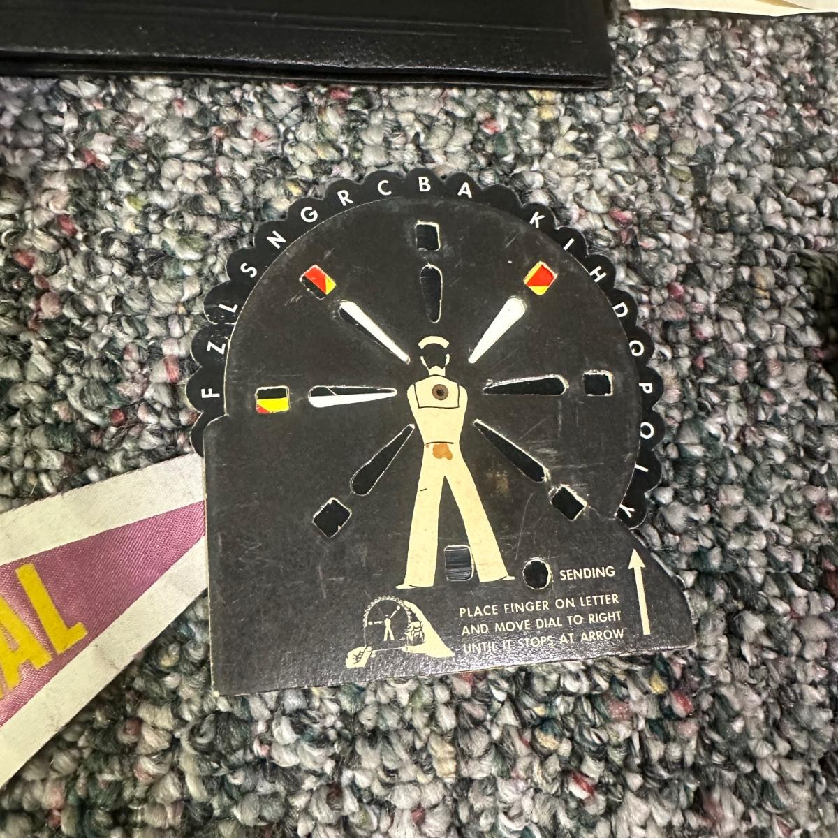 LOT 223B: WWII era US Navy Alphabet Flag Locker w/ Semaphore Trainer, Cuff, Books & More