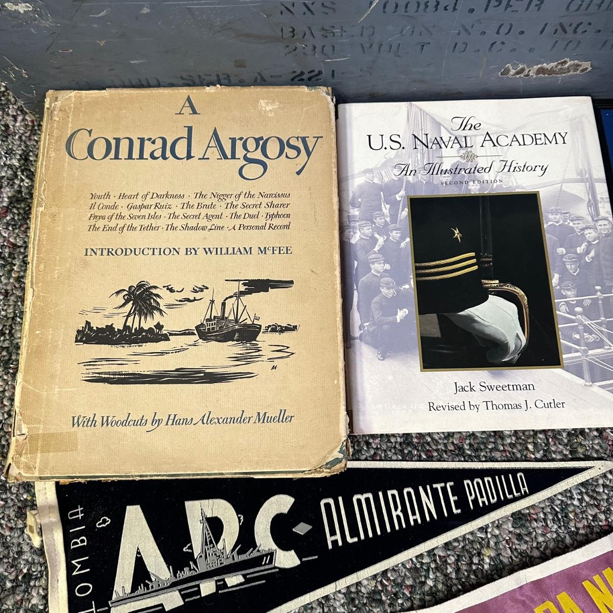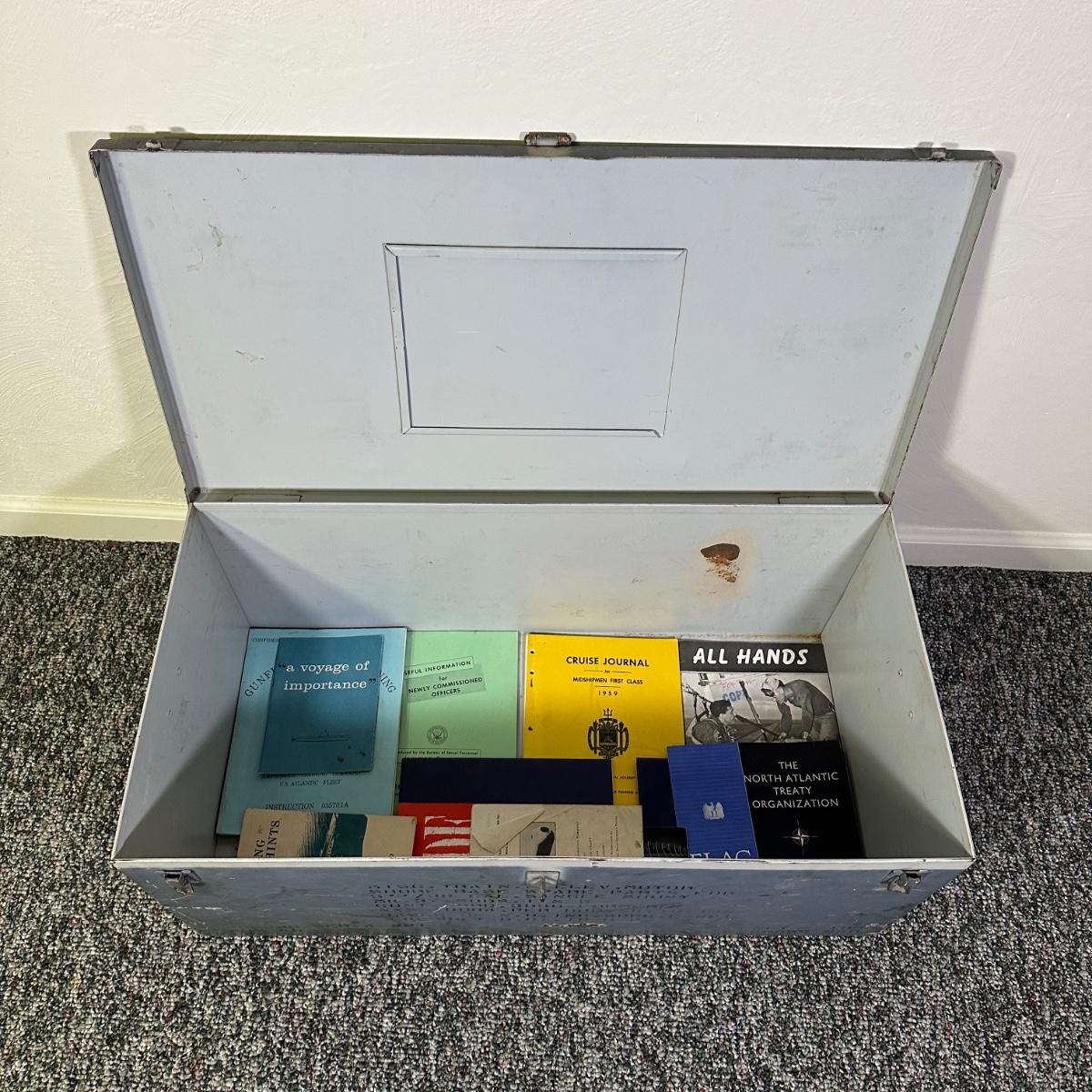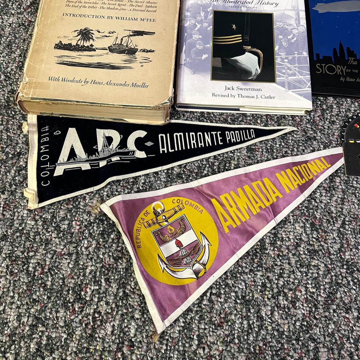 LOT 223B: WWII era US Navy Alphabet Flag Locker w/ Semaphore Trainer, Cuff, Books & More