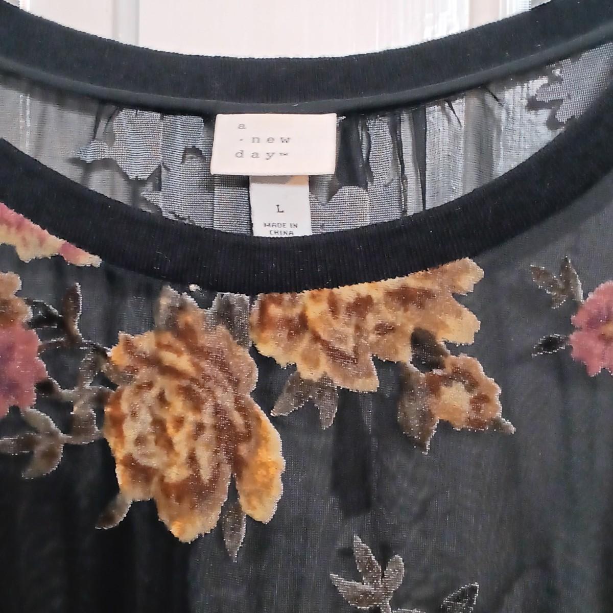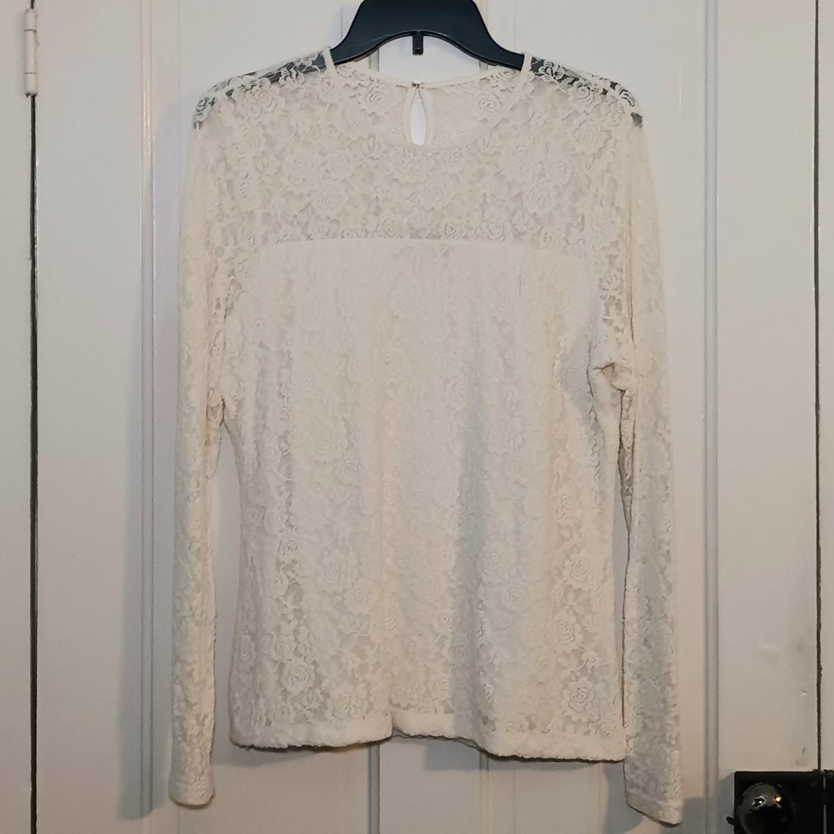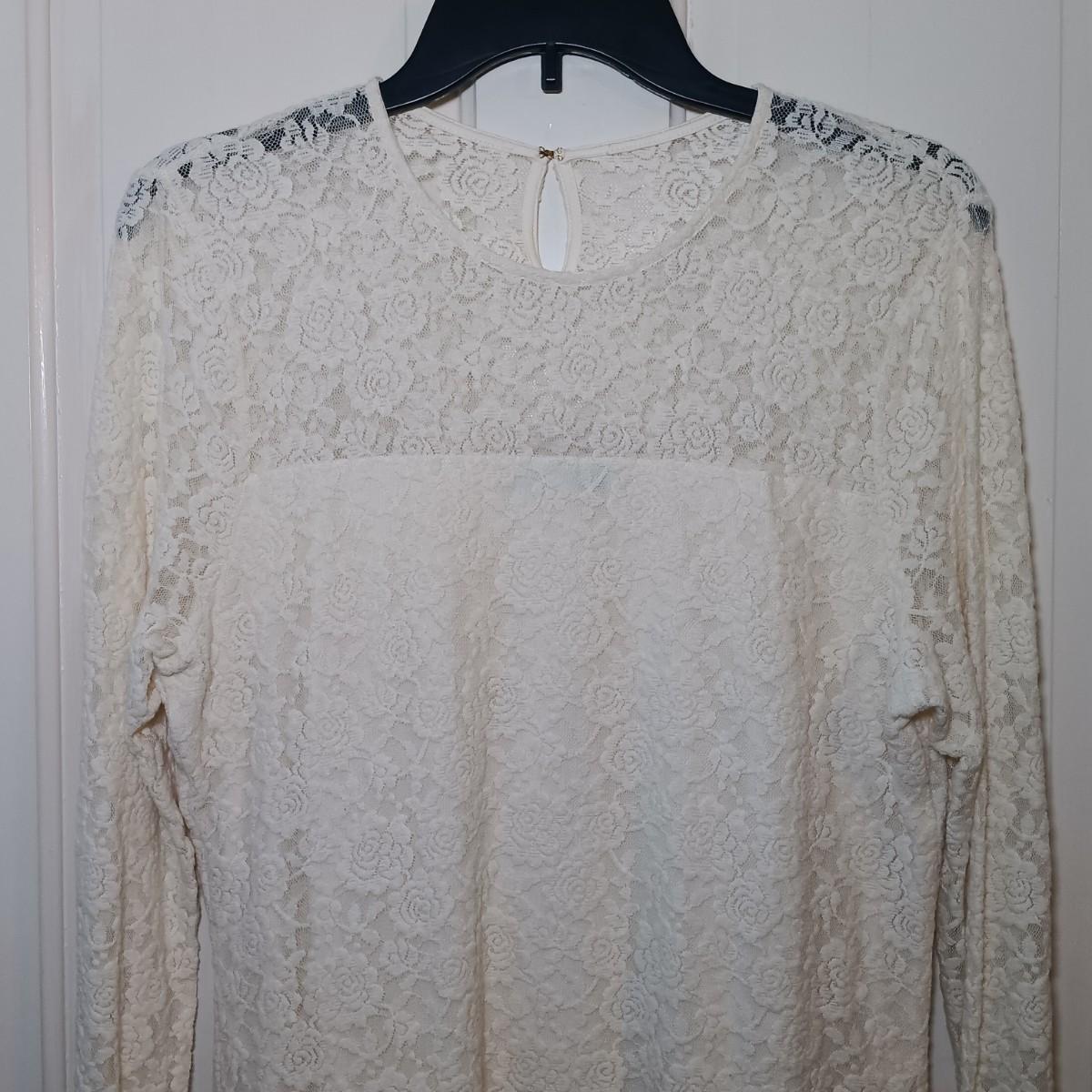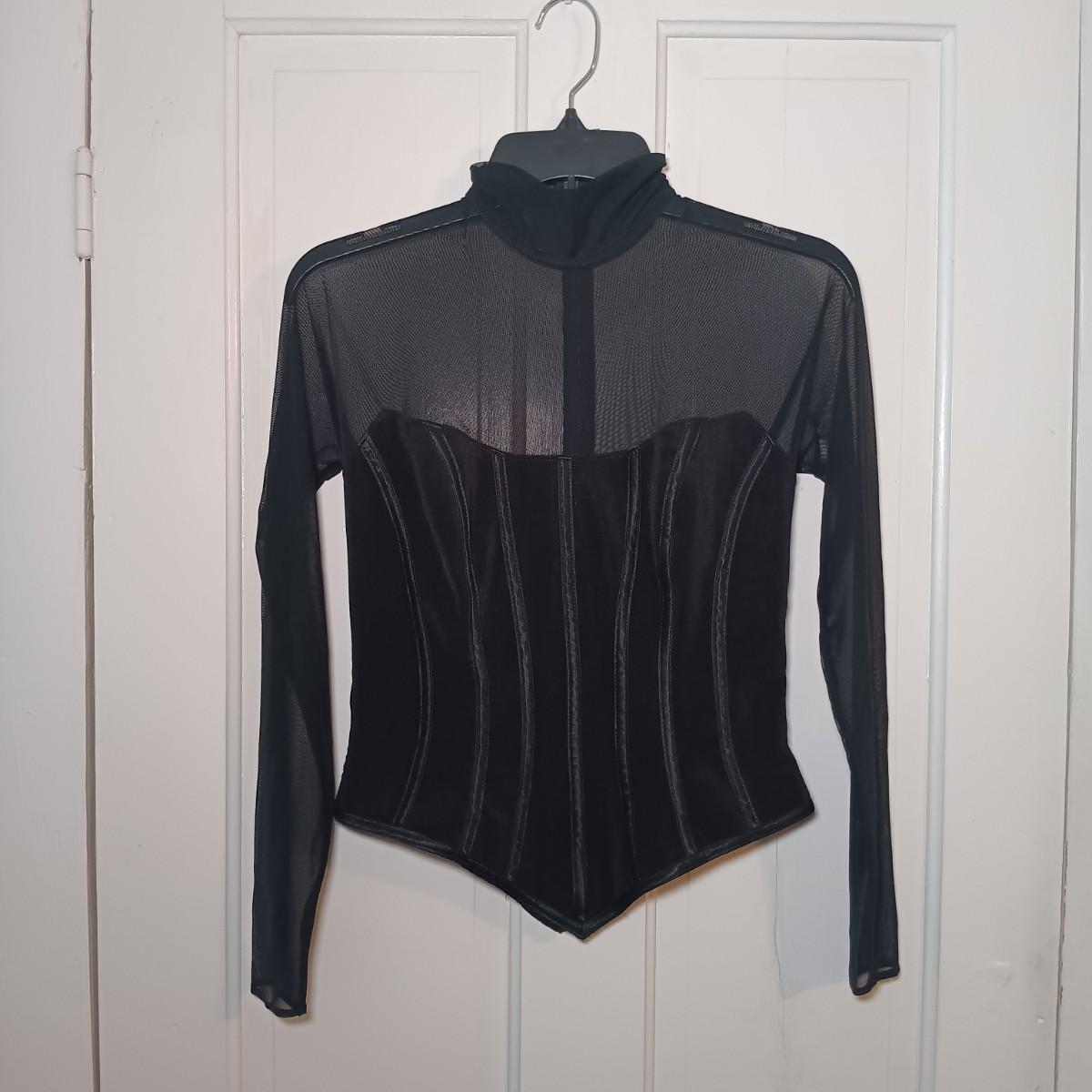 LOT 224: Vintage Caché Sheer Sleeve Corset, Ralph Lauren Floral Lace Long Sleeve Shirt & A New Day Velvet Rose on Sheer Fabric Long Sleeve