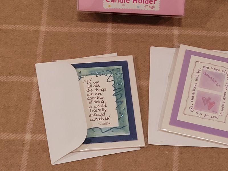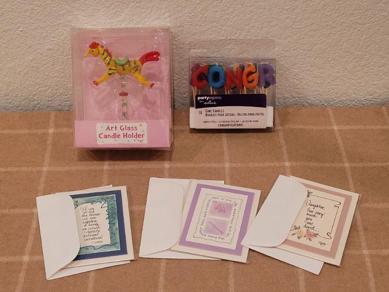 Lot 224: New Cards, Candles and Glass Candle Holder