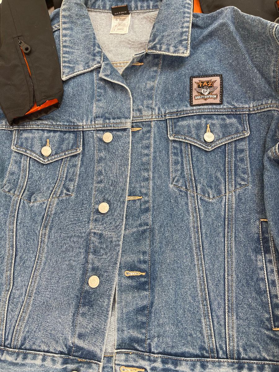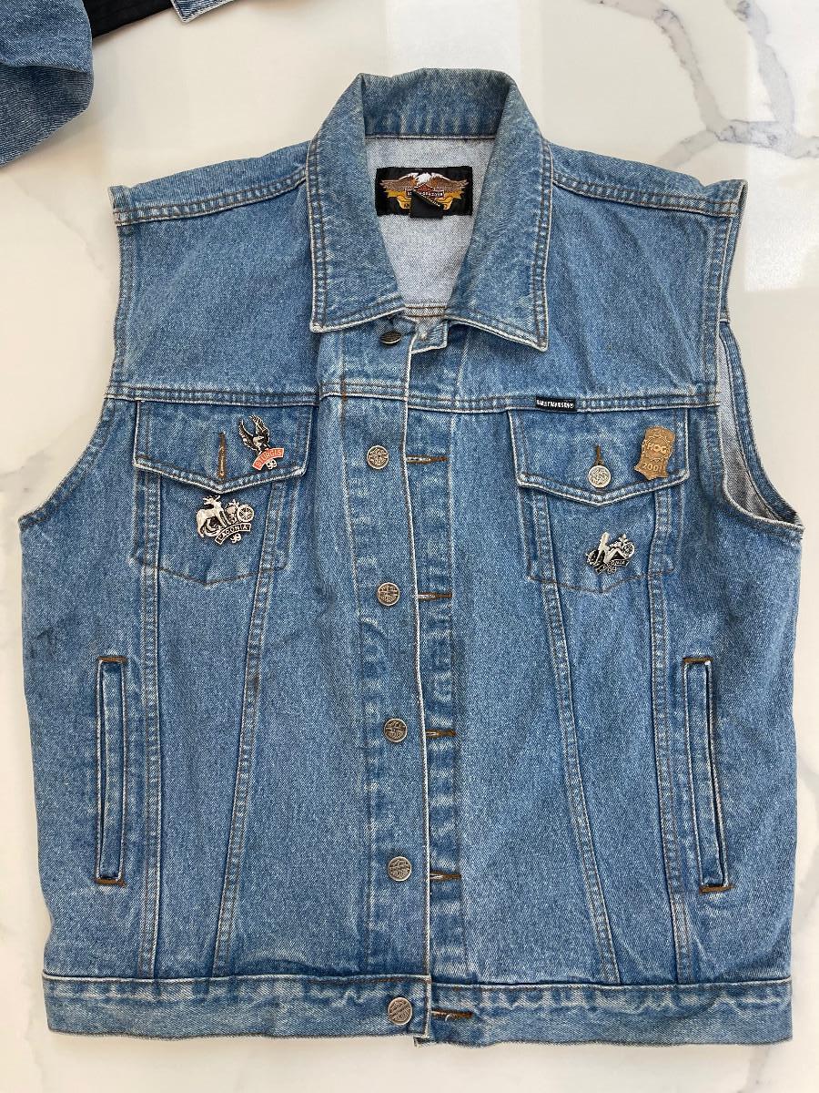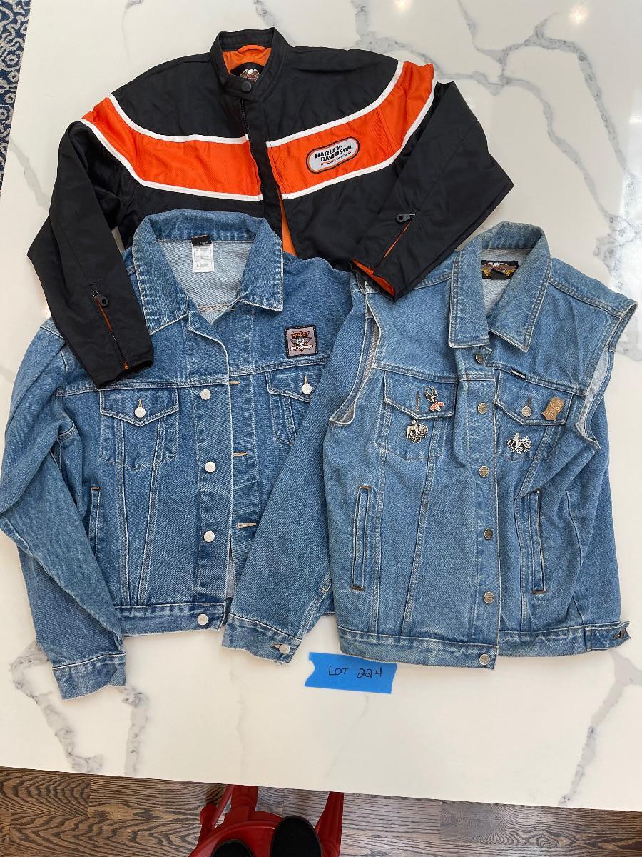 Harley - Davidson Denim Jacket (size L), Vest (size M Pins Included) and Racing Jacket (size L).