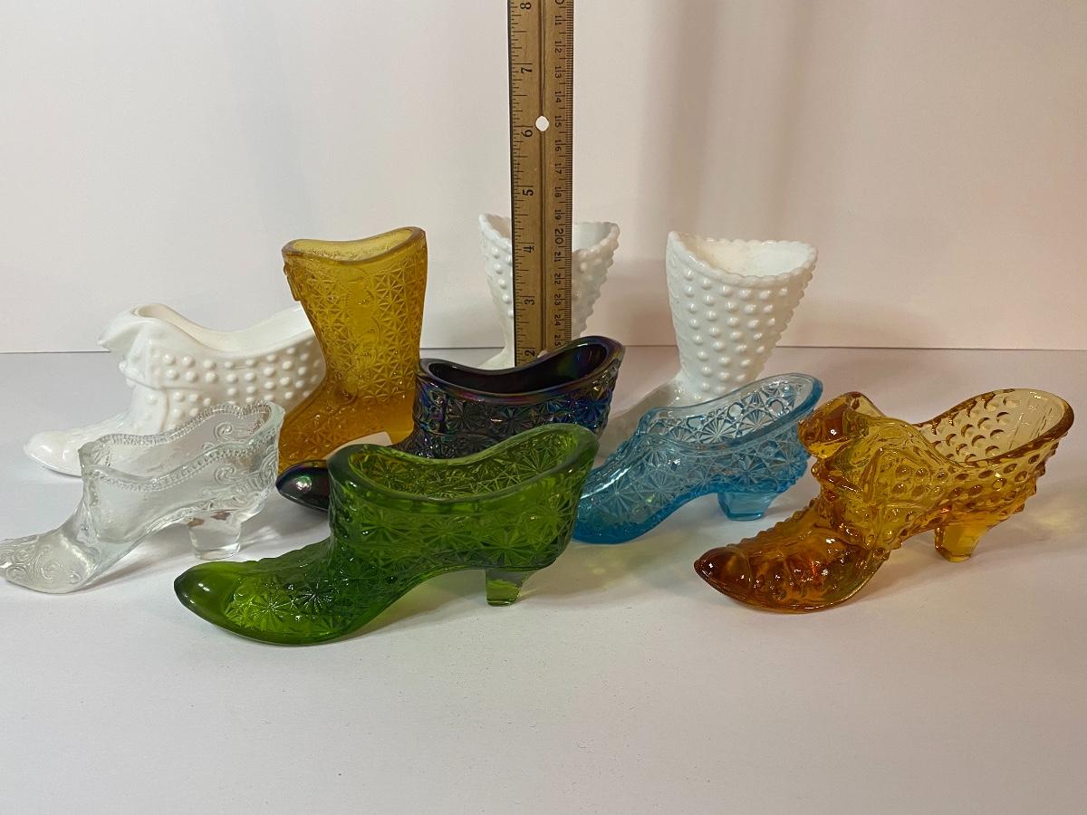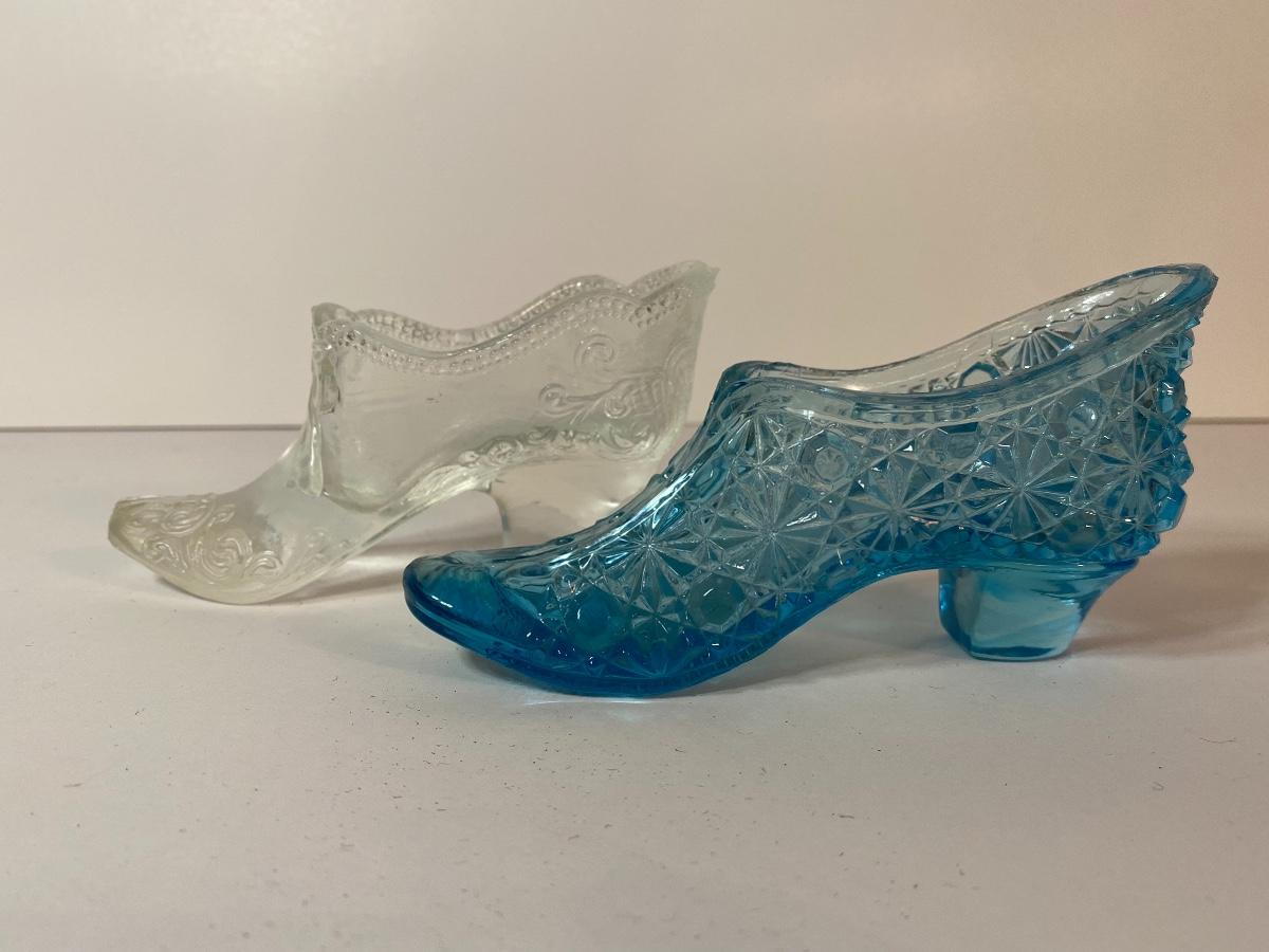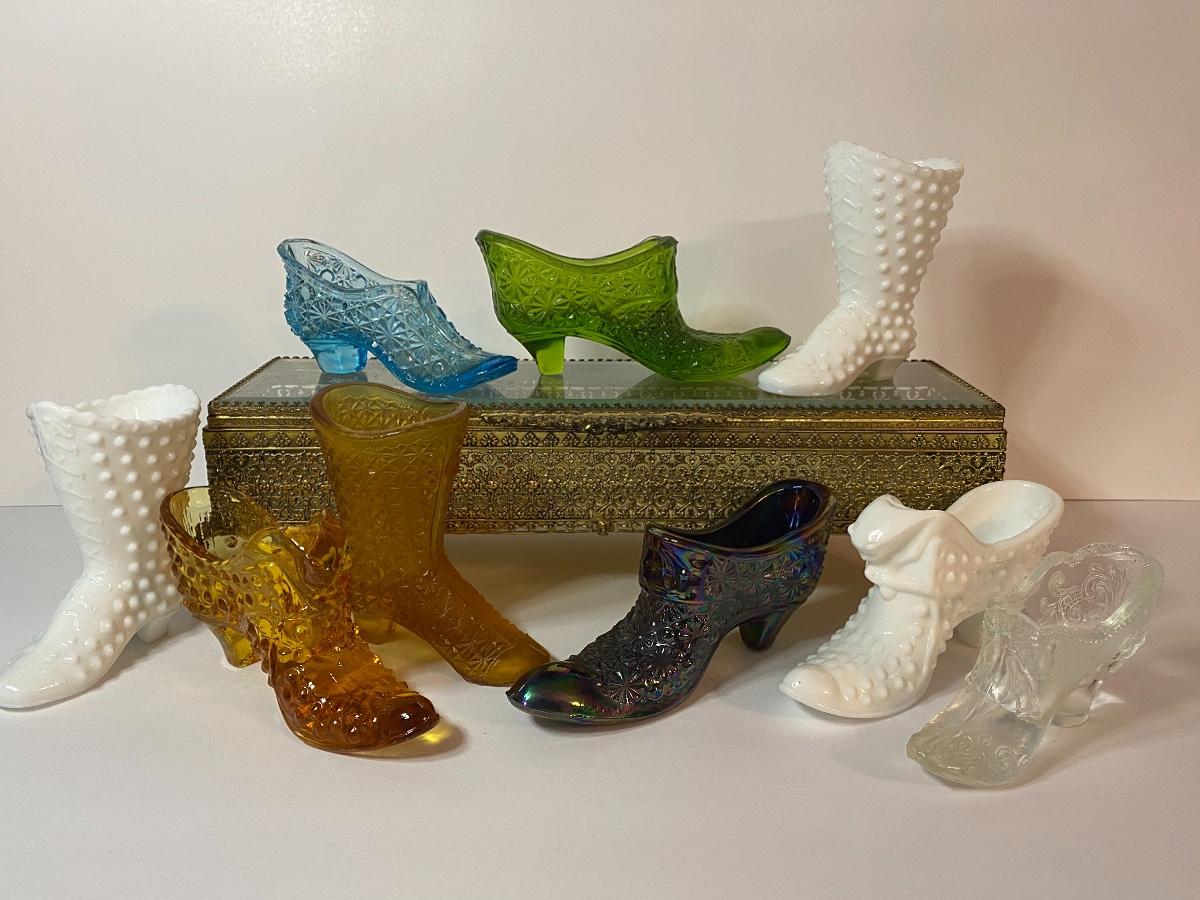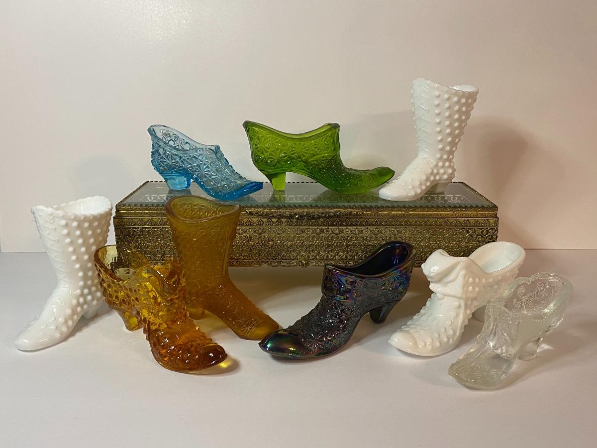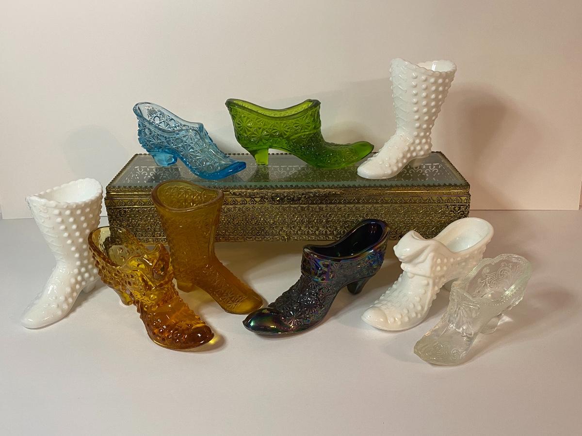 Lot 224: Vintage Glass Top Jewelry Box and Glass Shoe Collection