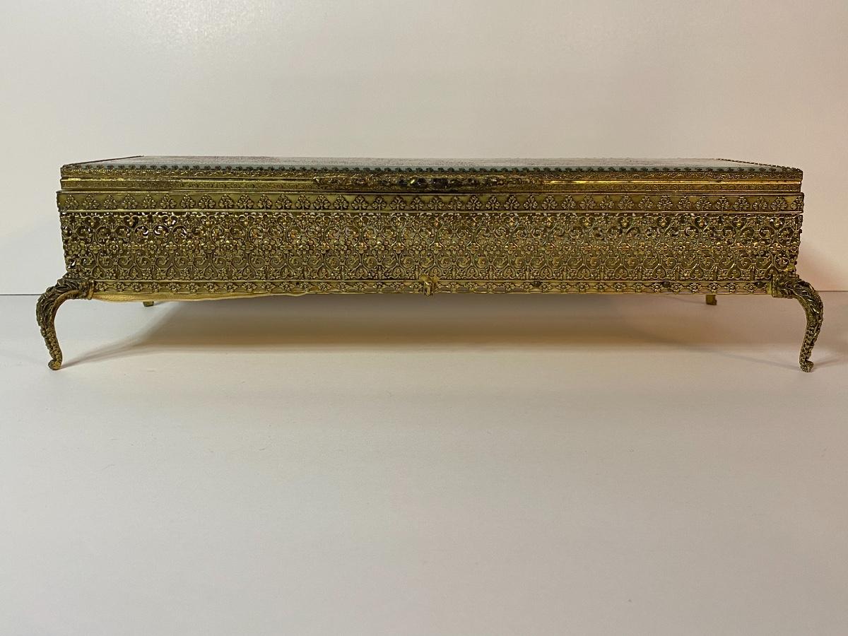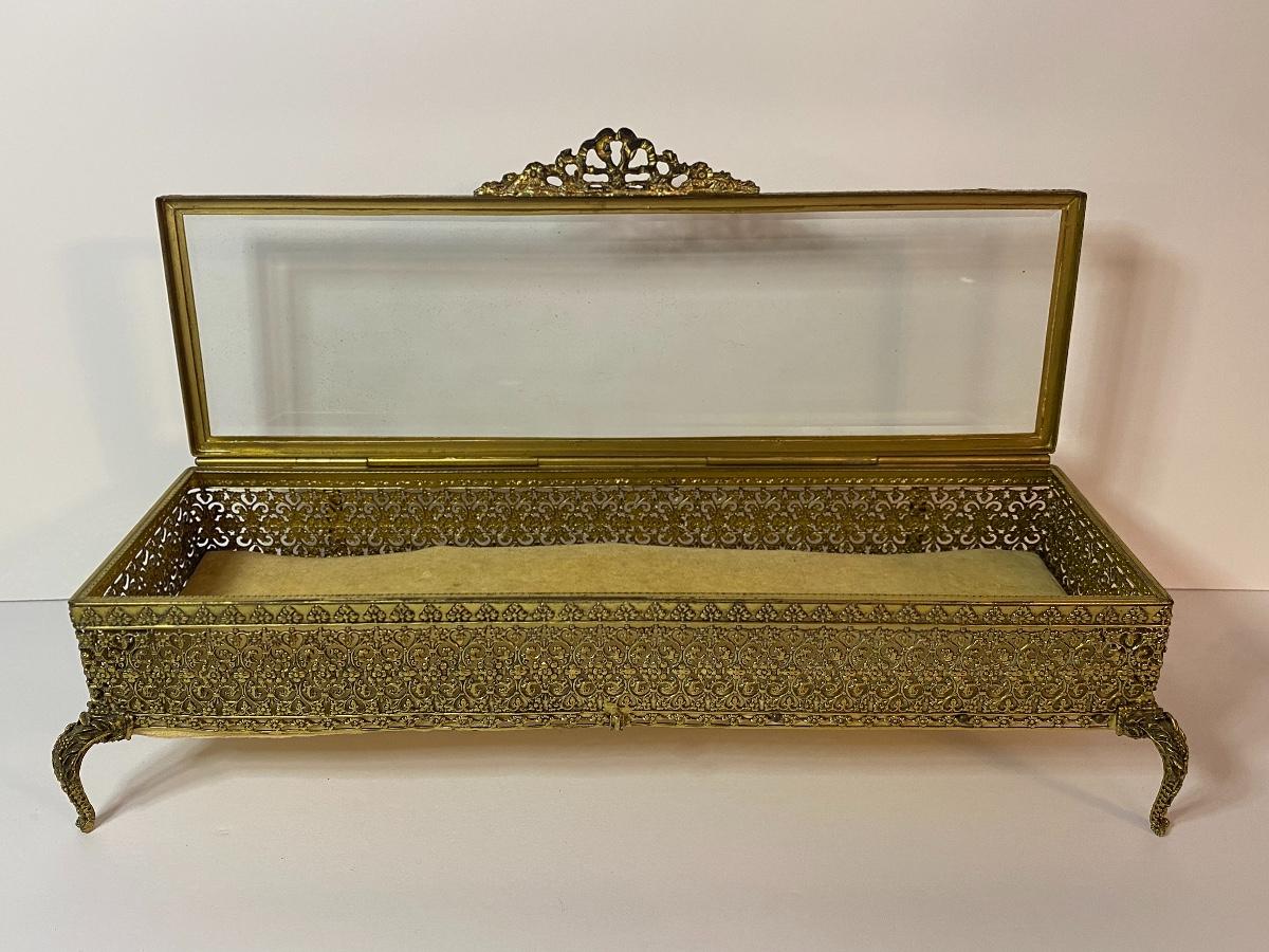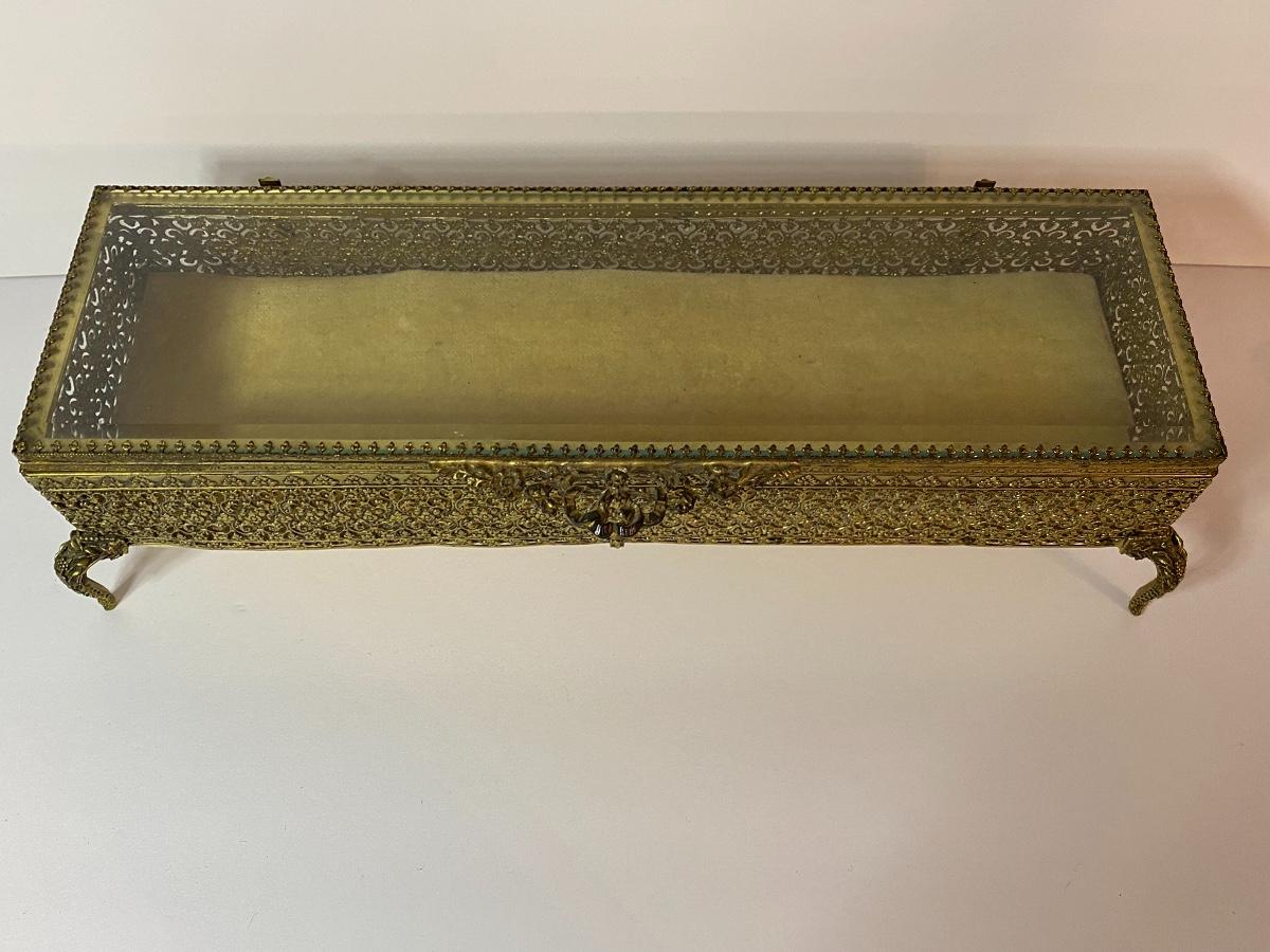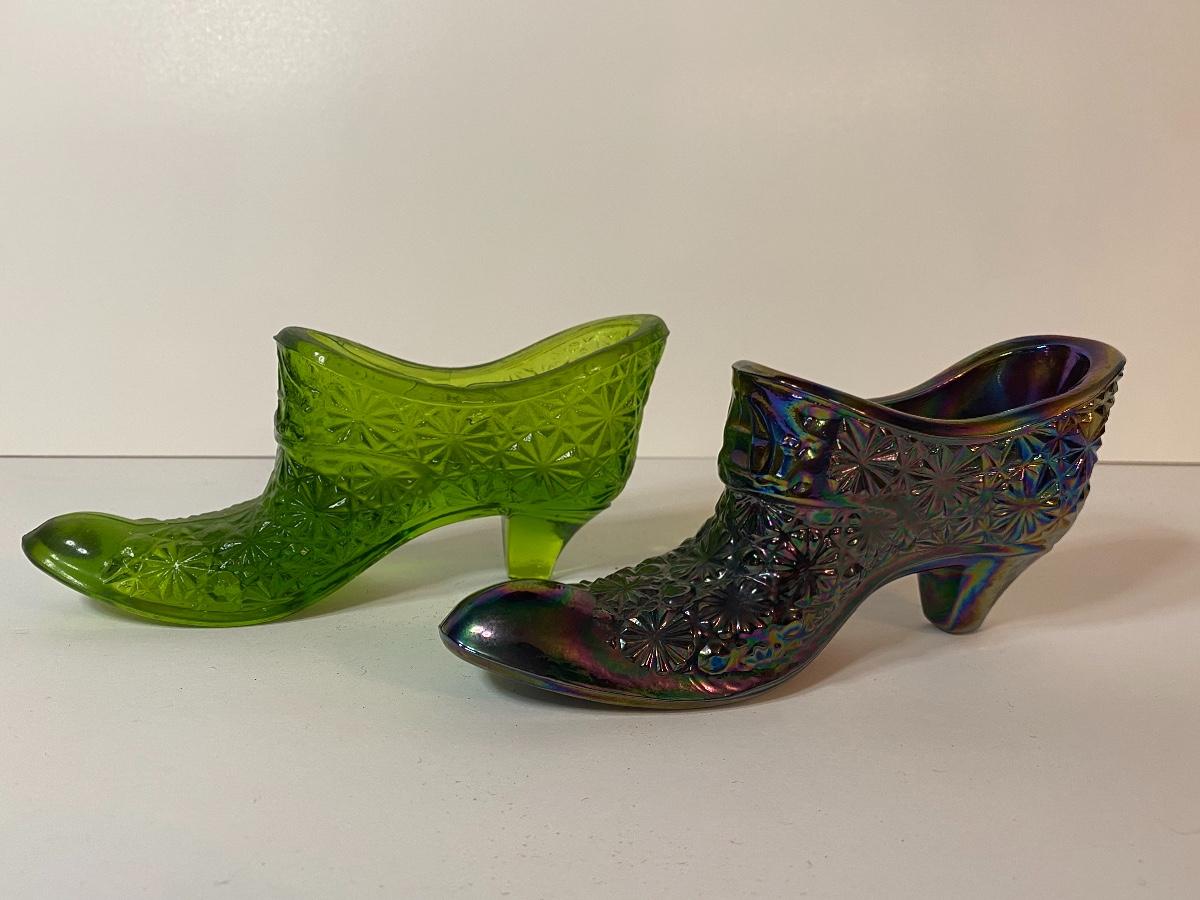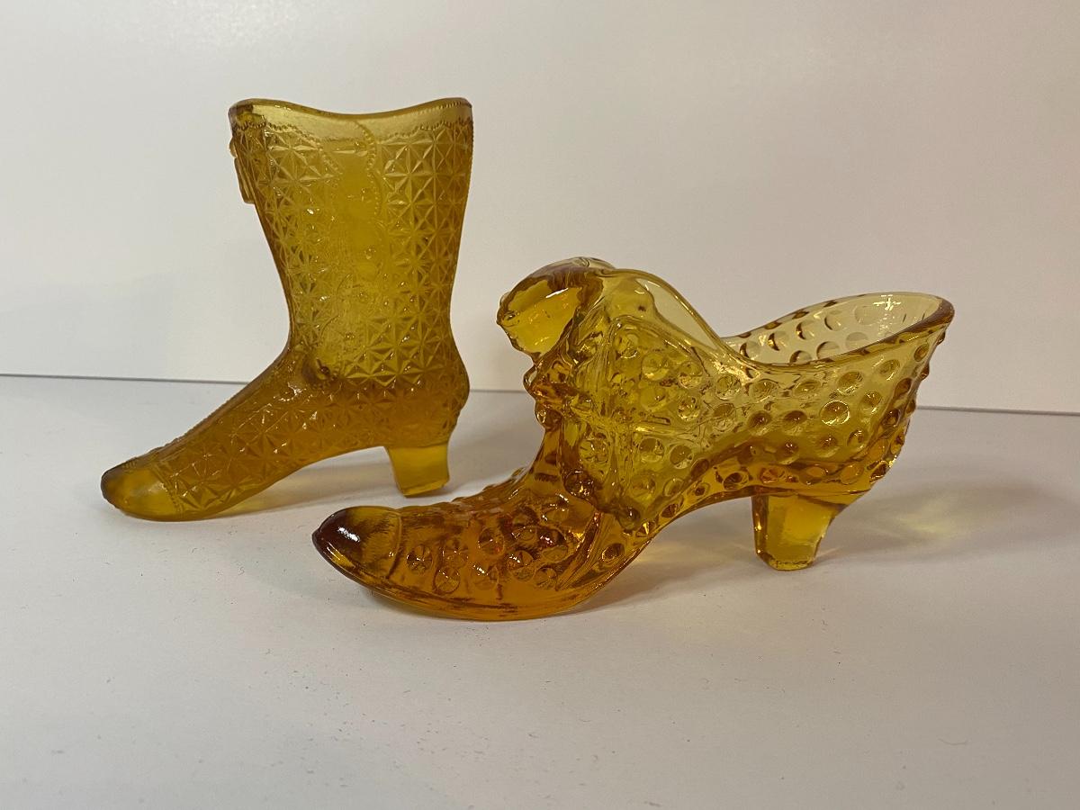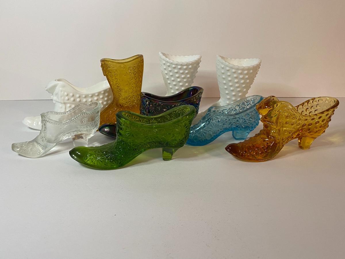 Lot 224: Vintage Glass Top Jewelry Box and Glass Shoe Collection