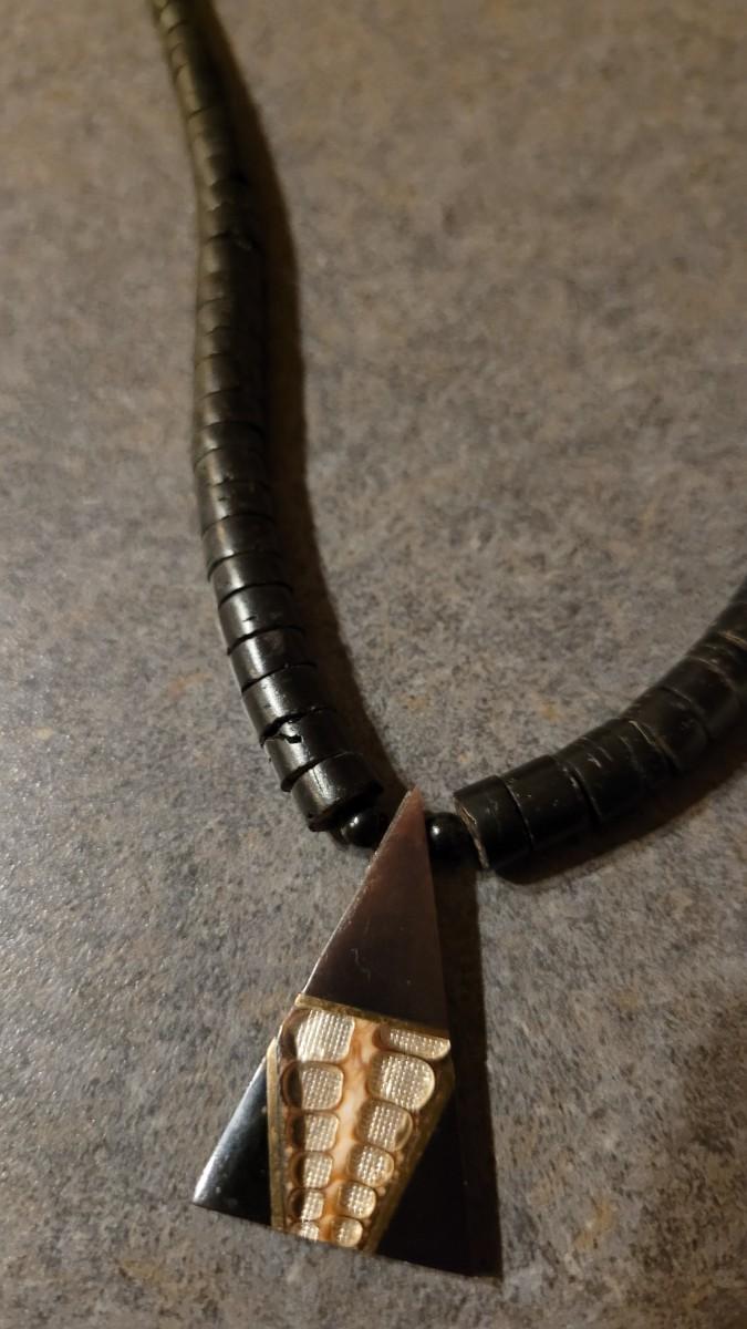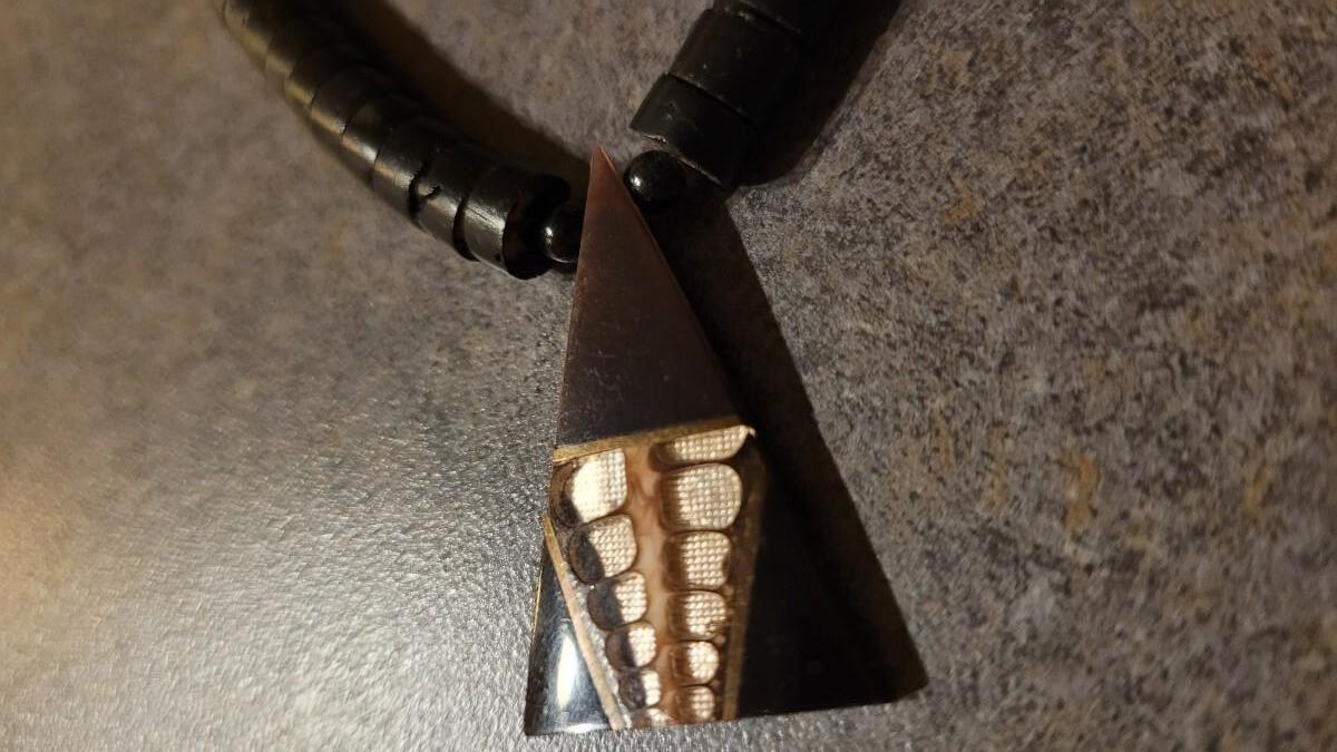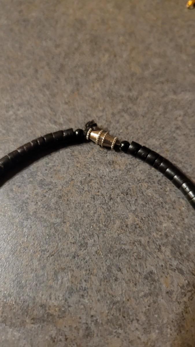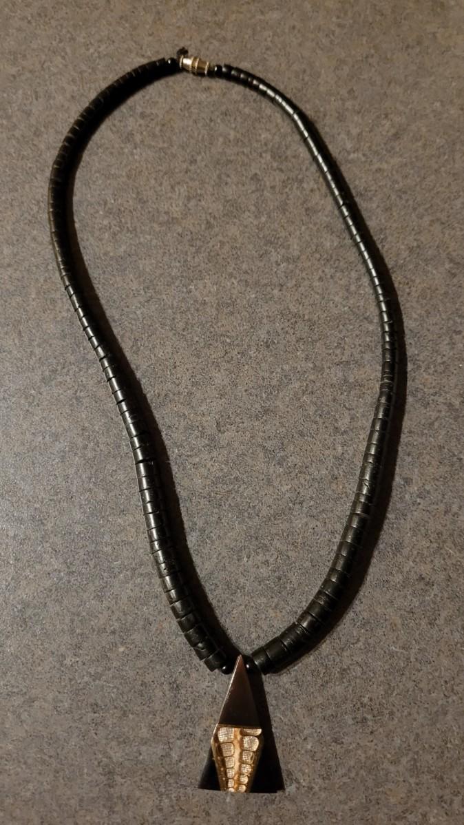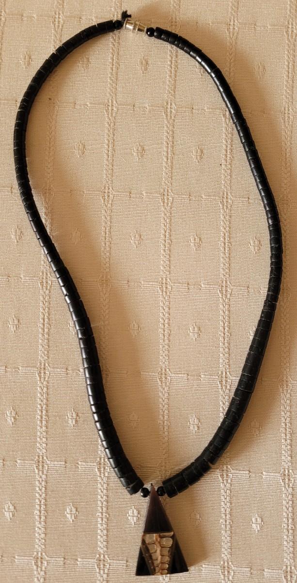 Lot 224: Heishi Necklace with Encased Rattlesnake Rattle Skeleton