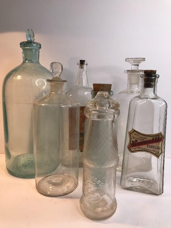 This is a unique lot of large glass apothecary bottles. Each lot is unique and you will need to see all pictures. Pictures have been taken from all side to see condition and markings. What you see in the pictures is the actual content of the lot and the pictures are the best representation of the bottles. All bottles are sold-is according to the pictures. For further information please google the makers marks for age.
