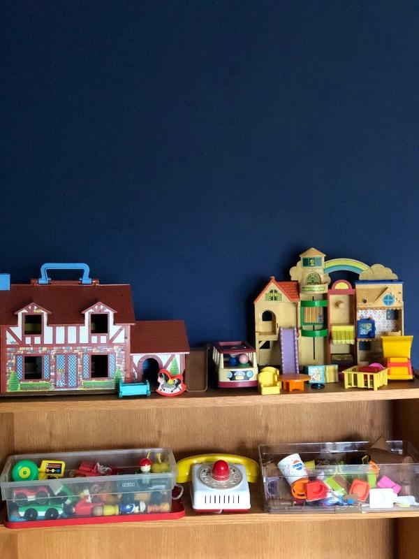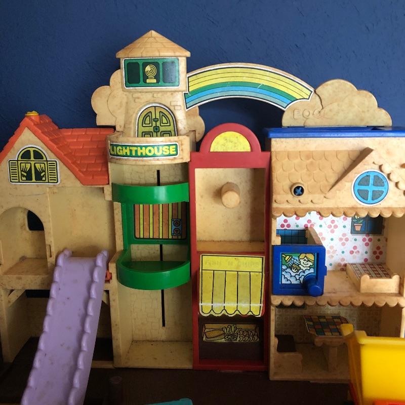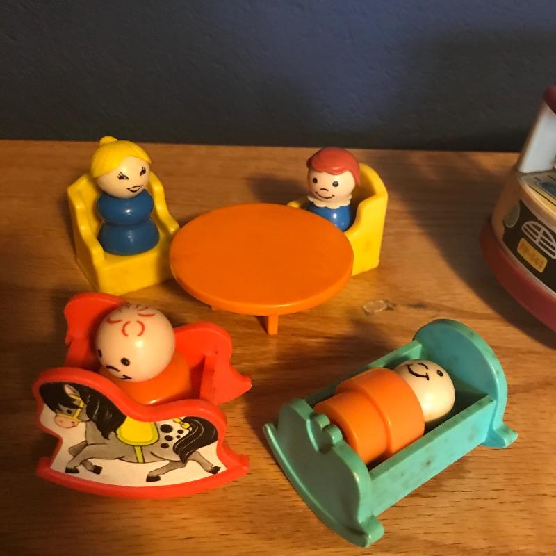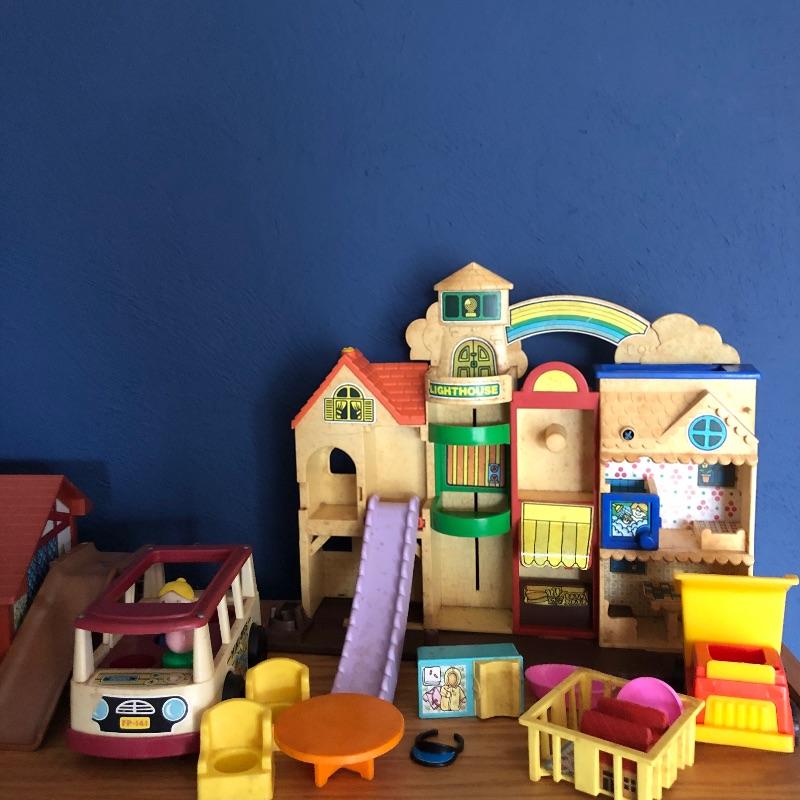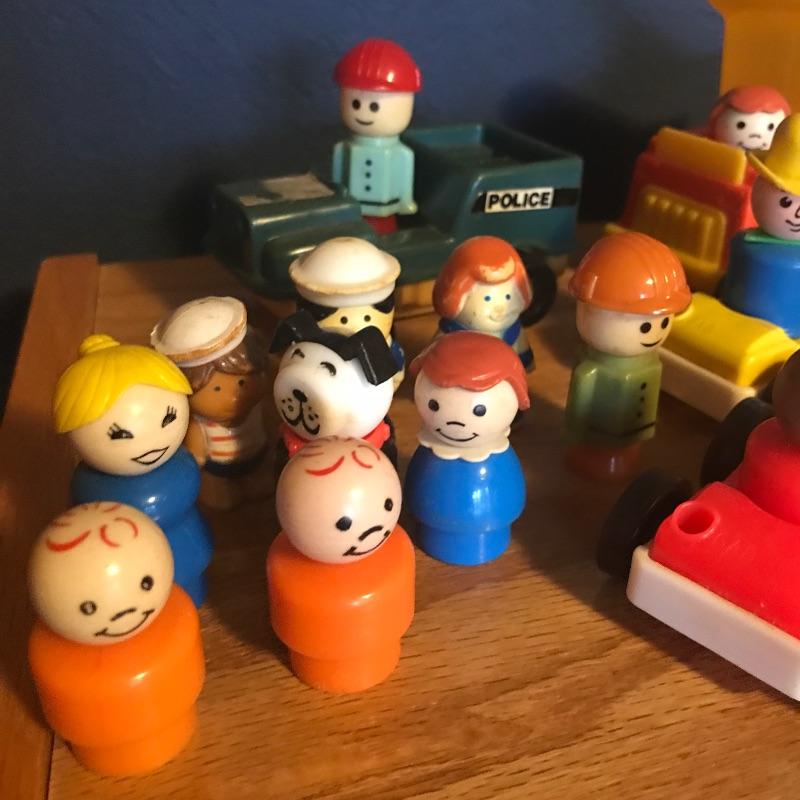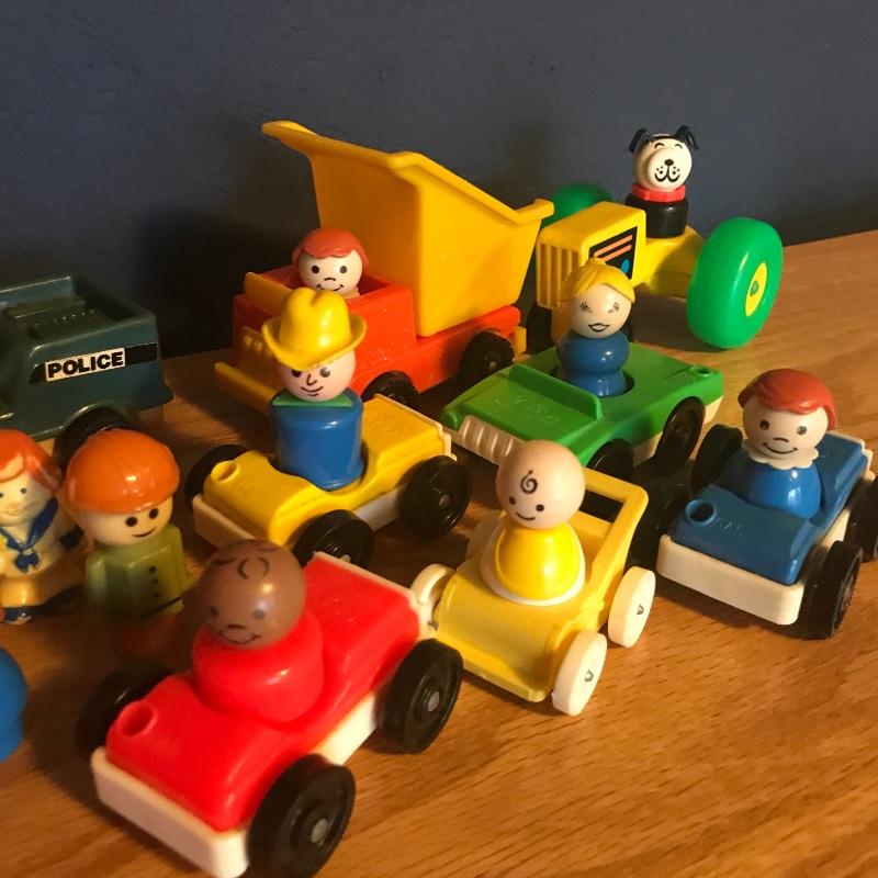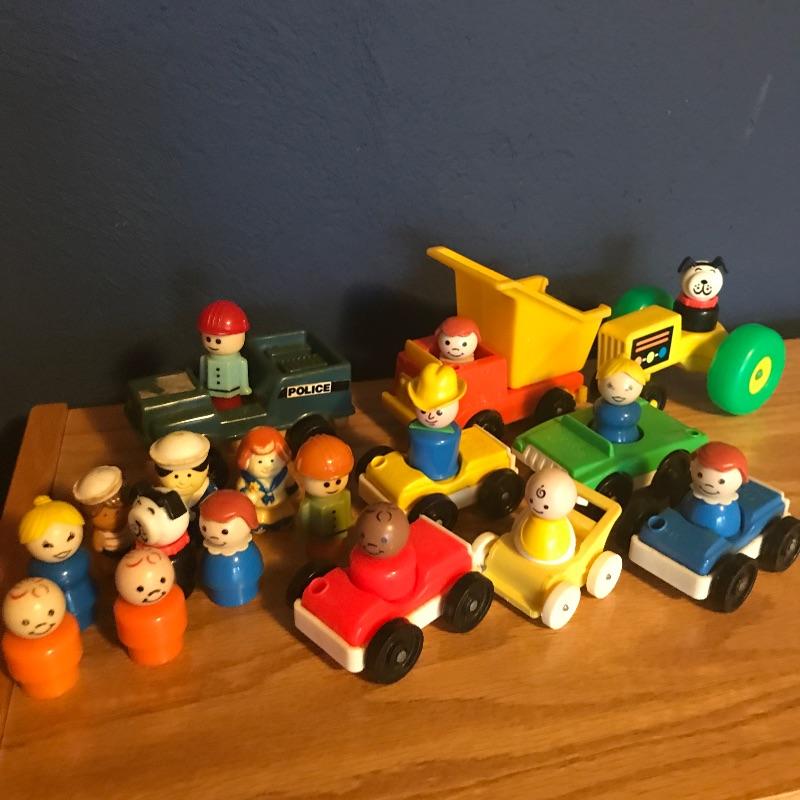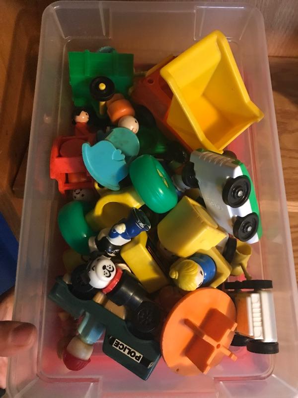 Large assortment of mostly Fisher Price toys in fair shape. Houses, furniture, cars and people. You and your kids will have fun with the interchangeable people in the cars and houses! Shipping available.