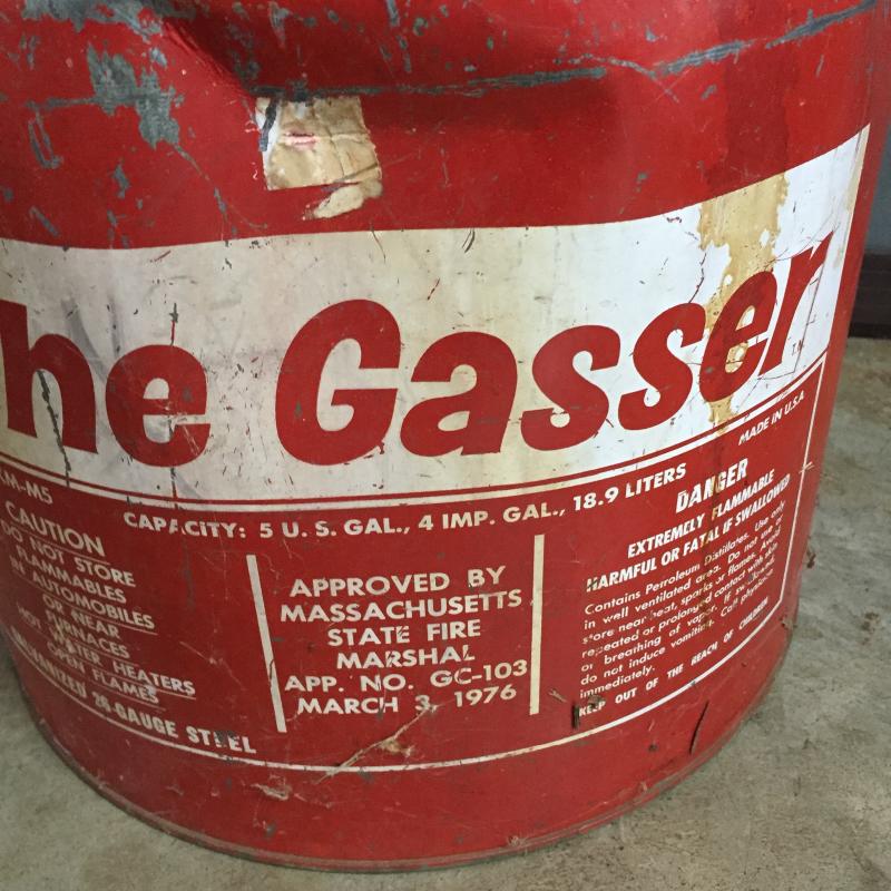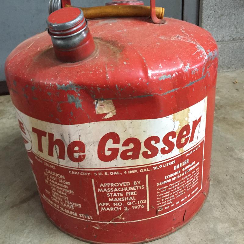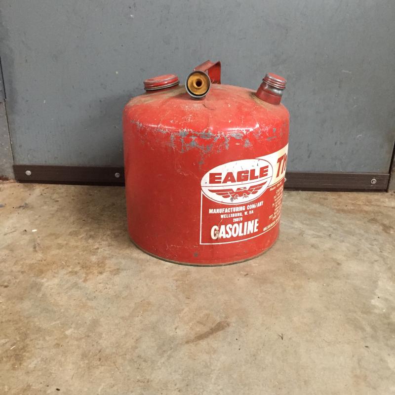 Five gallon Eagle brand metal gas can. The Gasse has one noticeable dent-See photos. No shipping.