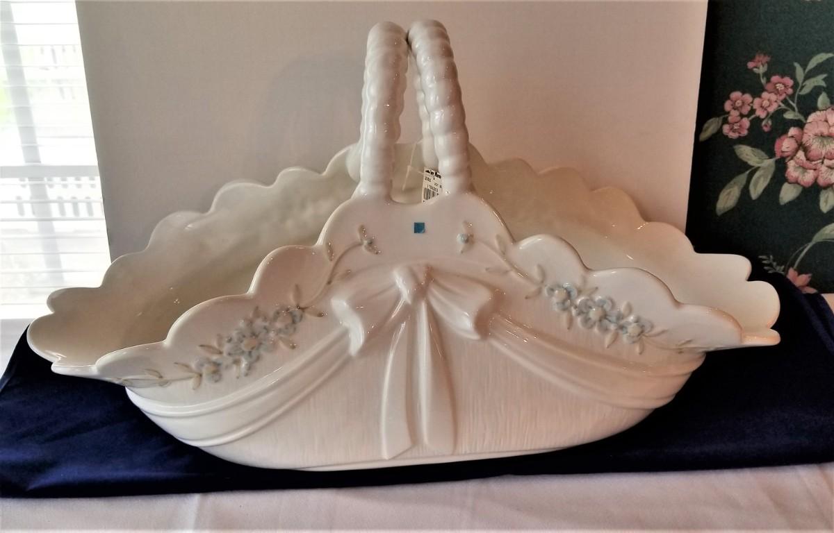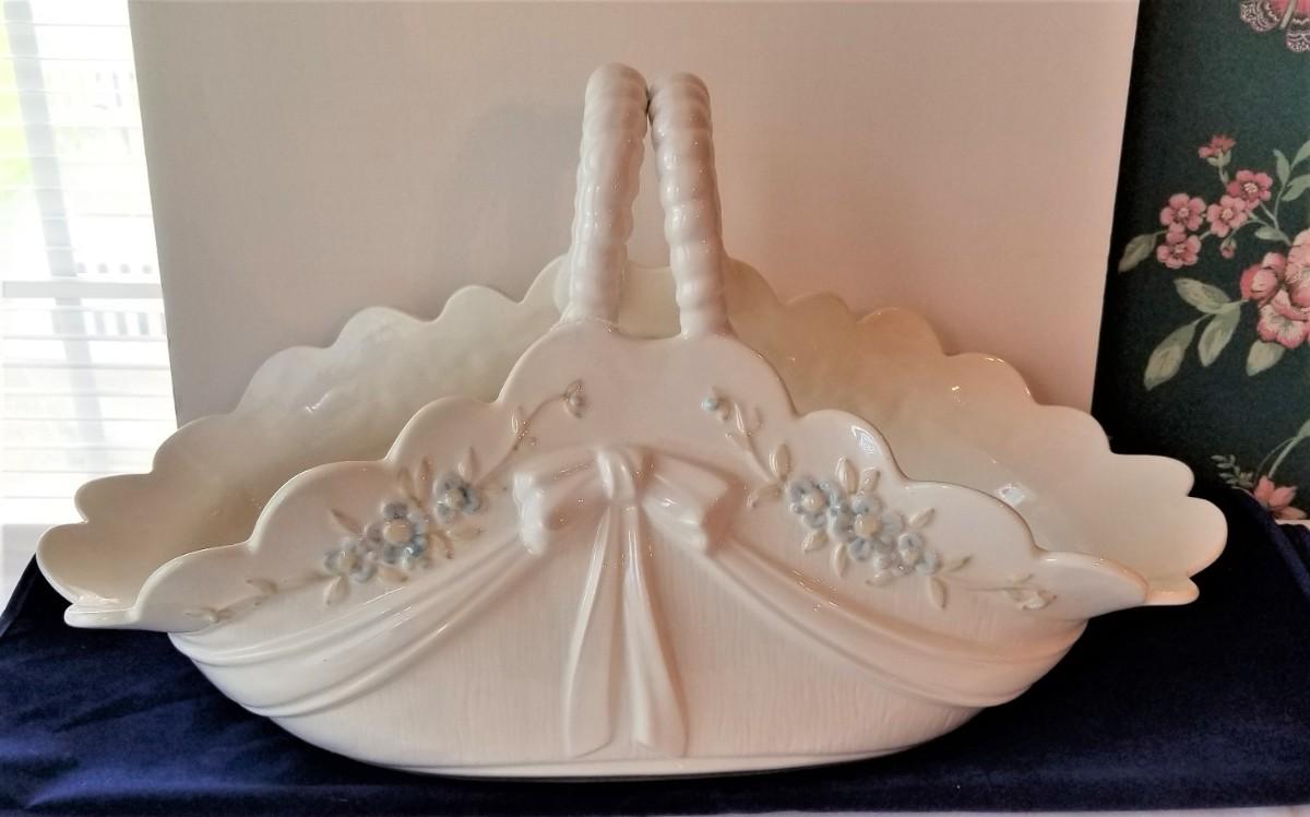 This large ceramic basket is very well executed and marked "Hispania" - still has tag - never used. 21" across, 12" tall. Much prettier than you can tell in the photo.