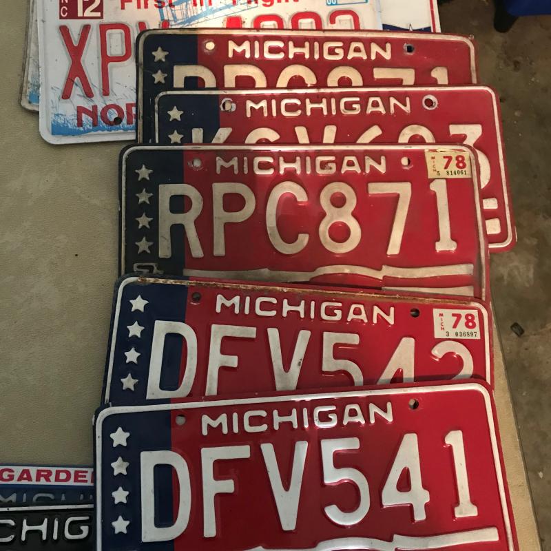 Are you from Michigan or do you collect license plates? This lot includes some retro and newer Michigan plates as well as North Carolina and Oregon. Shipping or local pick up.