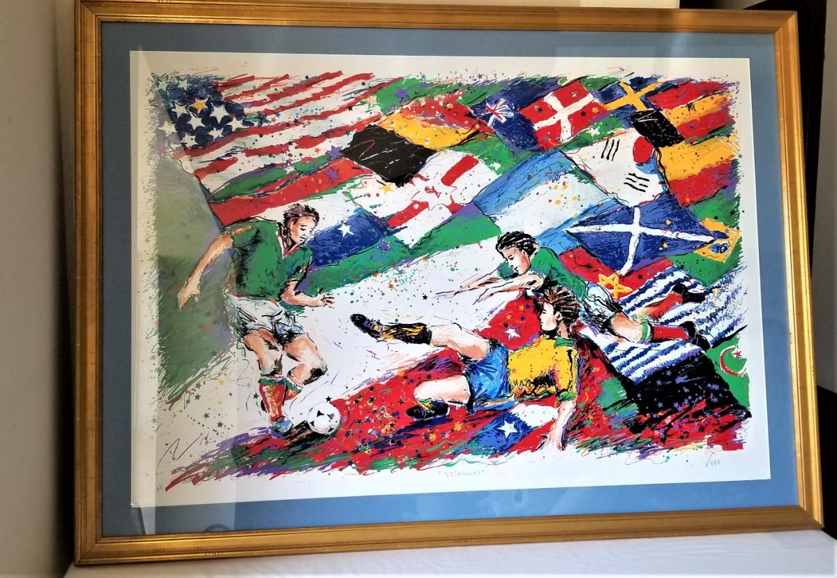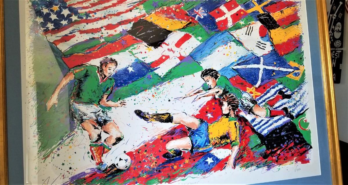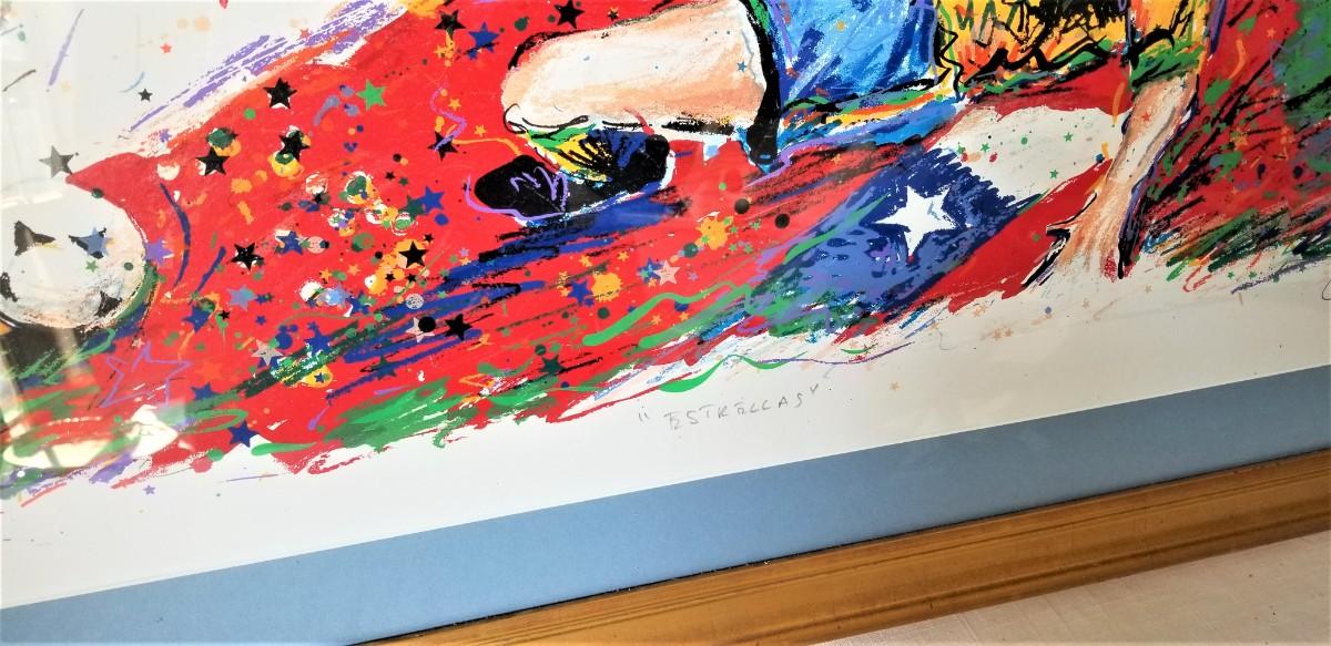 Another soccer-themed lithograph from Hungarian-American soccer star and artist Juli Veee - this one entitled "Stars" - that's the English translation, anyway. Nicely framed - 47.5" across and 34.75" tall. Artist's proof, pencil signed.
