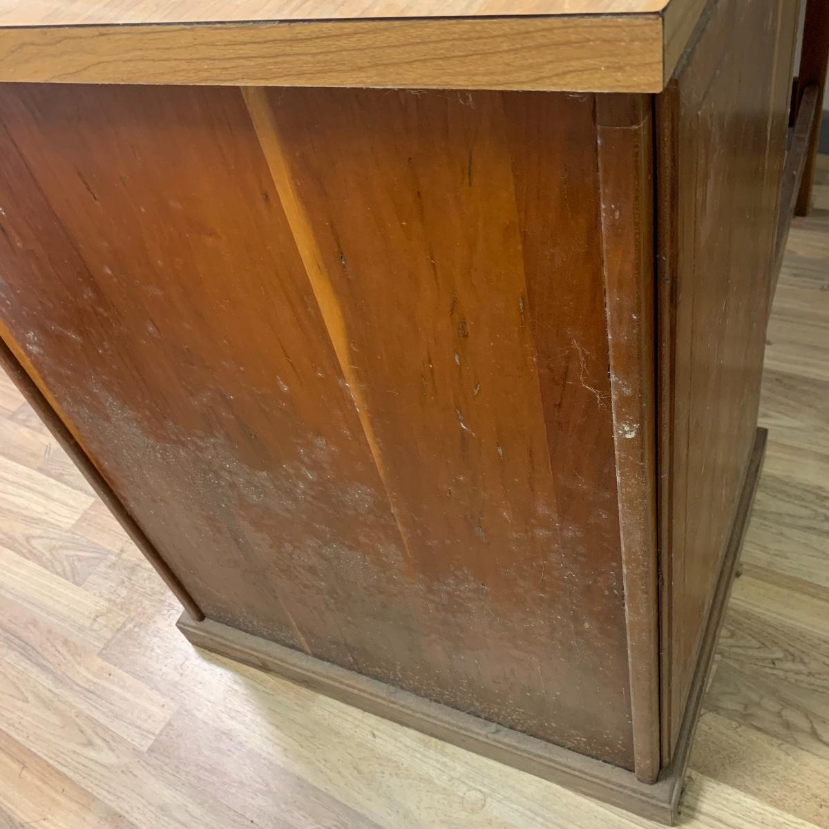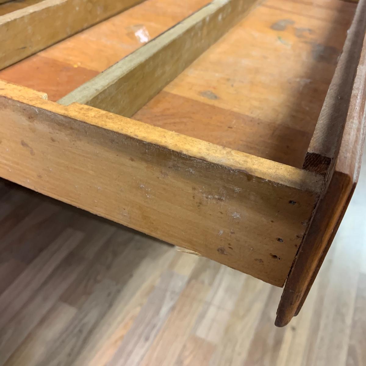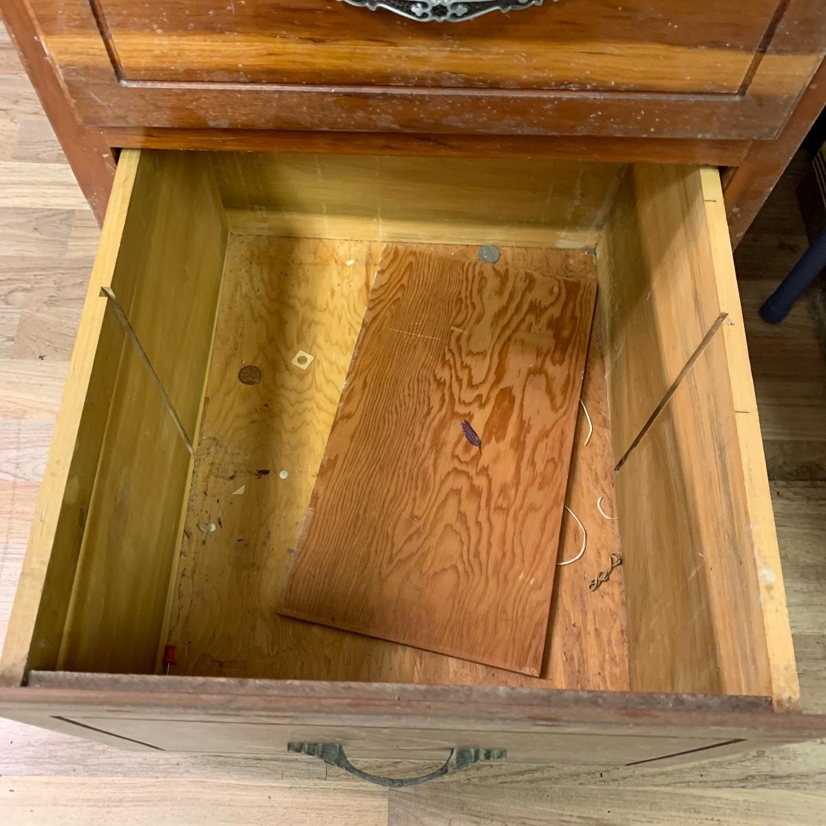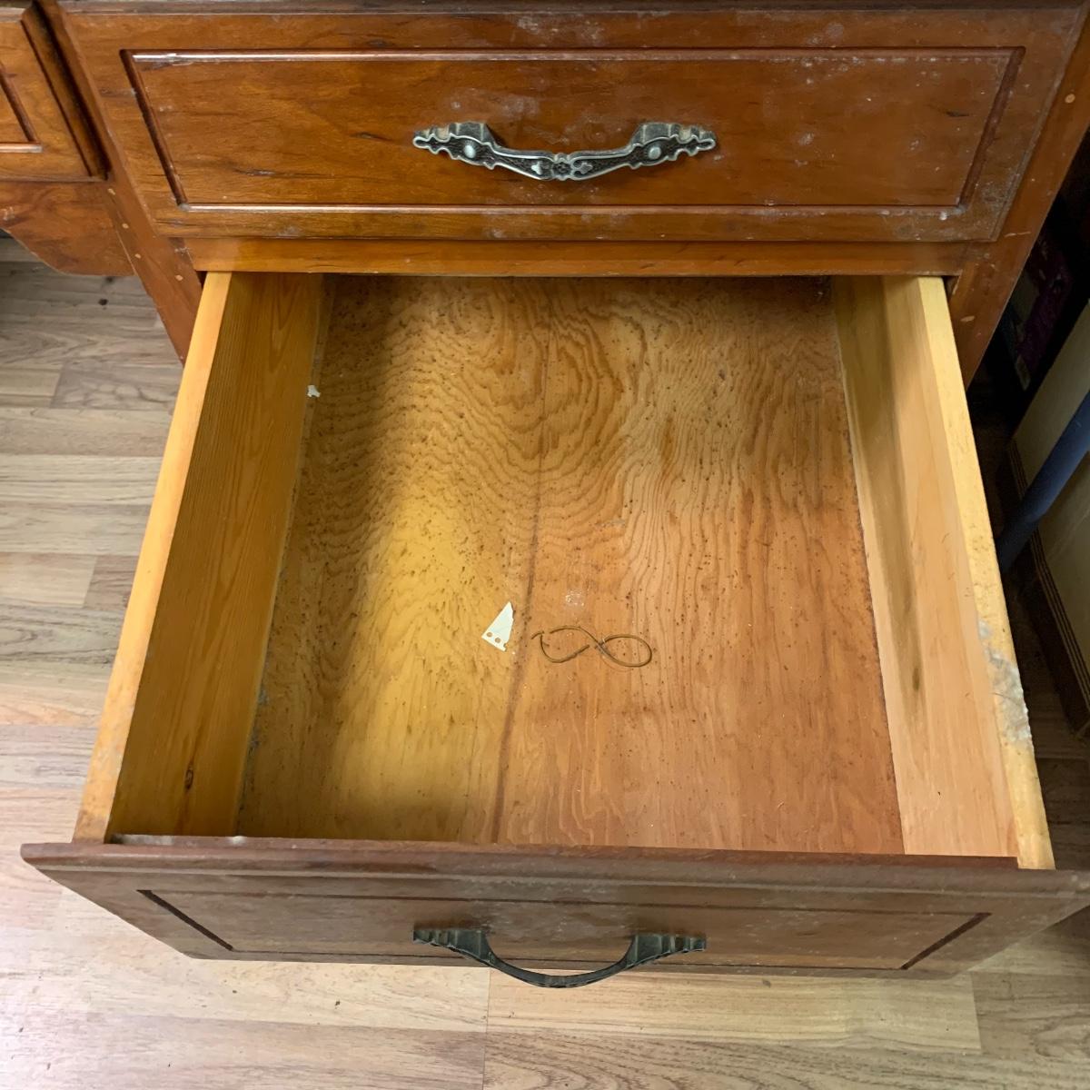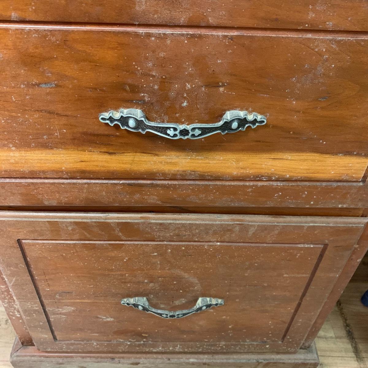This is a nice small wooden desk with four drawers. It has accumulated some dust and would benefit from a good cleaning. Desk measures 42.5”x24”x31”. It appears an added top may give a little larger smooth surface. See photos for details. Local pickup only.
