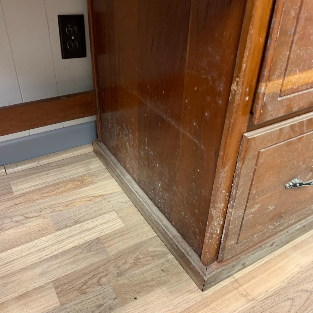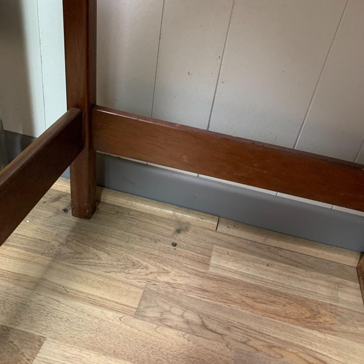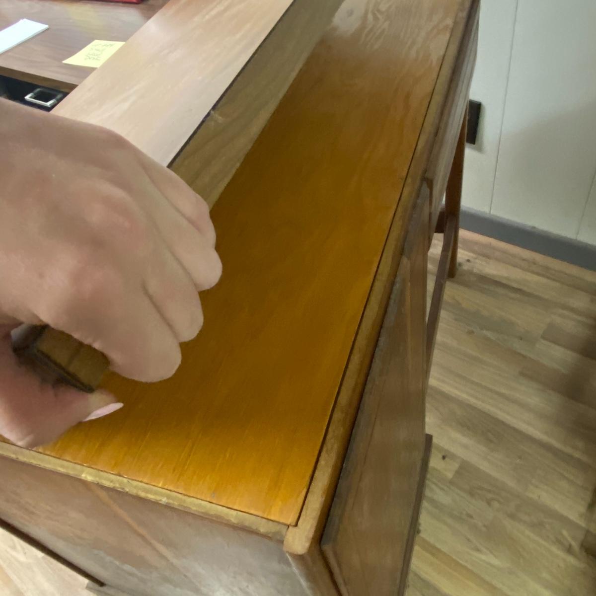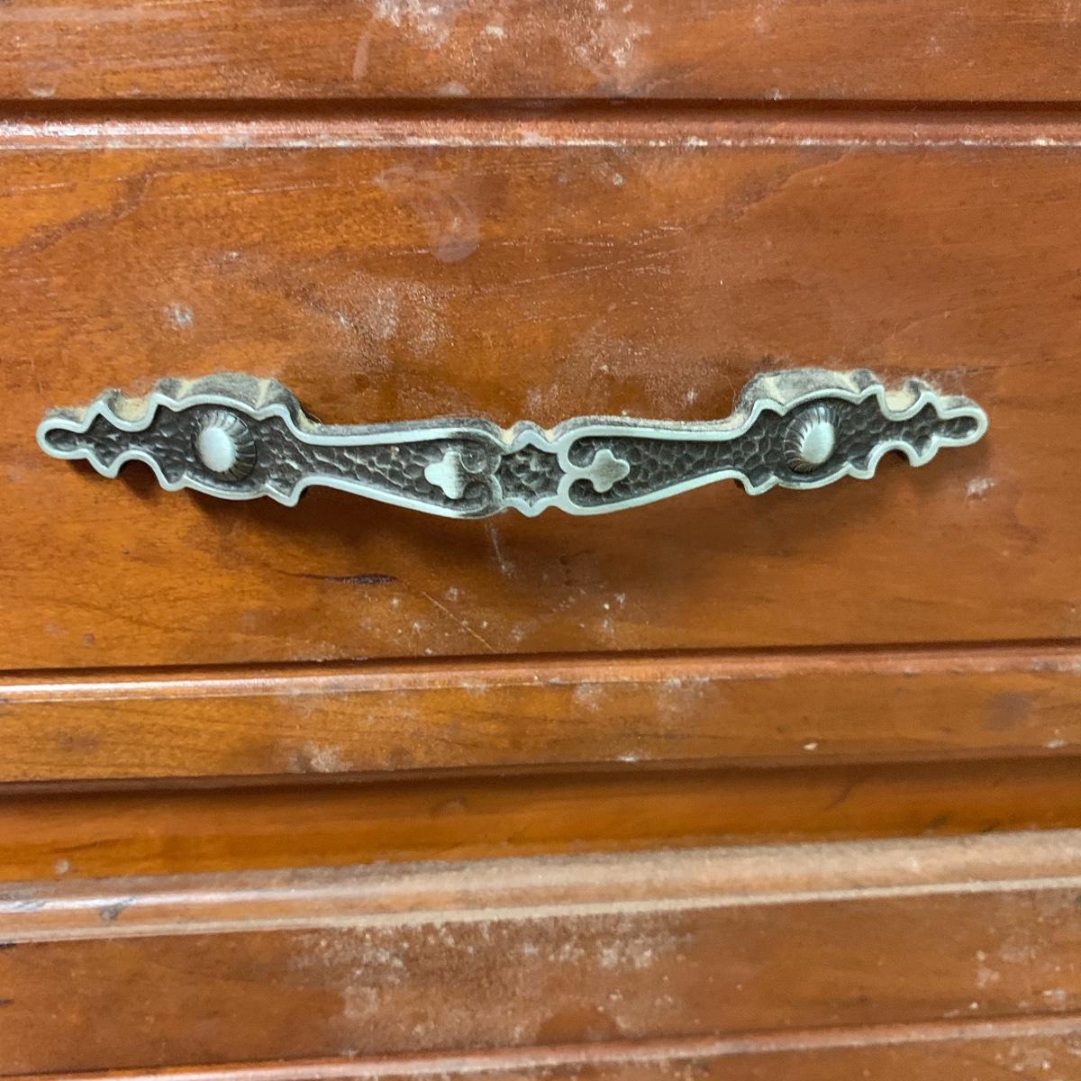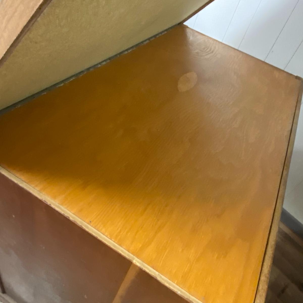 This is a nice small wooden desk with four drawers. It has accumulated some dust and would benefit from a good cleaning. Desk measures 42.5”x24”x31”. It appears an added top may give a little larger smooth surface. See photos for details. Local pickup only.