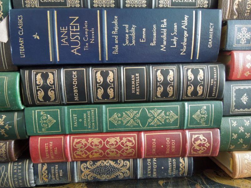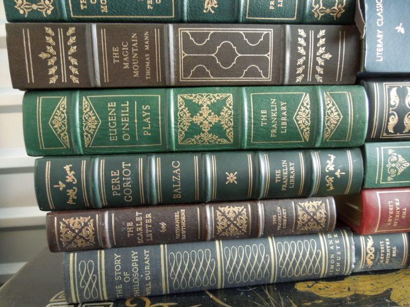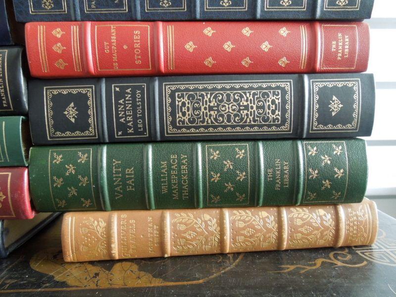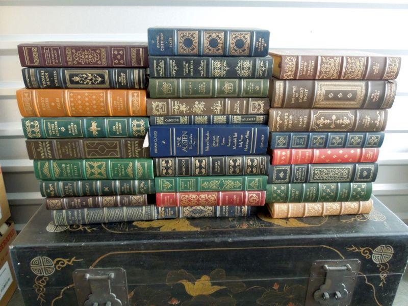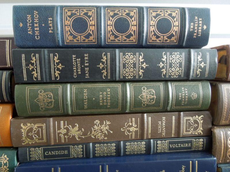 26 beautifully bound books with gold embossed lettering and gold edges. Issued by The Franklin Mint in the 1980's. Also a copy of The Complete Novels of Jane Austin by Literary Classics. 27 total books. Condition is very good to good.