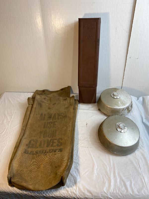 Lot 224 Vintage Cup Dispenser Canvas Glove Bag Tote Welder Alarm Wind up