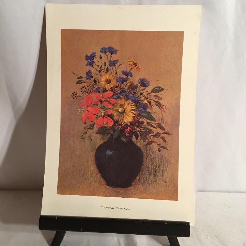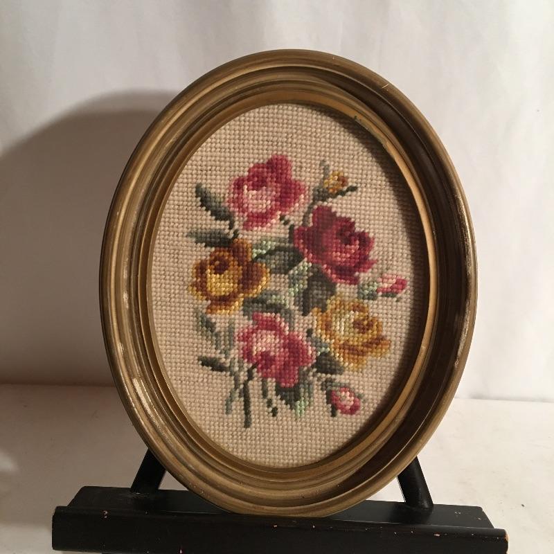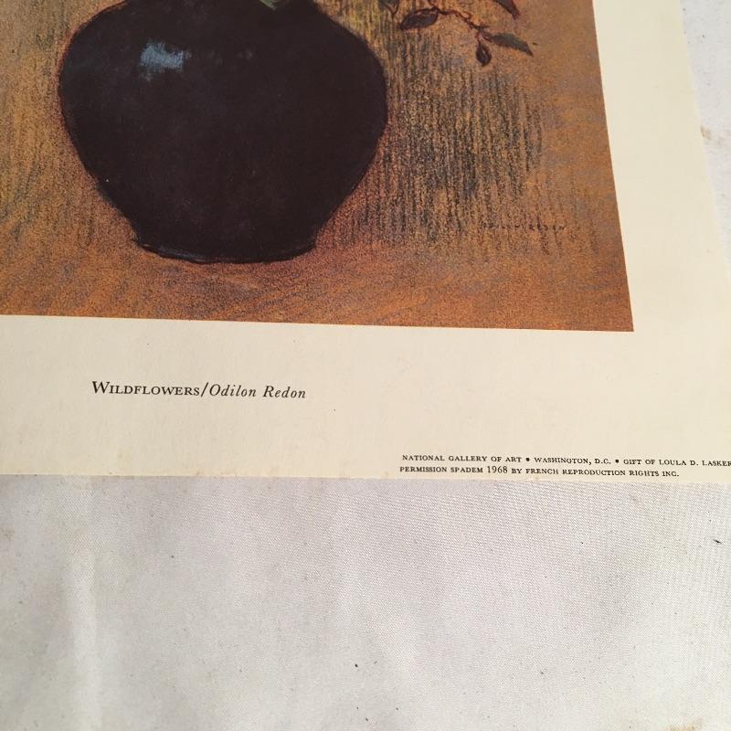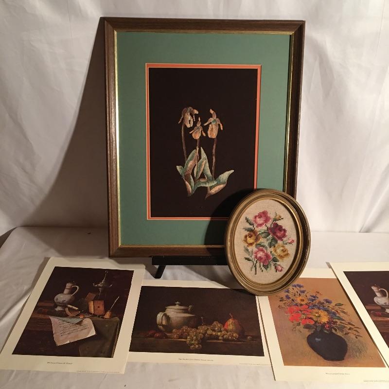 Bring some color into you home with this array of stunning floral art that includes an oval framed tapestry mounted in a gold colored frame, an embroidery that is matted and framed in a wood frame and four unframed classic prints. See images for the artists that are shown on the four prints, two of which are the same.