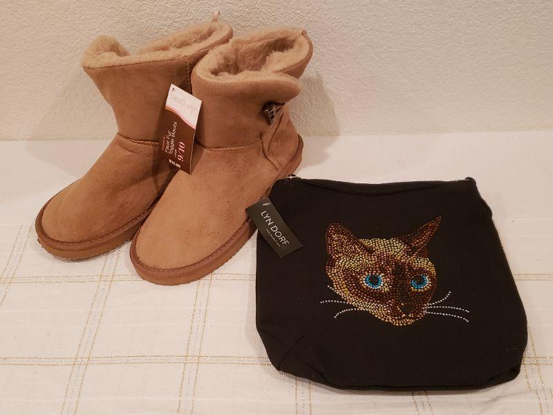 Lot 225: NEW Boots and Siamese Rhinestone Purse