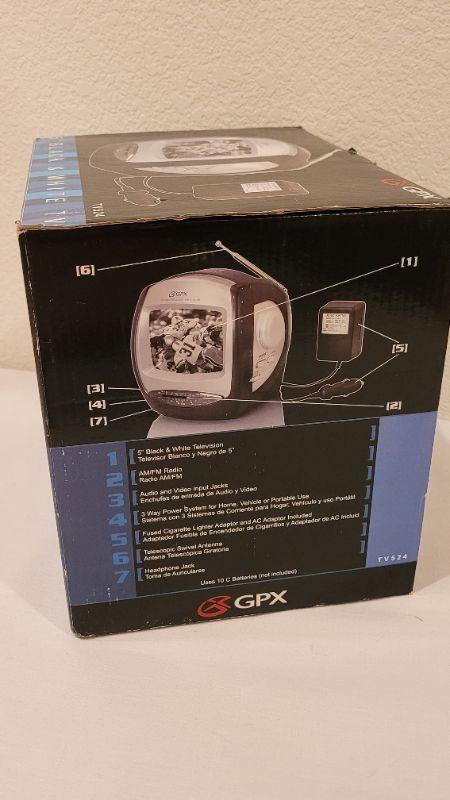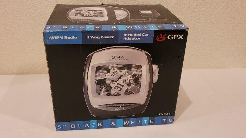 Lot 225: New GPX Black and White Television w/ Car Adapter