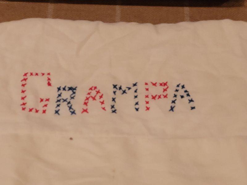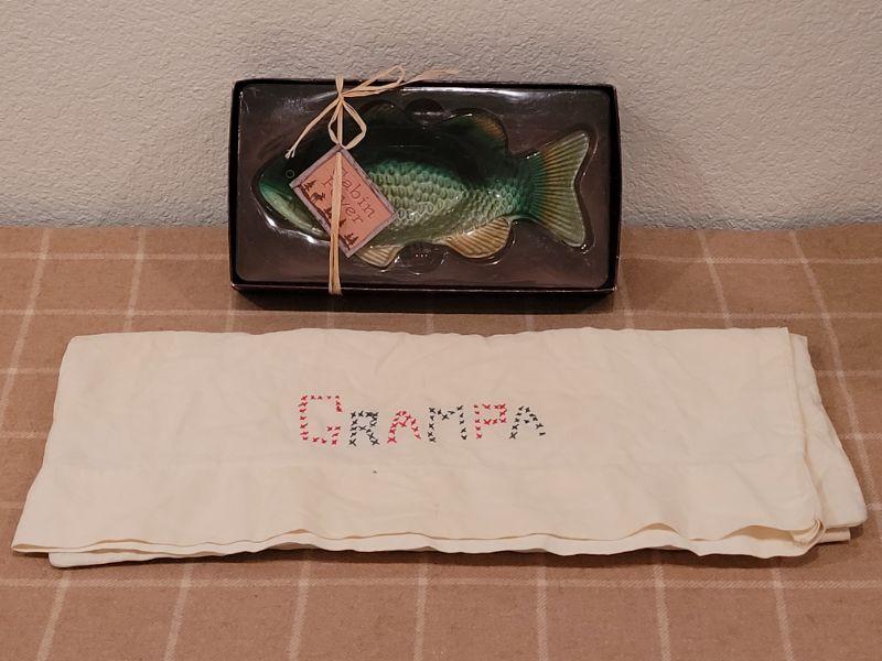 Lot 225: New Fish Spoon Rest and Vintage Needlepoint "Grampa" Pillowcase