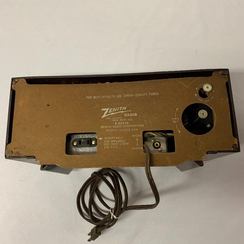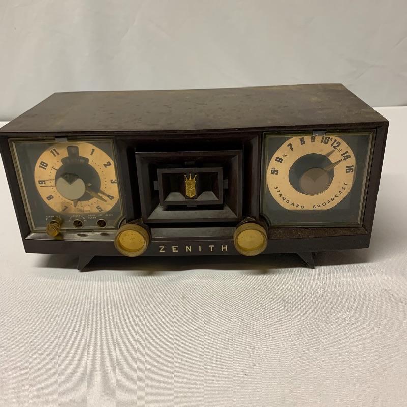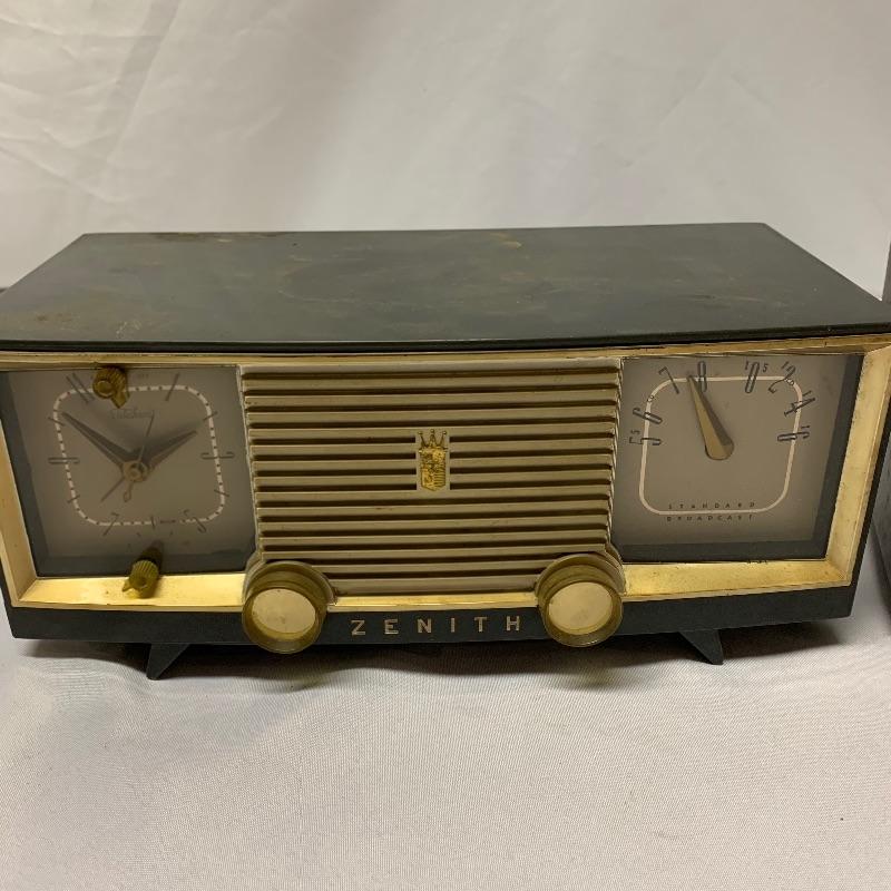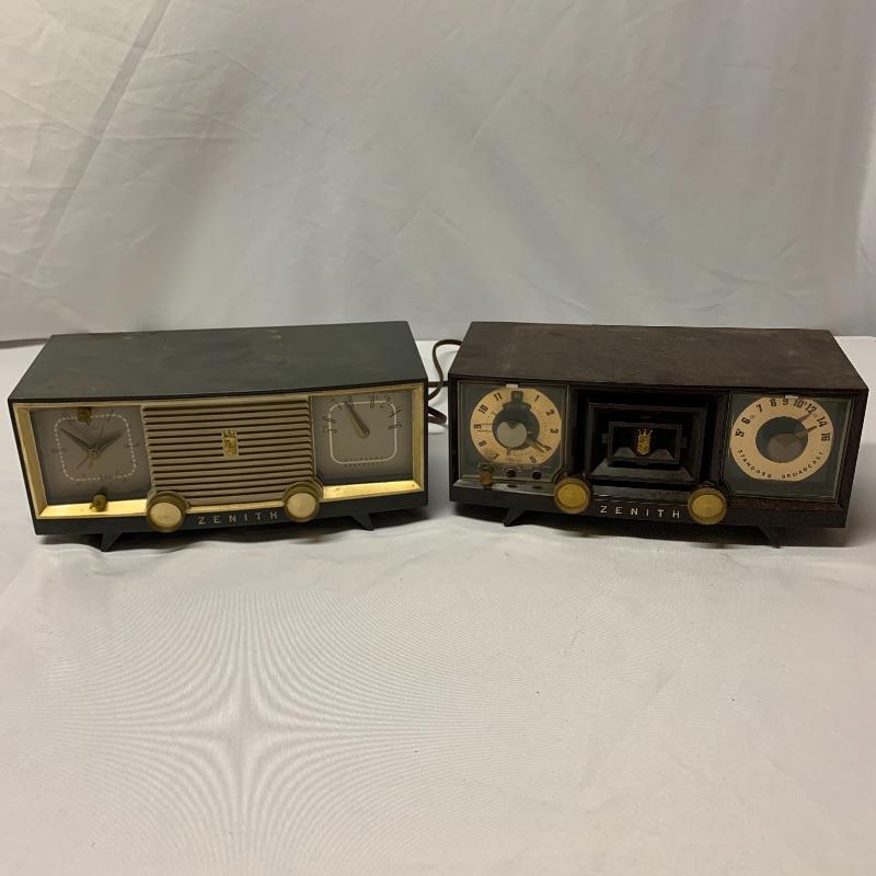 Two Zenith Clock radios, the unit on the right is a model T522R and the other model number is unknown. Neither of the clocks powered on when tested.