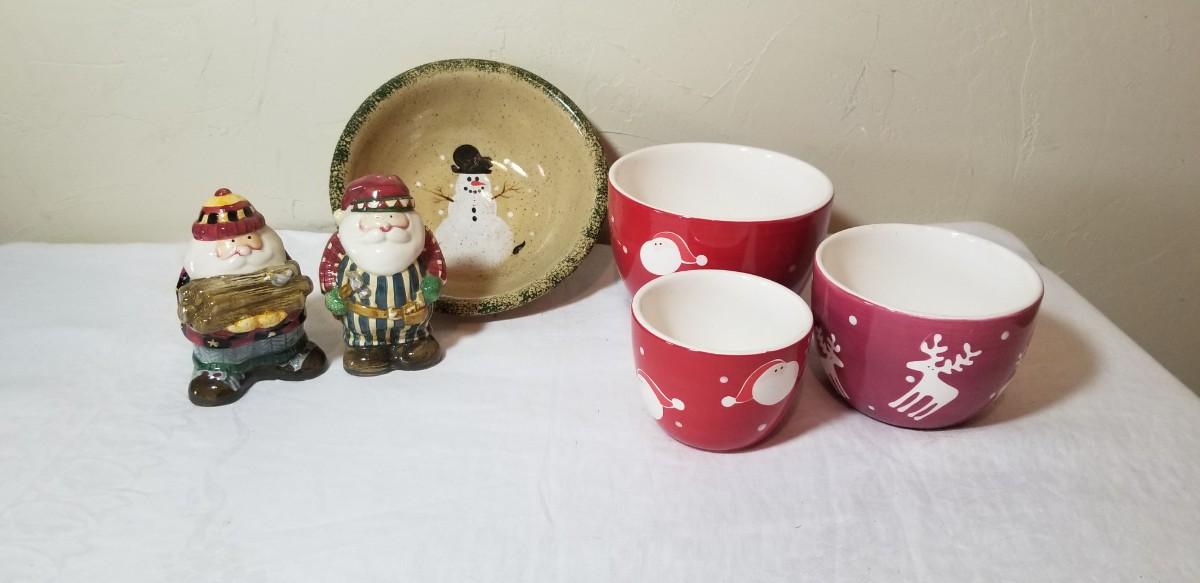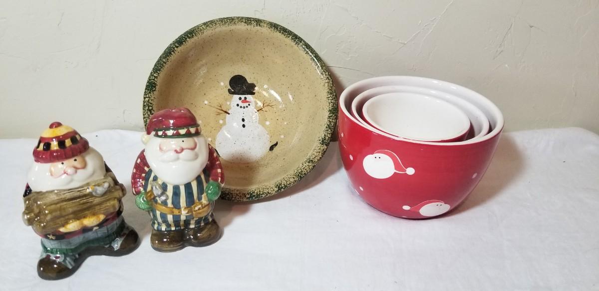Lot 225: Christmas Dishes & Salt & Pepper Shakers Lot